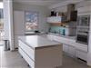 Der großzügige Wohnraum des Ferienhauses bietet neben einem bequemen Sofa einen großen Essbereich mit einer luxuriösen Wohnküche mit Kochinsel und Küchentresen sowie Backofen mit großem Induktionsfeld, Kühl-Gefrierkombination, Mikrowelle, Spülmaschine, Toaster, Kaffeemaschine, Mixer, Wasserkocher. Ausreichend Geschirr ist ebenfalls vorhanden.