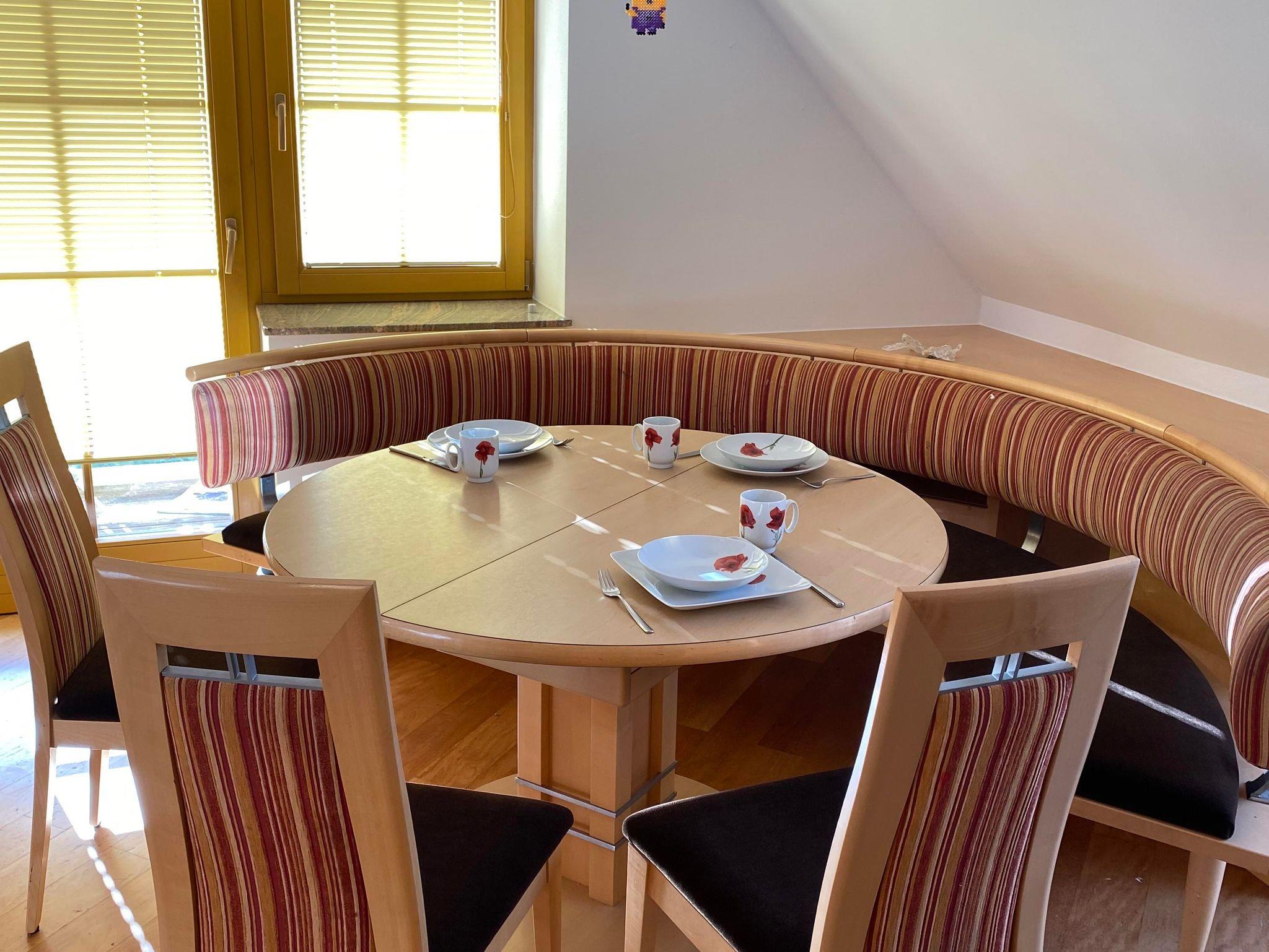 Die Ferienwohnung befindet sich im 1. und 2. Stockwerk unseres Hauses, ist komplett saniert und mit Boden- Wandheizung und Kachelofen ausgestattet.