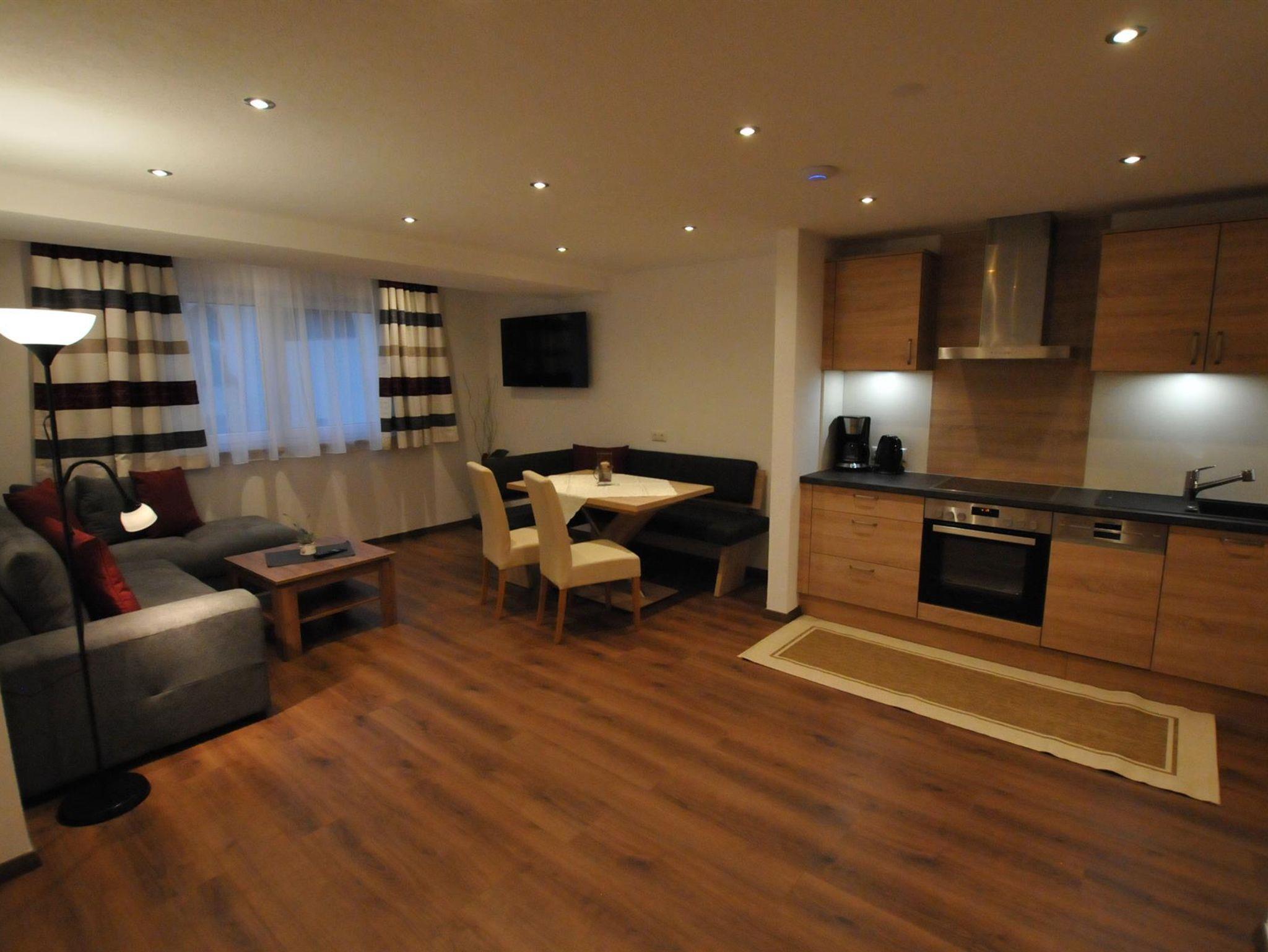 Das Appartement besteht aus 2 getrennten Schafzimmern mit Boxspringbetten, Dusche / WC, Küche mit Essbereich (Tisch mit Bank und Stühlen), Wohnbereich mit Couch und Flat-TV, kostenloses W-LAN und Balkon.