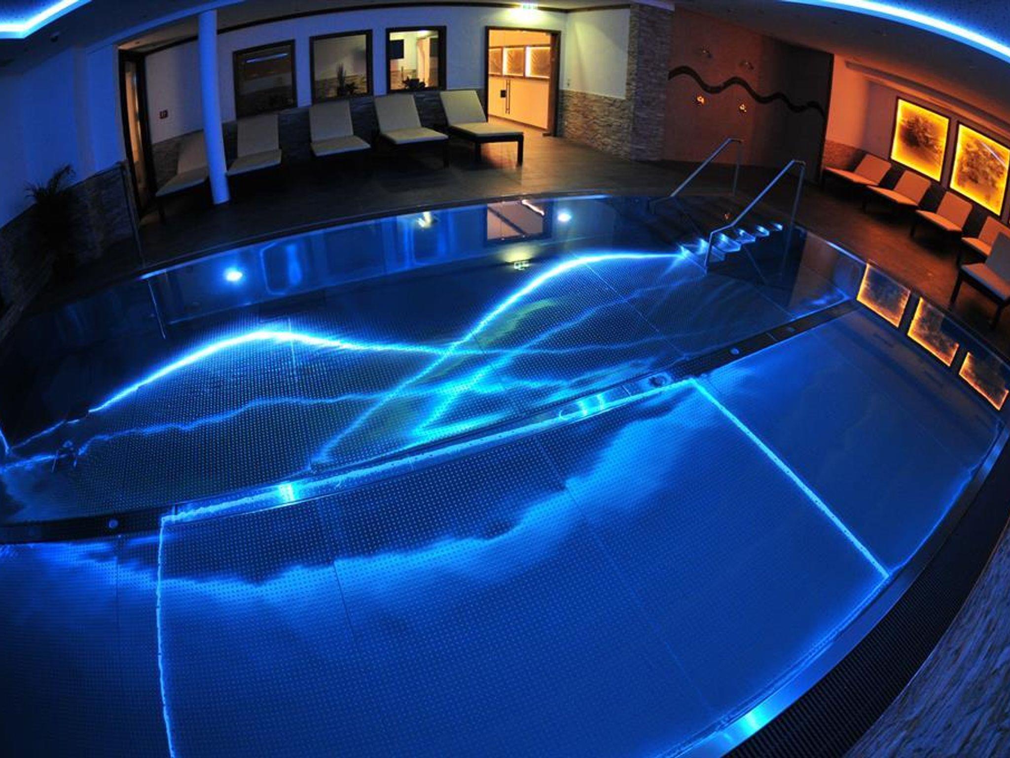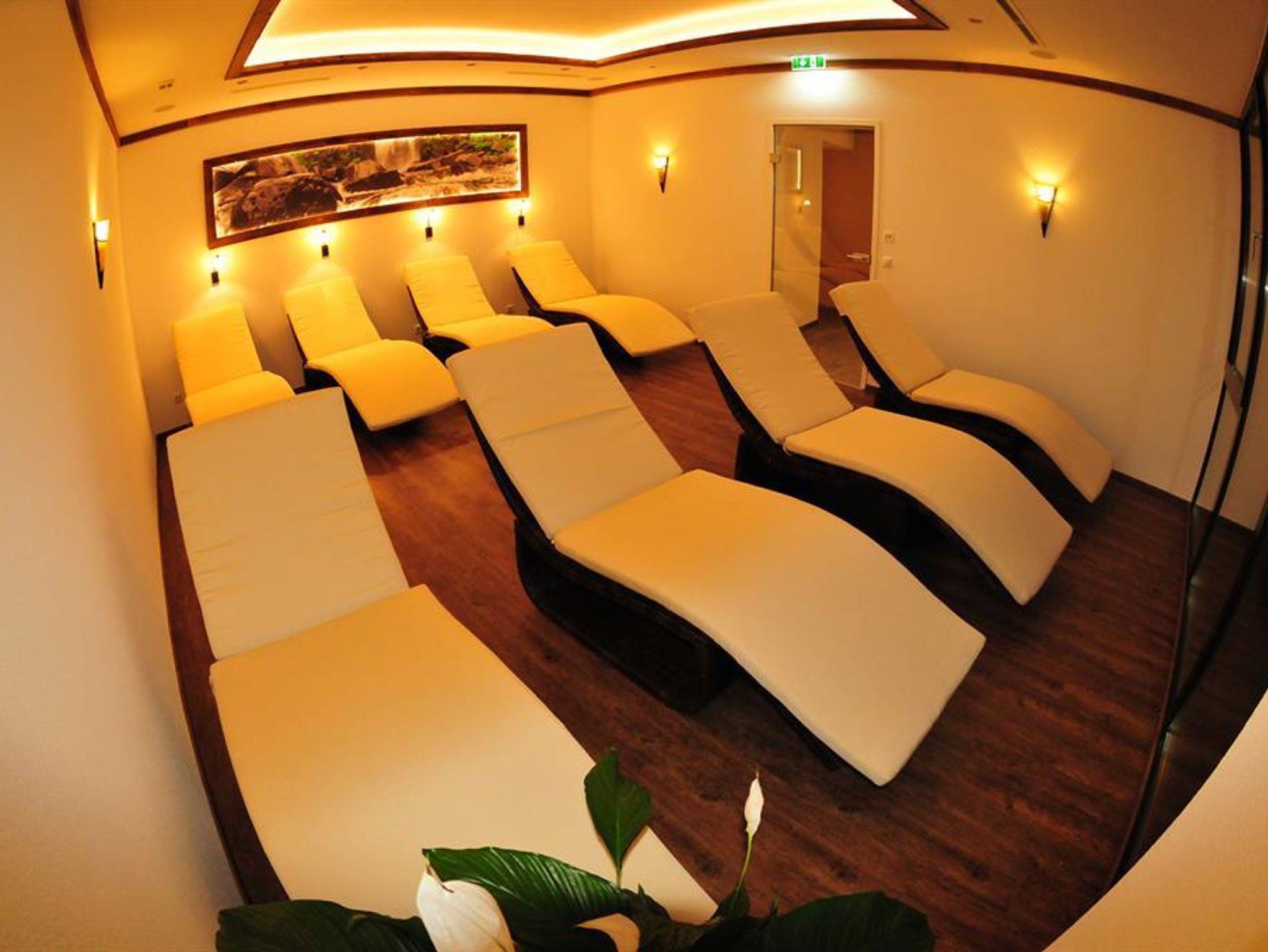 Genießen Sie unseren modernen Wellnessbereich: Hallenbad, Saunen, Infrarot-Stühle, Relax-Pool, Ruheraum und einer Lounge