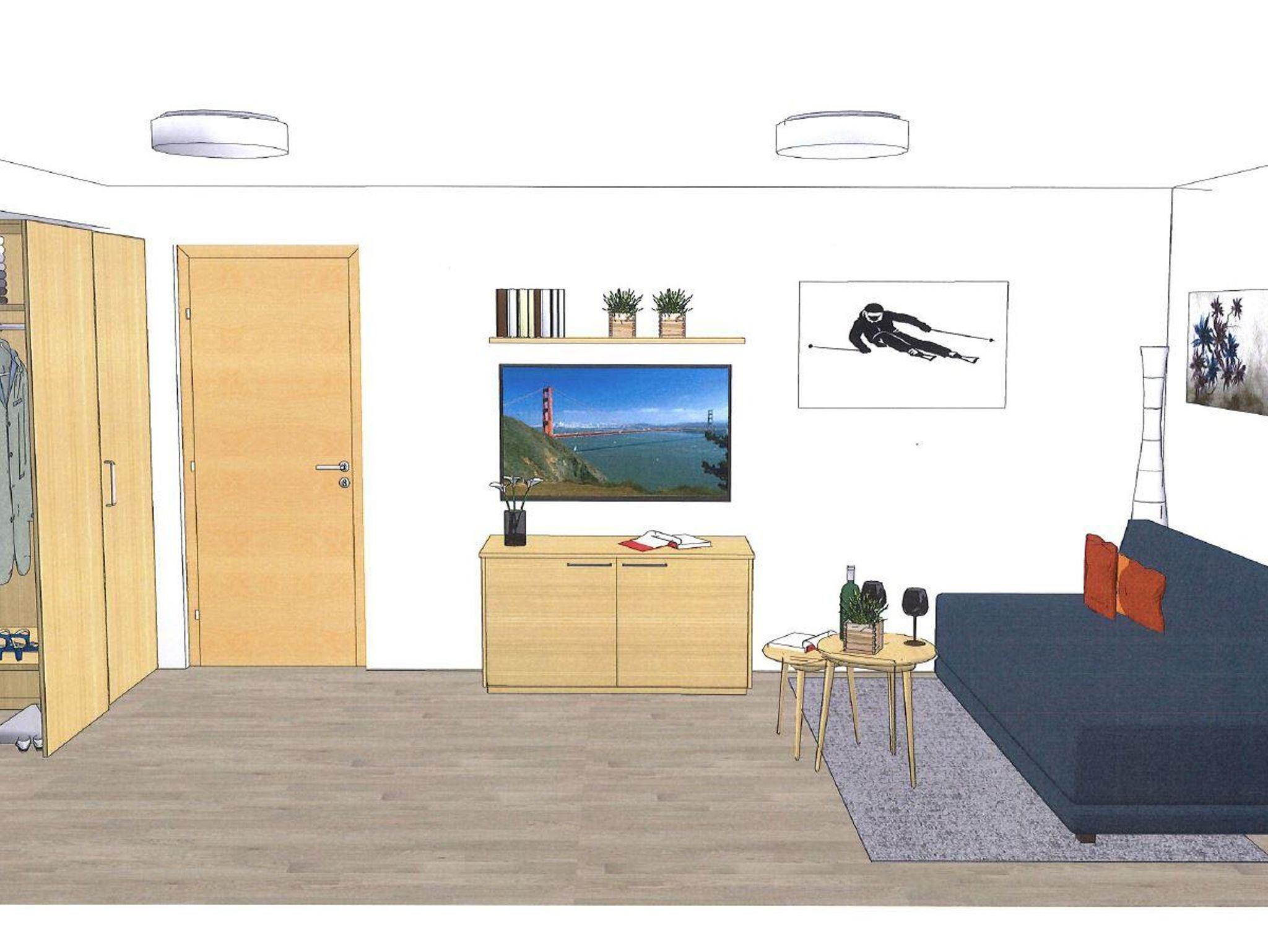 Ferienwohnung im Untergeschoss mit allen Annehmlichkeiten sowie modernsten Design ausgestattet. Neben einer Designercouch von Ligne Roset erwarten Sie ein modernes Design. Die Stille und der Ausblick erfüllen alle Urlaubsansprüche.