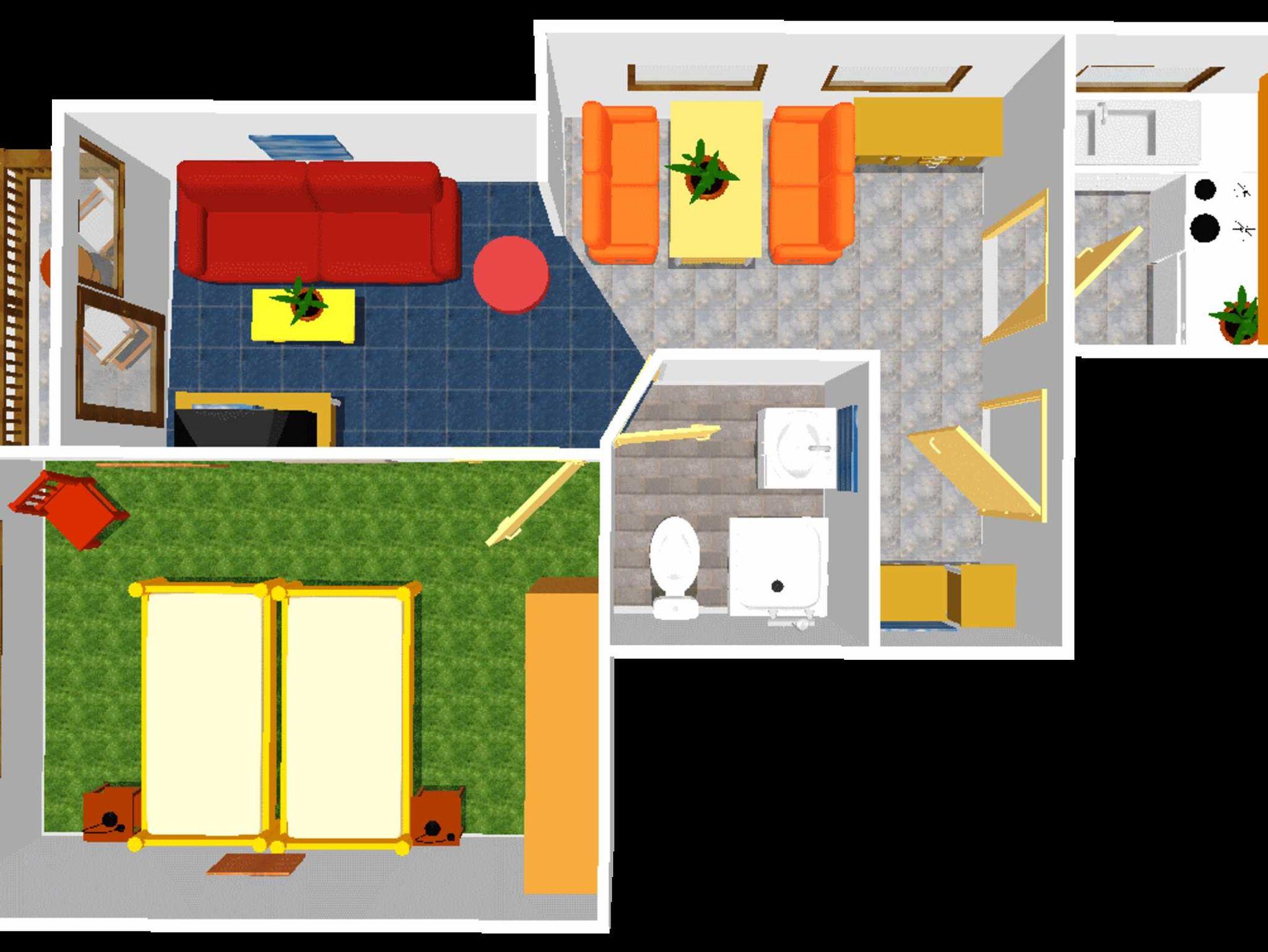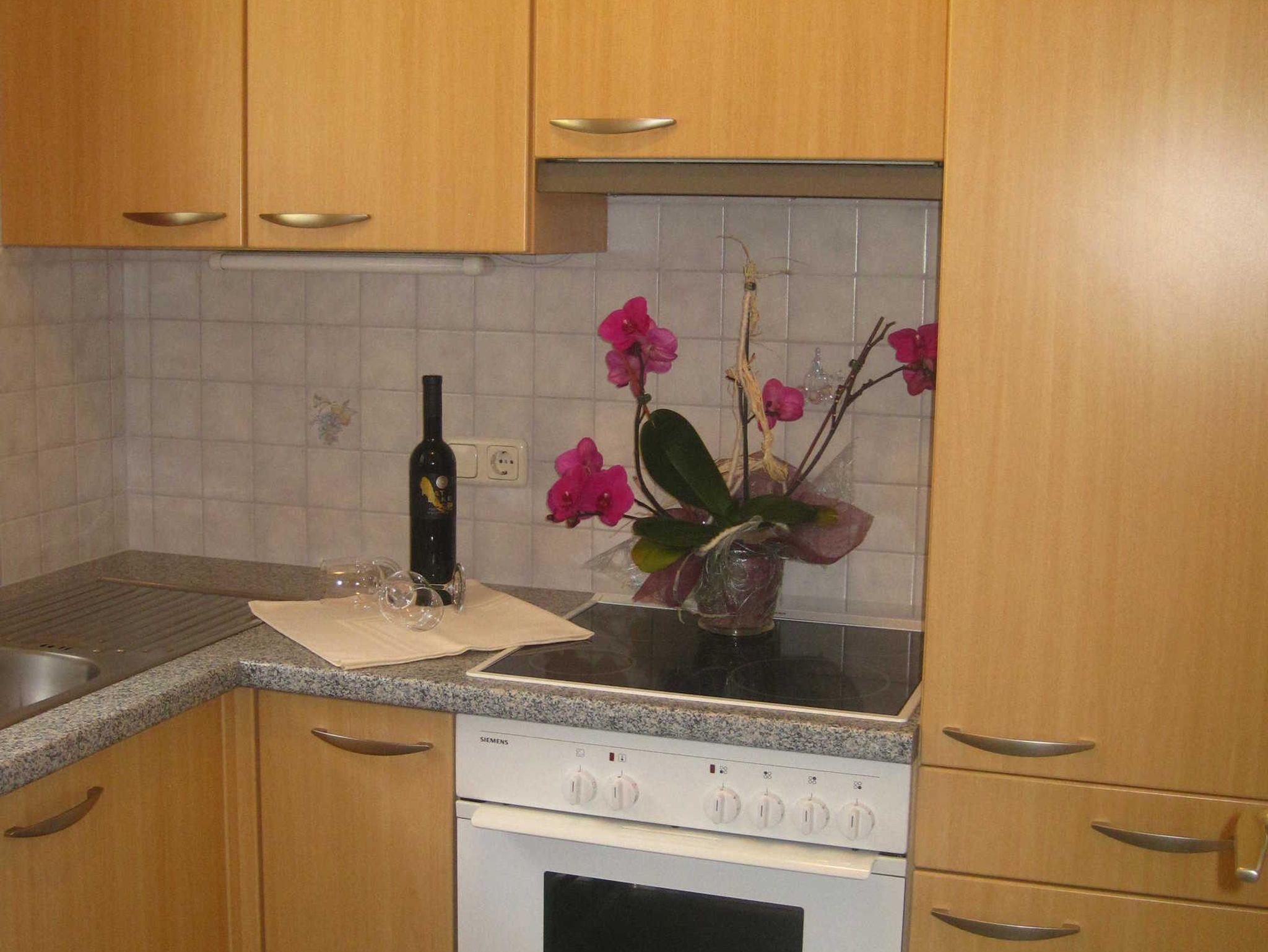 Das Appartement ist 38 qm groß, komfortabel, funktionell und gemütlich. Kleine, abgeschlossene Küche mit Ceran-Kochfeld, Backrohr, Geschirrspüler, Kühlschrank mit Gefrierfach, Kaffeemaschine, Wasserkocher, Geschirr.