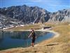 Separates Schlafzimmer mit Doppelbett in der Größe 180 mal 200 cm, Dusche/WC und Balkon zur Westseite mit Nachmittagssonne und herrlichem Ausblick auf die umliegende Bergwelt.