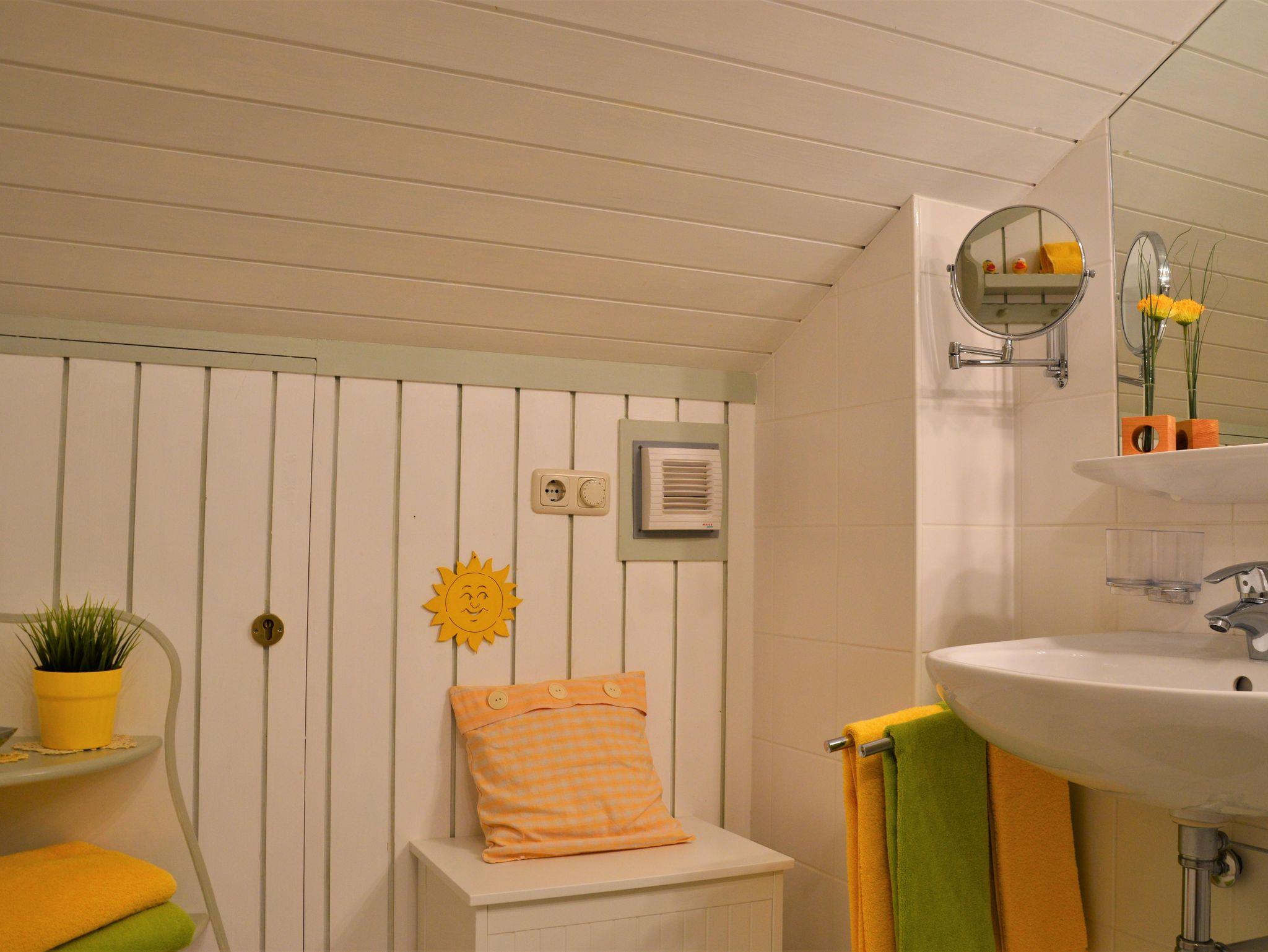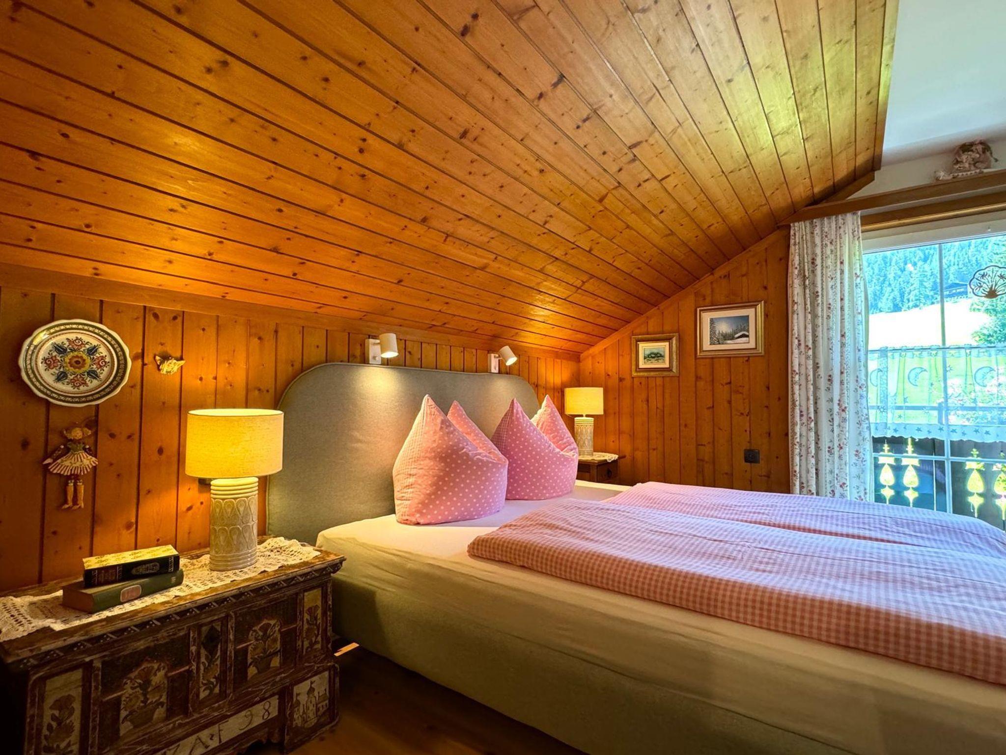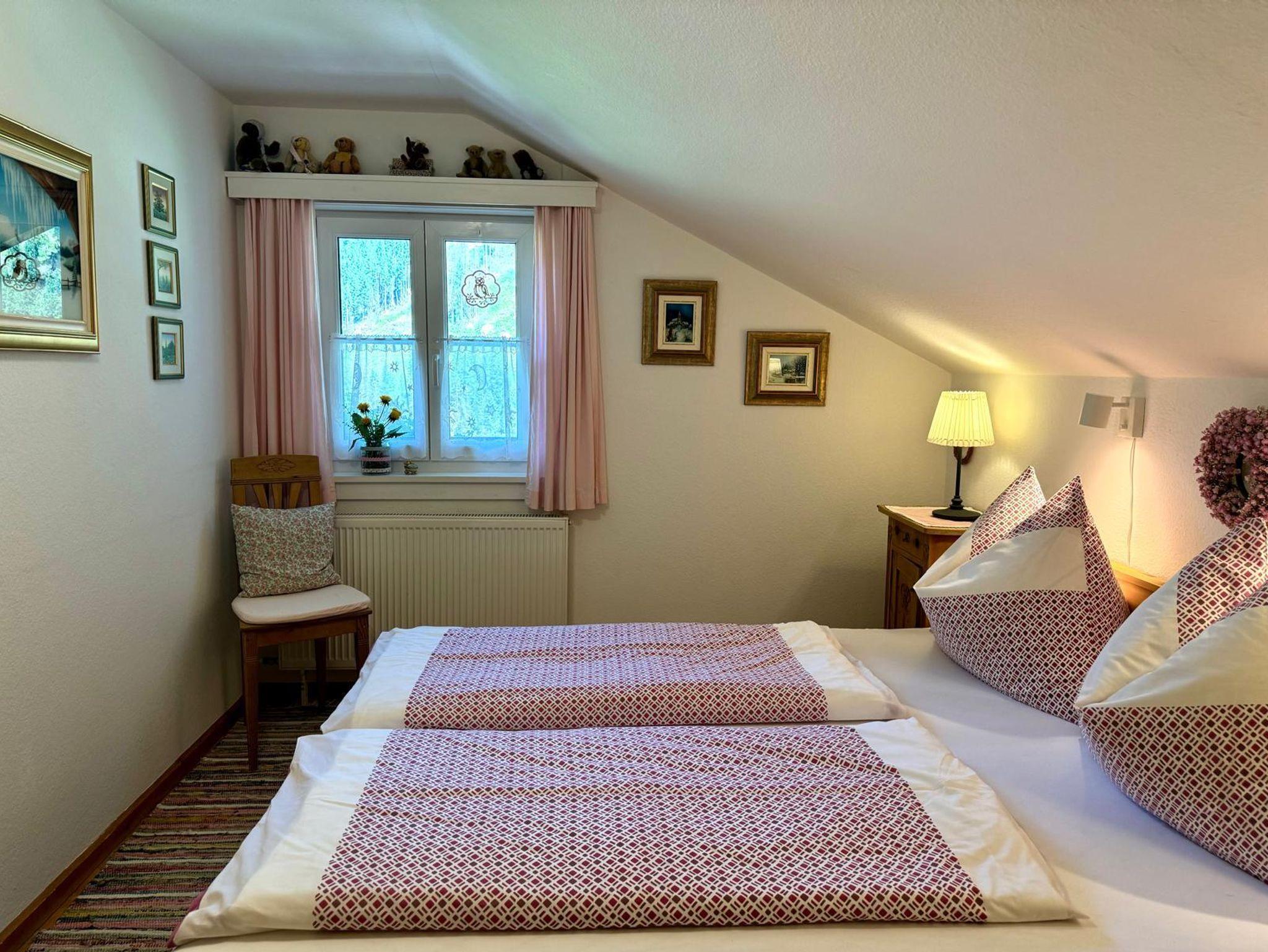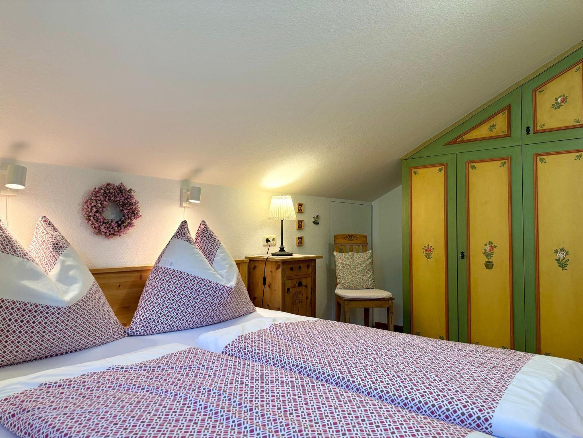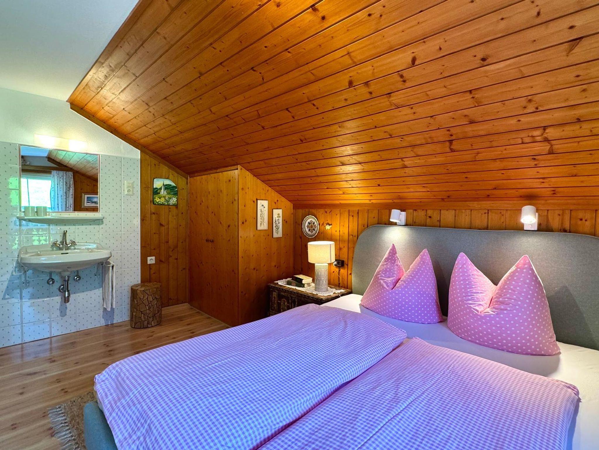 Unsere urgemütliche 58?m² große Dachgeschosswohnung Waldruh verfügt über eine Wohnküche aus Fichtenvollholz mit TV, zwei Doppelbettschlafzimmer, ein Badezimmer mit Dusche, ein separates WC sowie einen Balkon mit Nord- und Südausrichtung