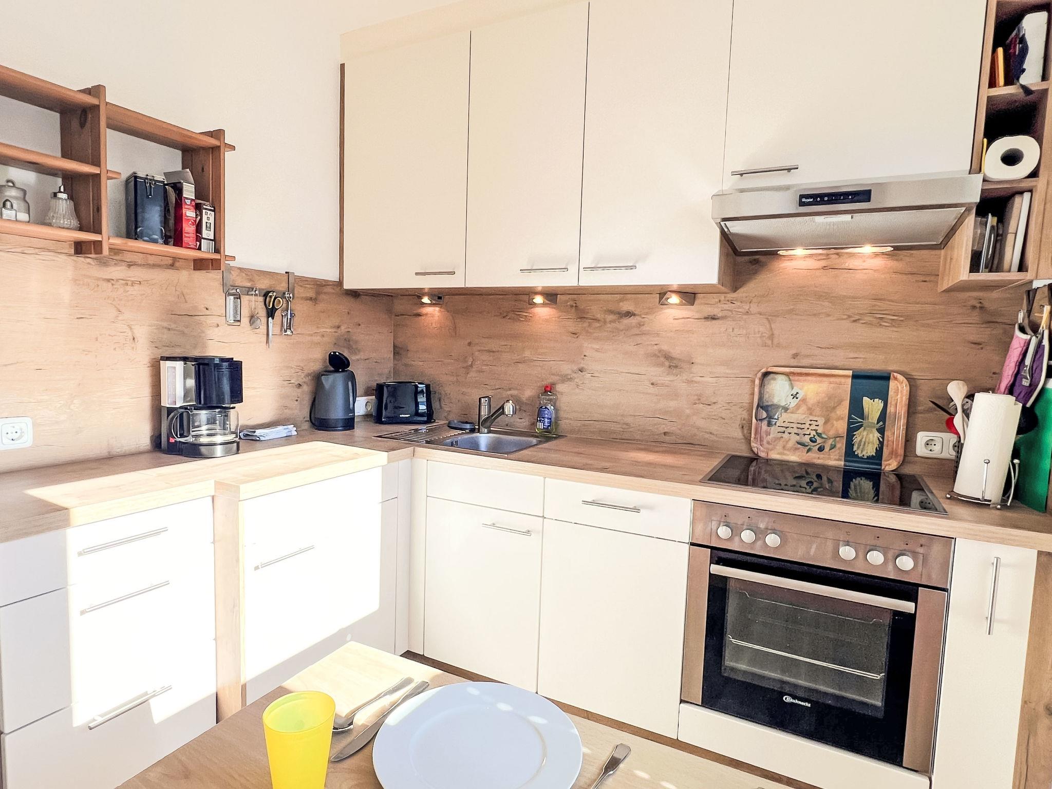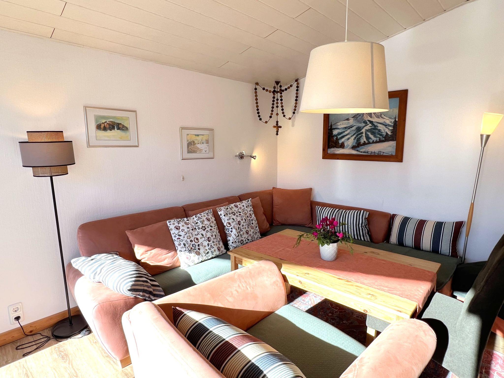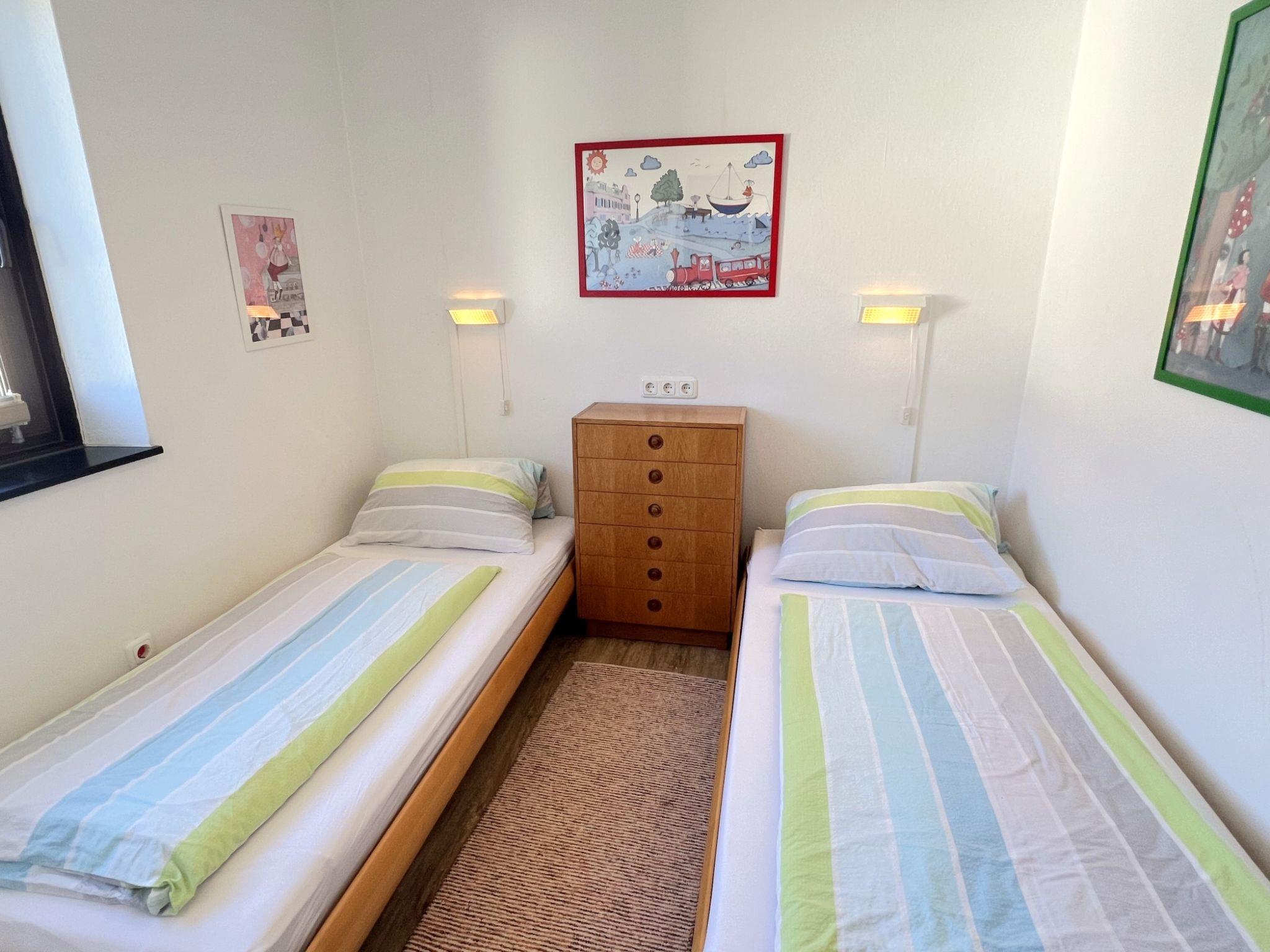 3-room apartment 70 m2 on 1st floor. Spacious and bright, cosy furnishings: 1 room with 1 double bed (2 x 90 cm, length 200 cm), 1 sleeping facility (90 cm, length 200 cm). 1 room with 2 beds (90 cm, length 200 cm). Living room with TV and flat screen. Kitchen (oven, 4 ceramic glass hob hotplates, toaster, kettle, electric coffee machine) with dining table. Shower, sep. WC. Balcony. Very beautiful panoramic view of the mountains. Facilities: Internet (WiFi, free). Parking (1 car). Please note: suitable for families. Non-smokers only. Smoke alarm.