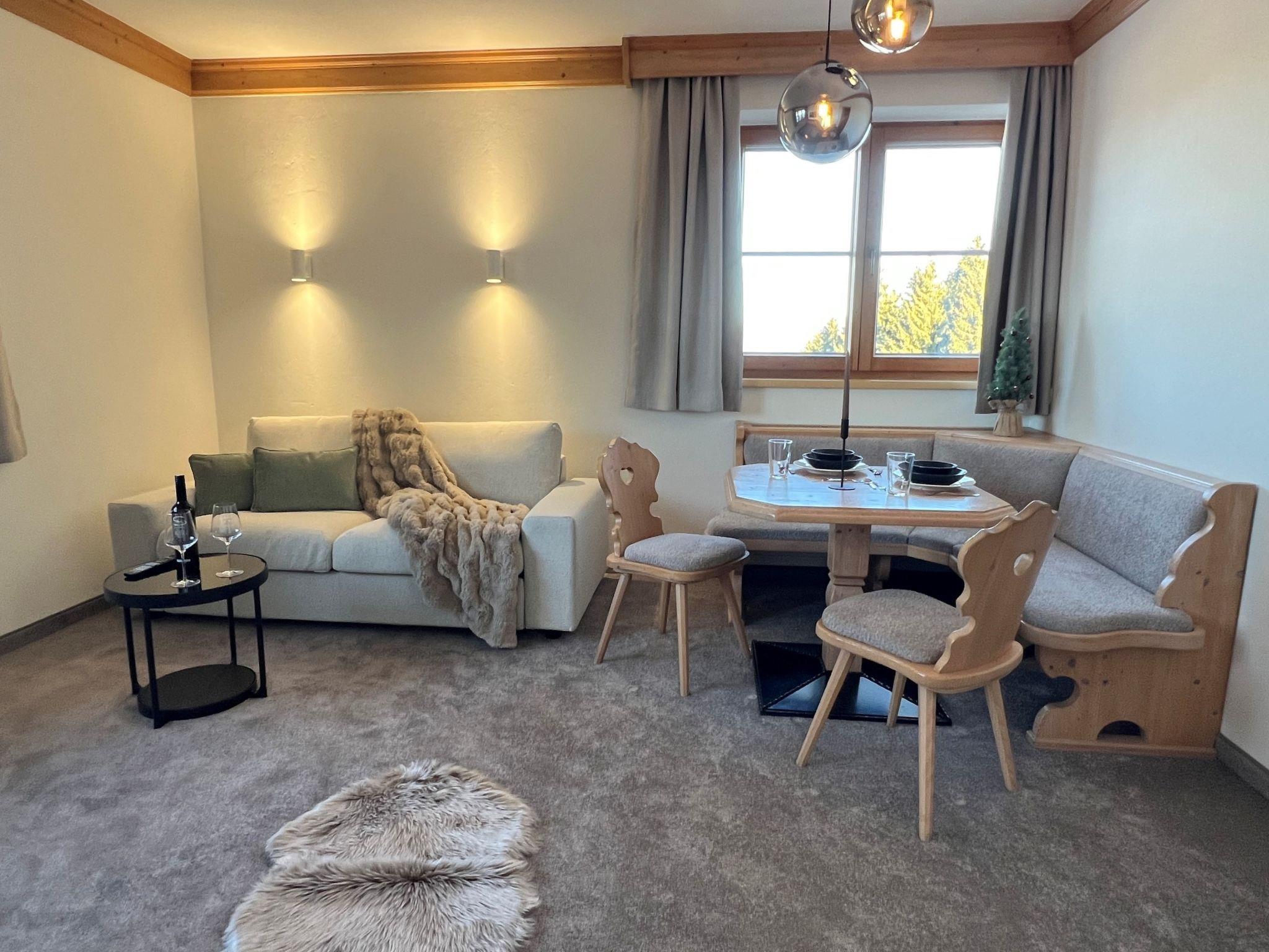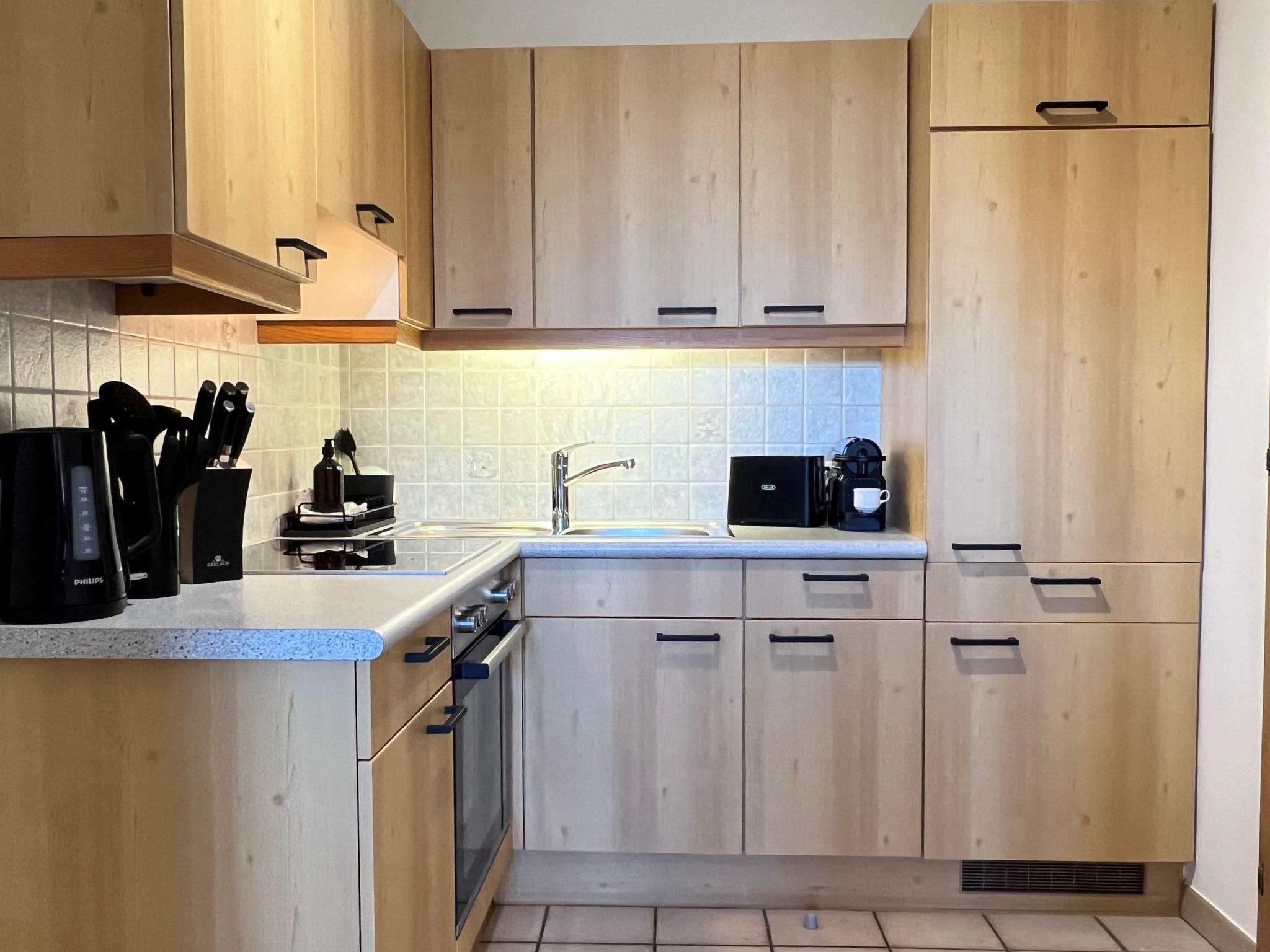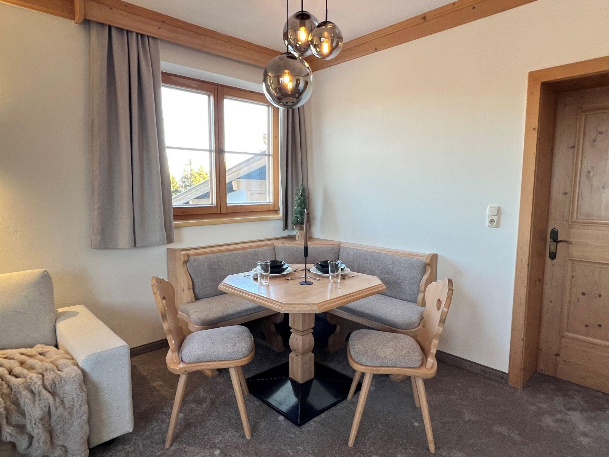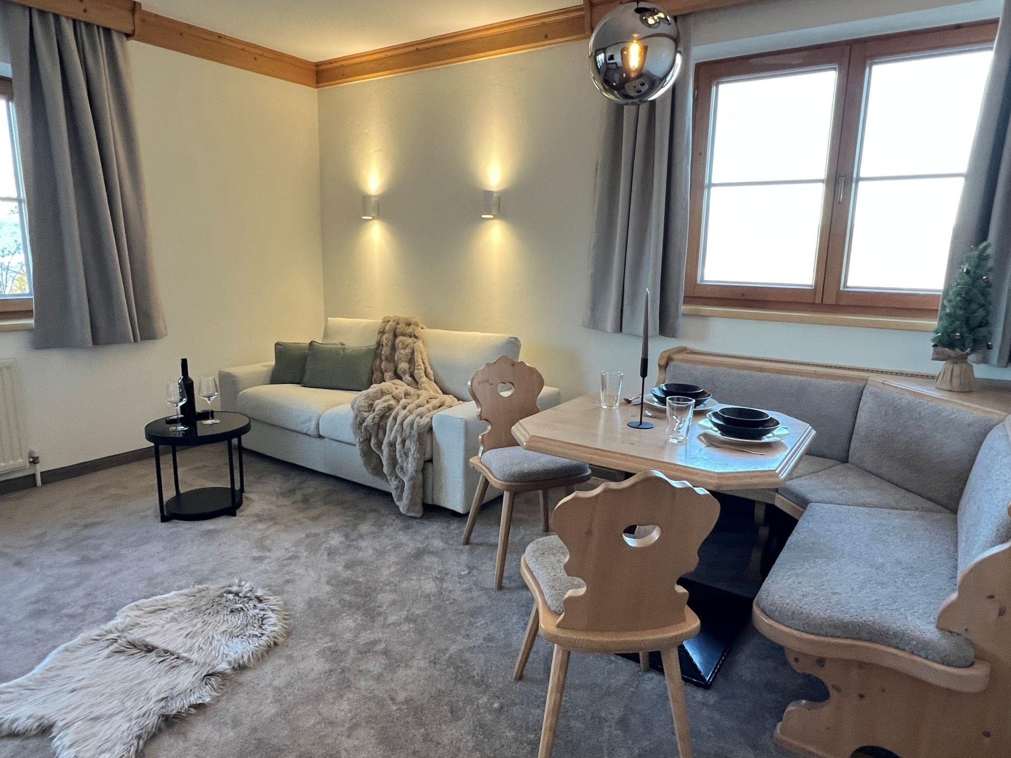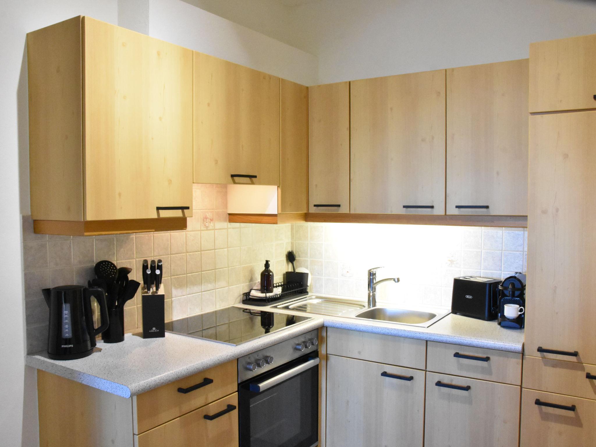 "Fellhorn", 2-room apartment 48 m2, on the ground floor. Cosy furnishings: 1 room with 1 double bed (180 cm, length 200 cm). Living room with 1 double sofabed (140 cm, length 200 cm), TV and flat screen. Kitchen (oven, 4 ceramic glass hob hotplates, toaster, kettle, electric coffee machine) with dining table. Sep. WC, bath or shower, double hand-basin. Very beautiful panoramic view of the mountains. Facilities: Internet (WiFi, free). Please note: non-smokers only. Maximum 1 pet/ dog allowed. Smoke alarm. All divan beds are fully functional beds with a slatted frame and mattress.