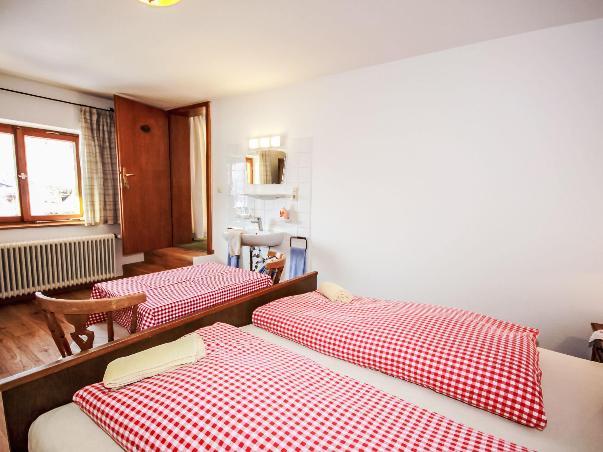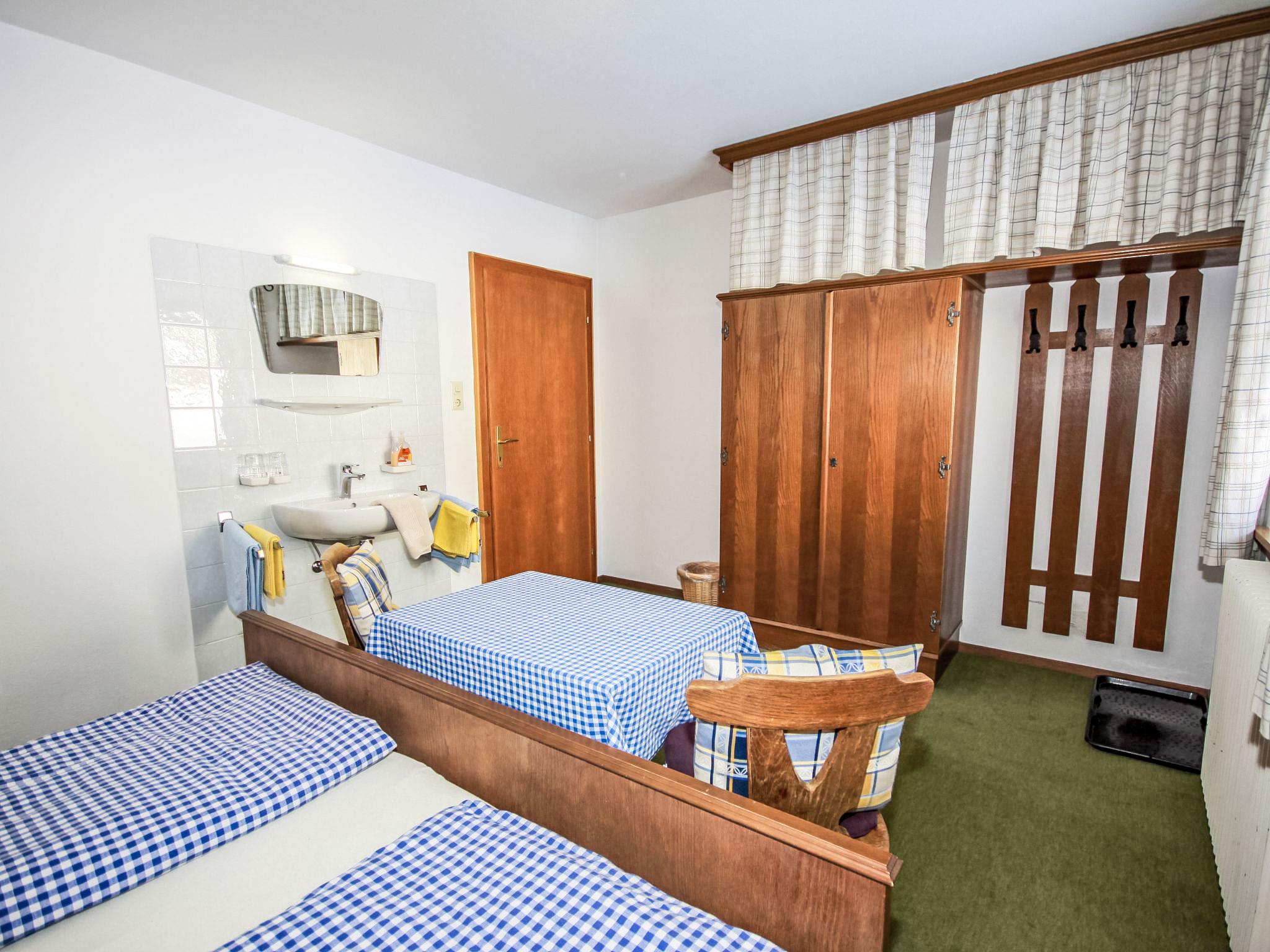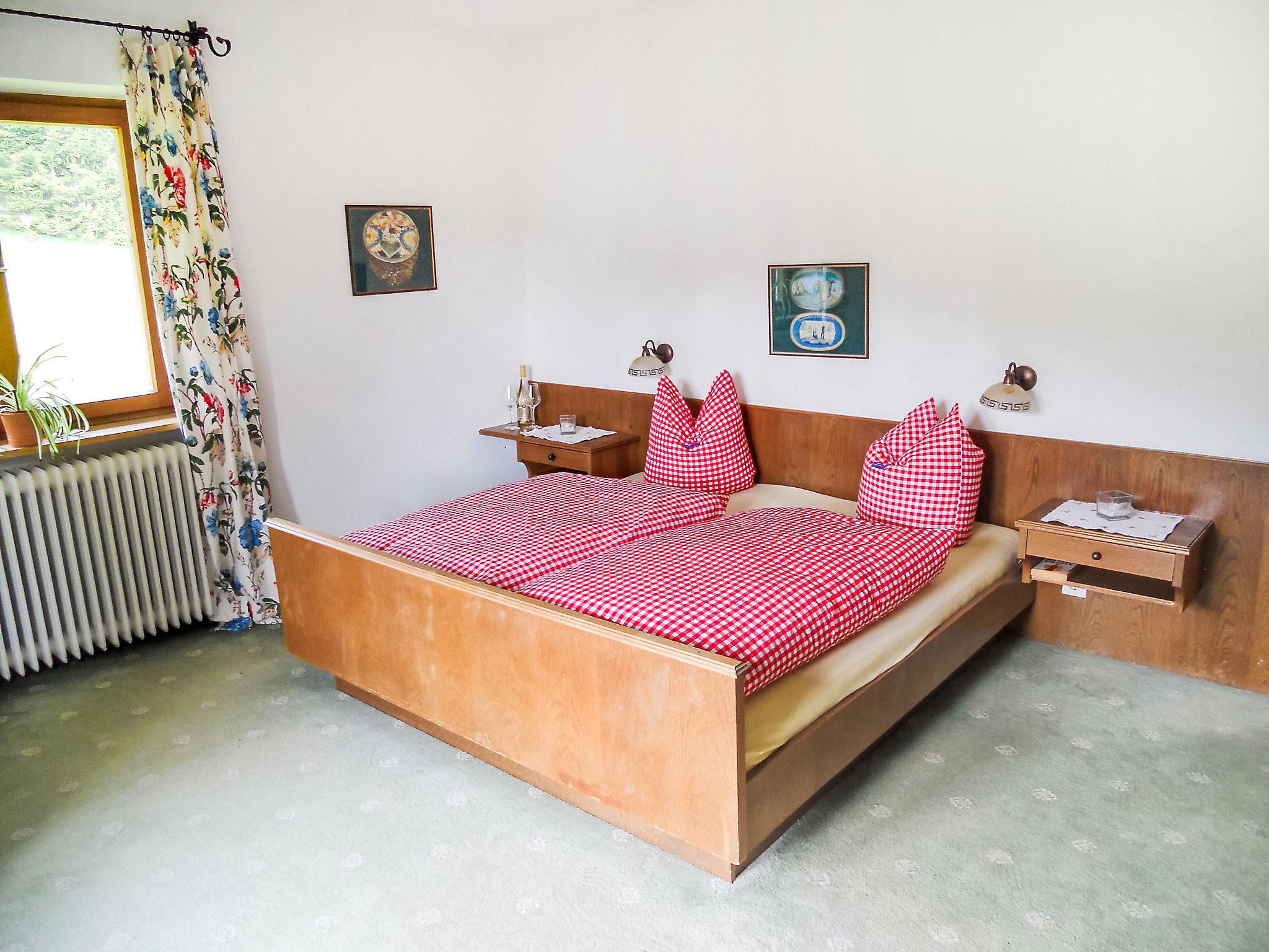 "Fliegerklause", 8-room house 180 m2 on 3 levels. Rustic furnishings: entrance hall. Living room with satellite TV and flat screen. Kitchen (oven, dishwasher, 5 ceramic glass hob hotplates, kettle, microwave, freezer, electric coffee machine) with dining nook. Bath/shower, sep. WC. On the lower ground floor: 1 double bedroom with 1 double bed (2 x 90 cm, length 190 cm), hand-basin. Upper floor: 2 double bedrooms, each room with 1 double bed (2 x 90 cm, length 190 cm), hand-basin. Exit to the balcony. 1 double bedroom with 1 double sofabed (2 x 90 cm, length 200 cm), hand-basin. 1 double bedroom with 1 double bed (2 x 90 cm, length 190 cm), hand-basin. 1 room with 1 bed (90 cm, length 190 cm), hand-basin. Shower/WC, sep. WC. Large balcony. Box-room. Beautiful view of the mountains and the countryside. Please note: suitable for families. Non-smoking house. Smoke alarm.