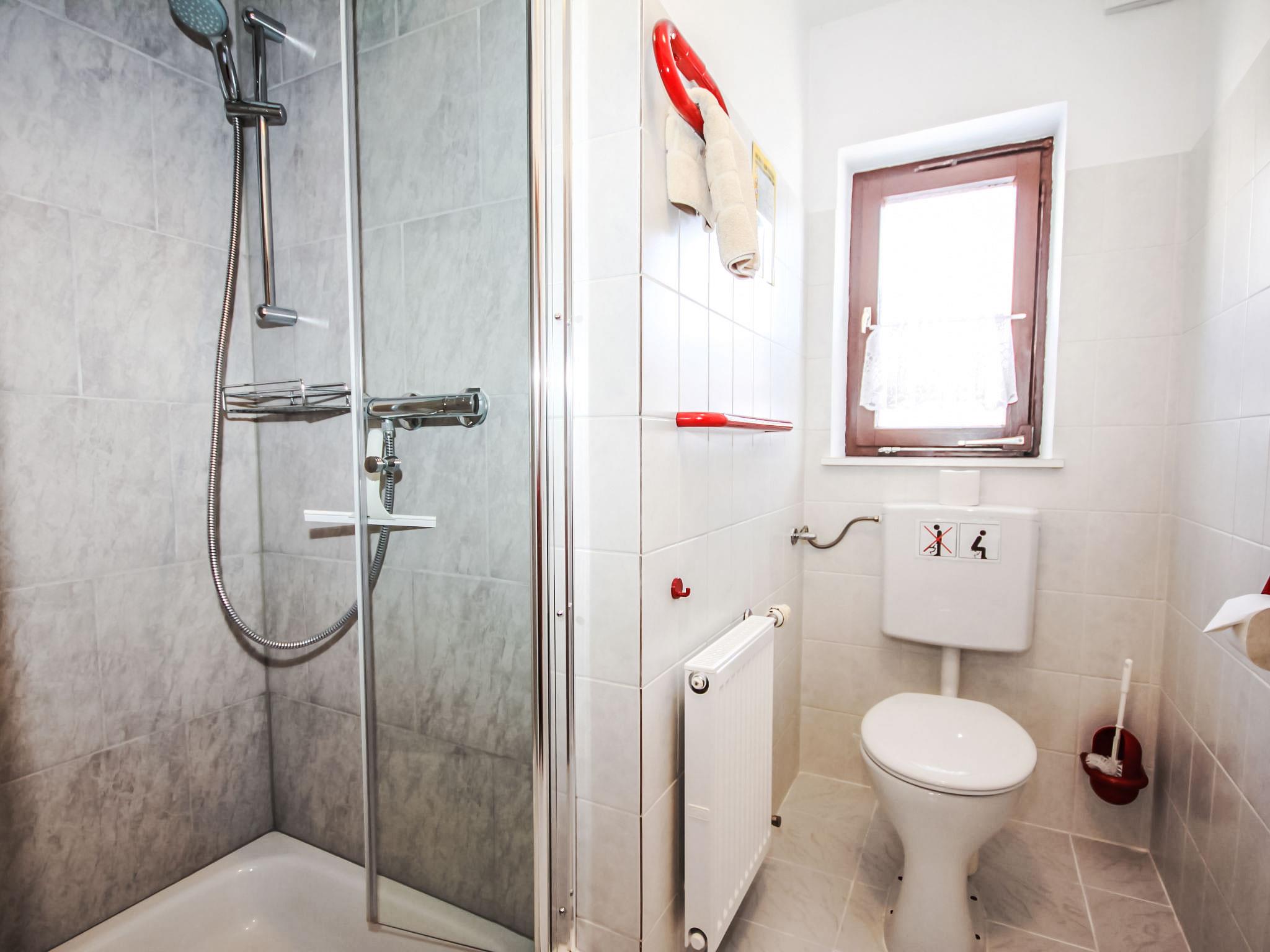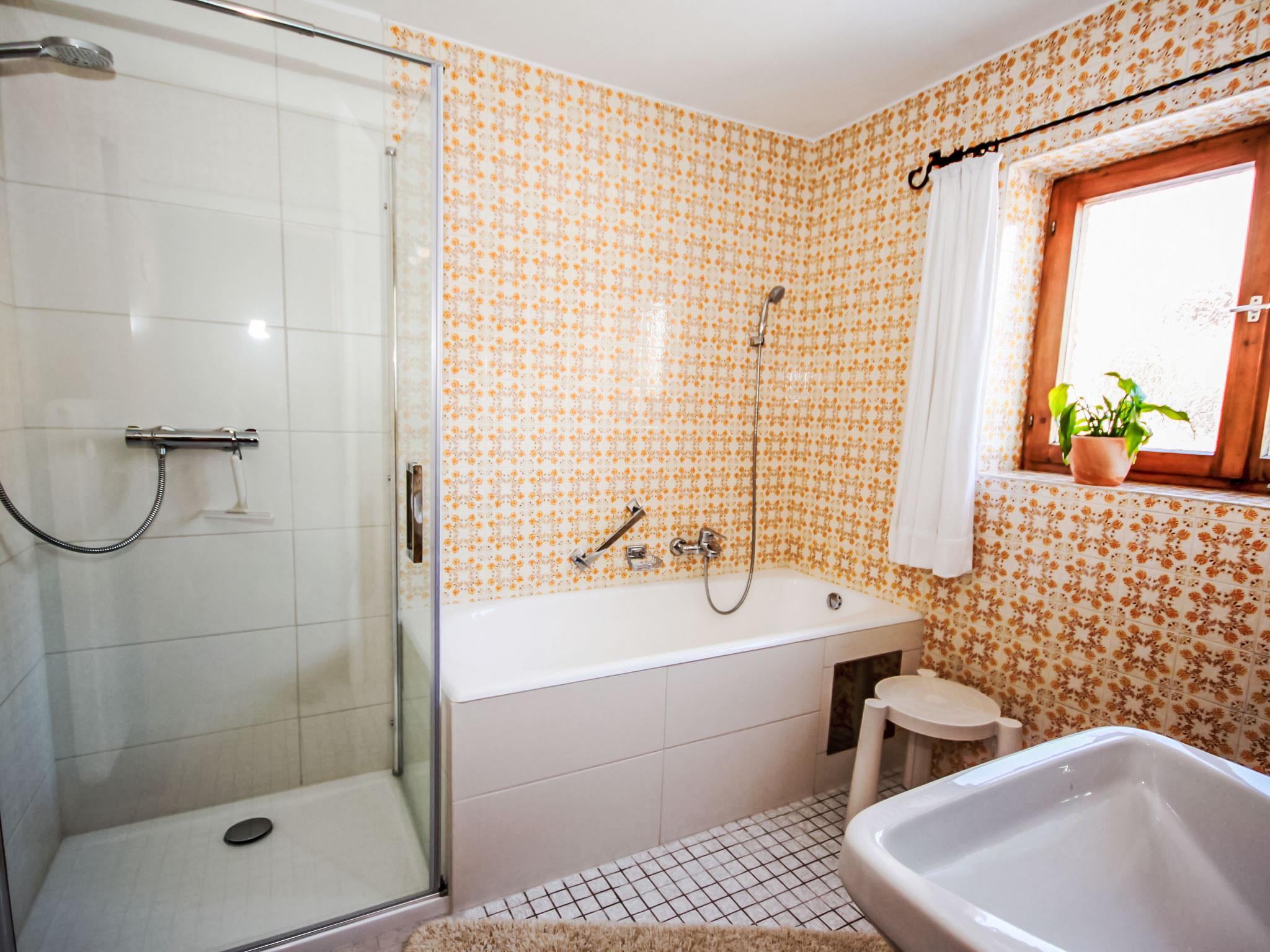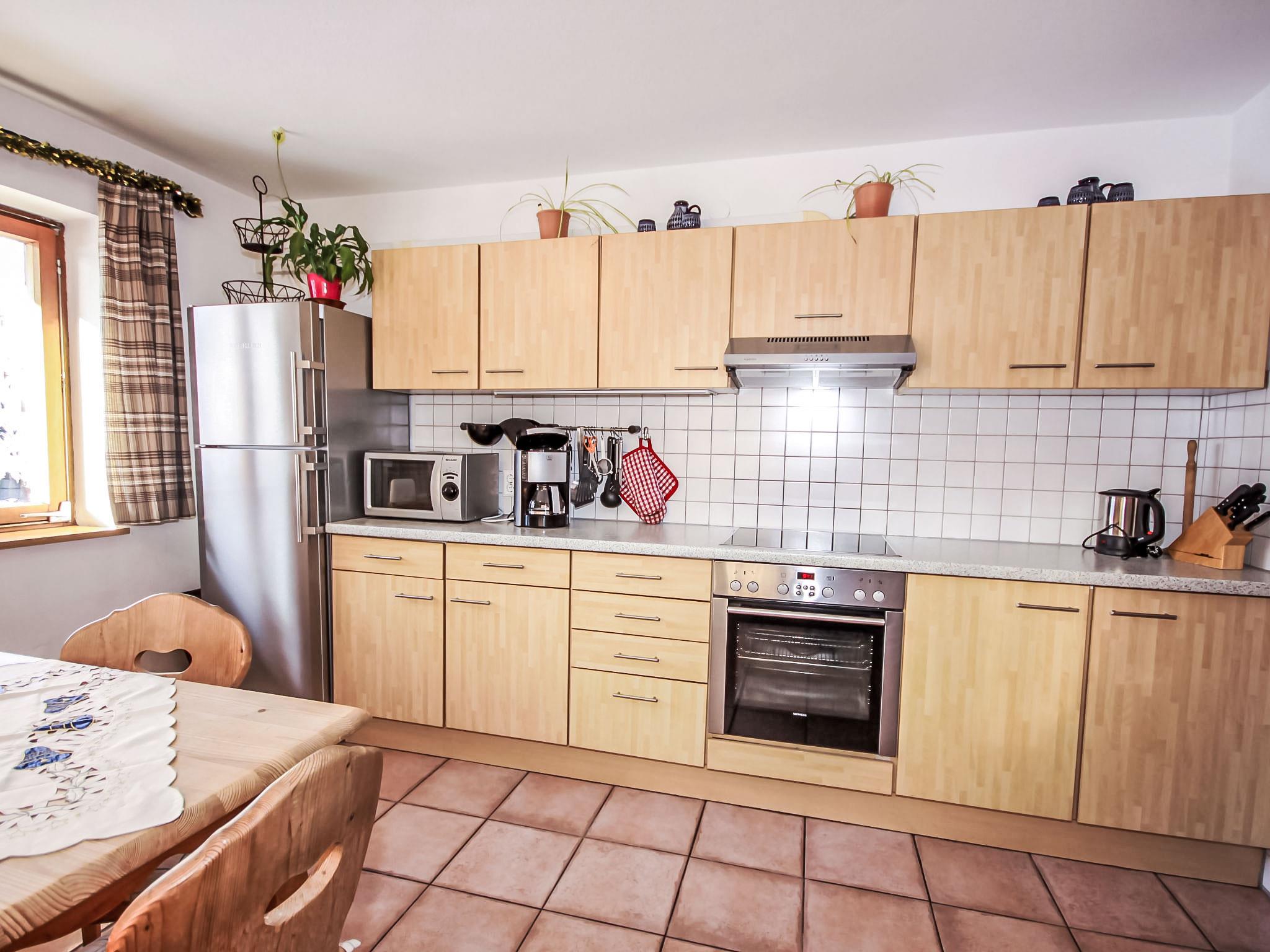 "Fliegerklause", 8-room house 180 m2 on 3 levels. Rustic furnishings: entrance hall. Living room with satellite TV and flat screen. Kitchen (oven, dishwasher, 5 ceramic glass hob hotplates, kettle, microwave, freezer, electric coffee machine) with dining nook. Bath/shower, sep. WC. On the lower ground floor: 1 double bedroom with 1 double bed (2 x 90 cm, length 190 cm), hand-basin. Upper floor: 2 double bedrooms, each room with 1 double bed (2 x 90 cm, length 190 cm), hand-basin. Exit to the balcony. 1 double bedroom with 1 double sofabed (2 x 90 cm, length 200 cm), hand-basin. 1 double bedroom with 1 double bed (2 x 90 cm, length 190 cm), hand-basin. 1 room with 1 bed (90 cm, length 190 cm), hand-basin. Shower/WC, sep. WC. Large balcony. Box-room. Beautiful view of the mountains and the countryside. Please note: suitable for families. Non-smoking house. Smoke alarm.