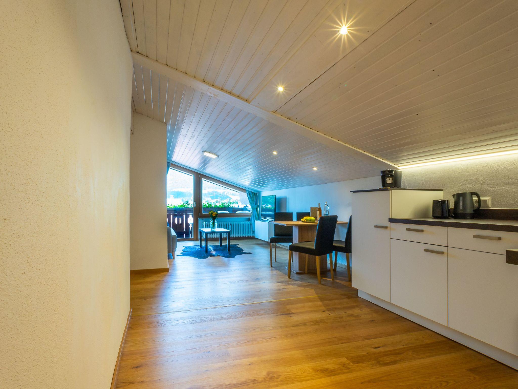 The 80m² flat has 1 bedroom with a double bed and sleeping facilities for 2 people in the living room. In addition to the bathroom with shower and toilet, there is also an extra toilet. In the fully equipped kitchen there is a dining table for cosy get-togethers. You can enjoy the afternoon and evening sun on our beautiful balcony with a view of the Wilder Kaiser.