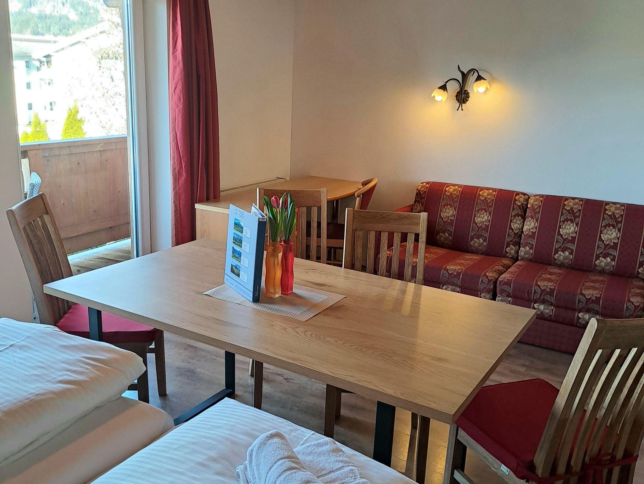 Dieses Appartement verfügt über einen eigenen Balkon mit Blick auf das Kitzbüheler Horn oder den Wilden Kaiser, Badezimmer und TV.