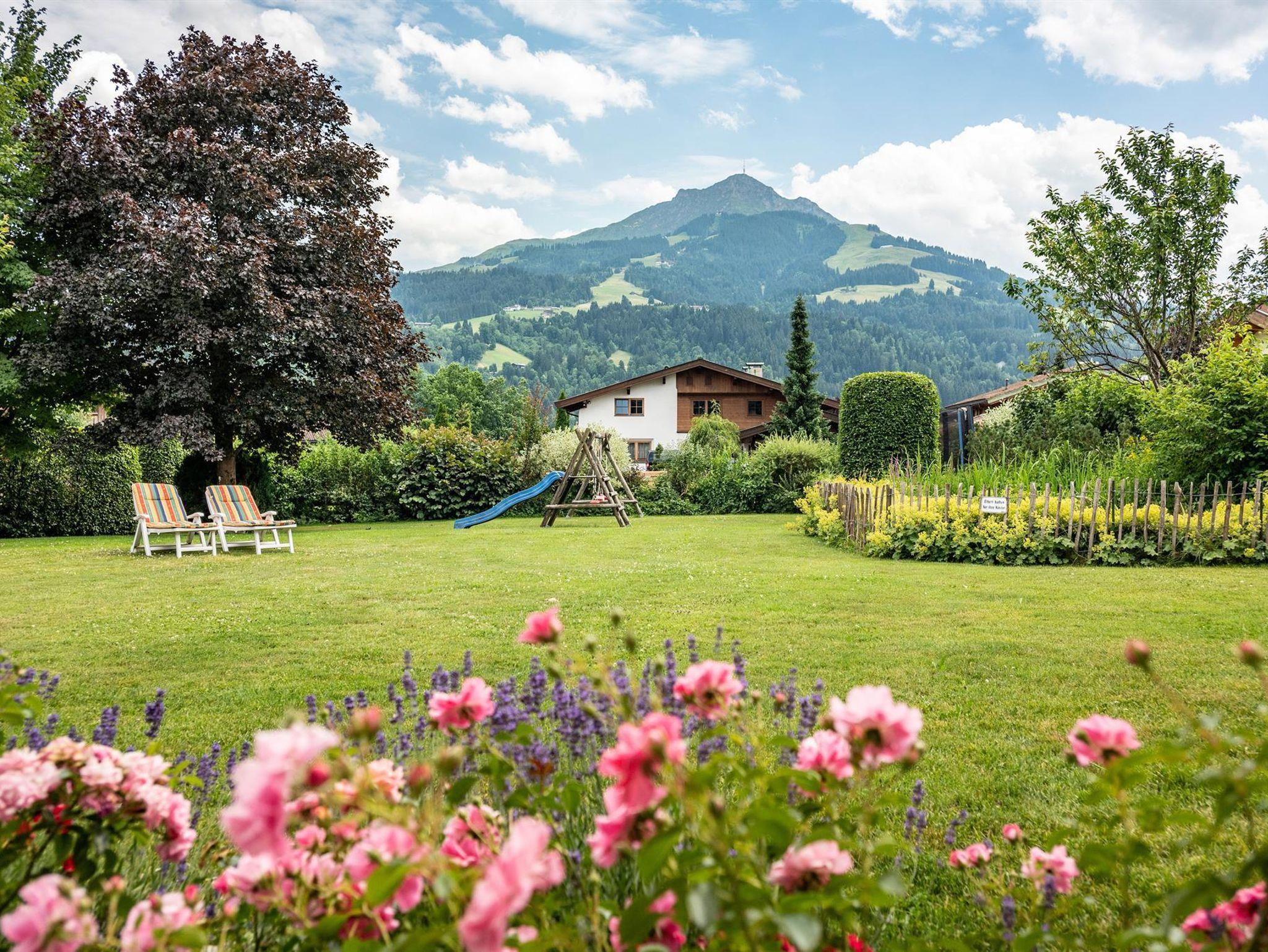 Auf der sonnigen, ruhigen Terrasse mit Blick aufs Kitzbühler Horn, können Sie neue Kraft und Energie tanken. W-Lan, 1 kostenloser Überdachter Parkplatz sind inklusive.