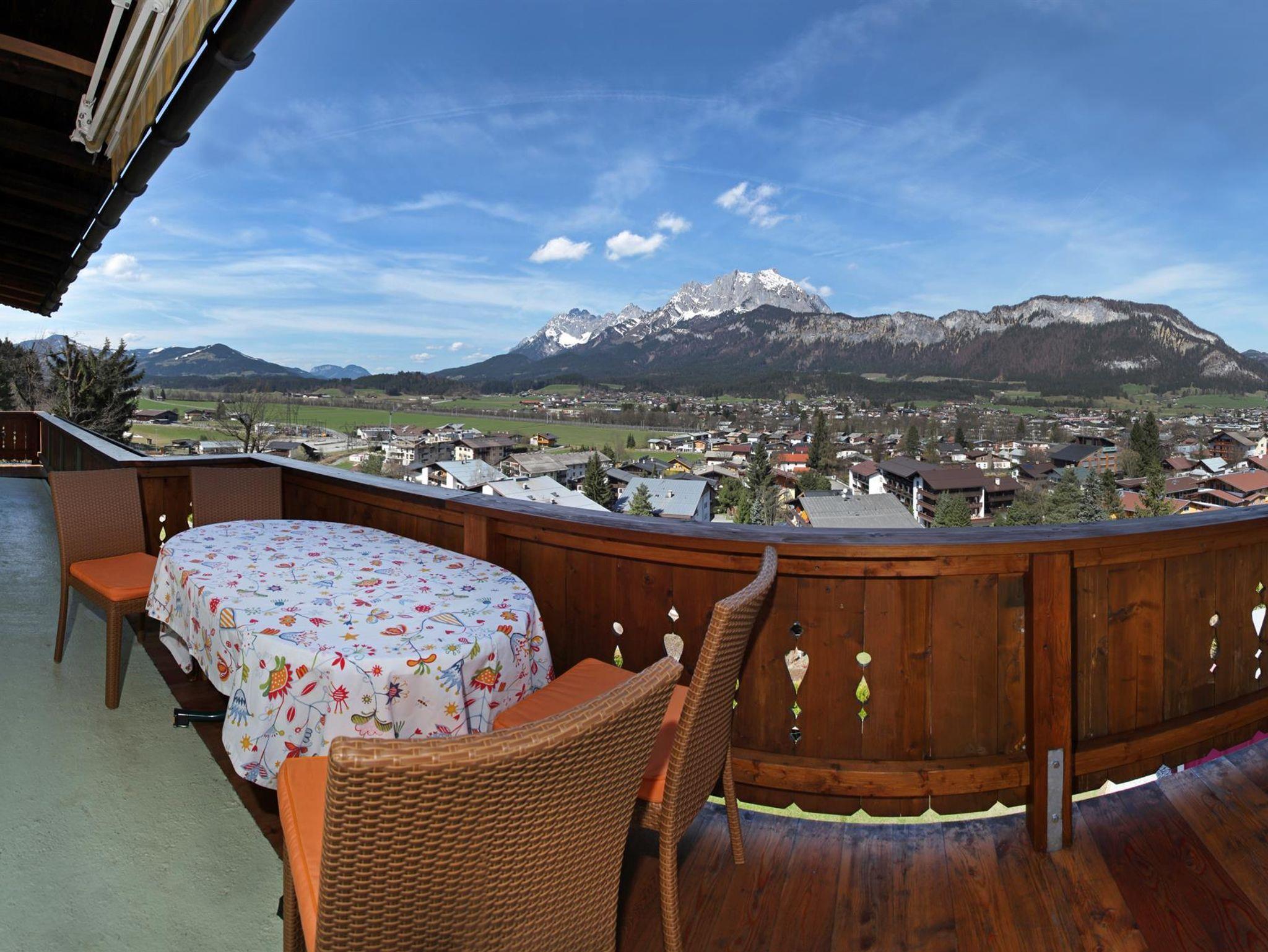 Das sonnige und ruhig gelegene 3-Zimmer-Appartement Kaiserblick 2 im Nebenhaus eignet sich für 2-5 Personen und verfügt über eine gemütliche Wohnküche mit einmaliger Aussicht und zwei Schlafzimmer mit Doppelbetten. Der große dreiseitige Balkon lädt ein, den Wilden Kaiser in der Abendsonne zu bestaunen.