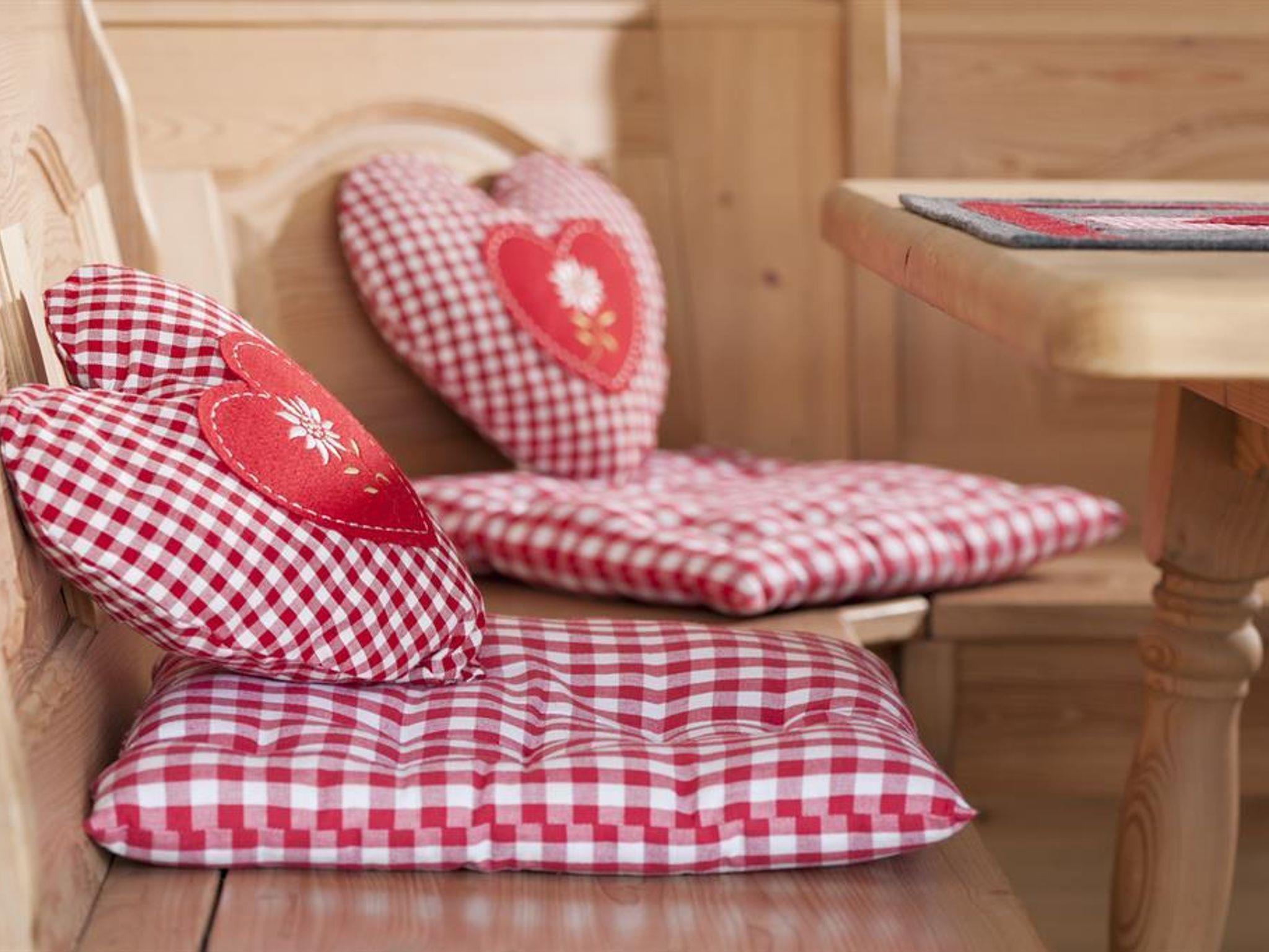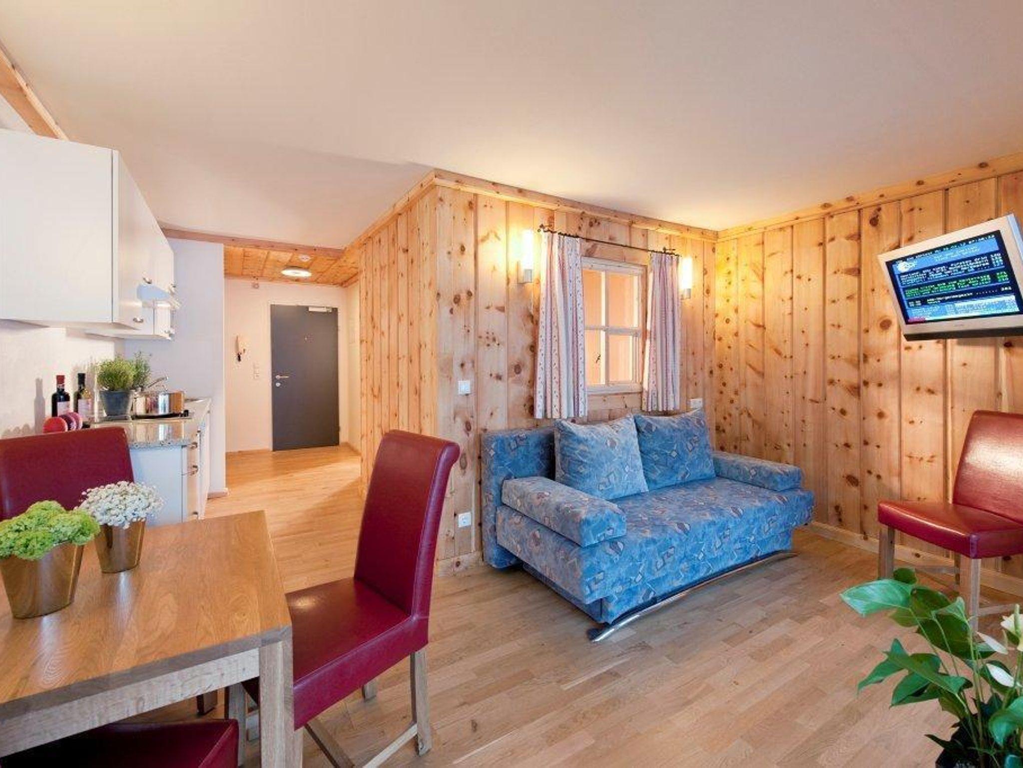 Für Ihr Wohlbefinden: Alle Studios und Appartements sind freundlich, hell, liegen südseitig. Betten, Kästen und Kommoden sind aus Zirbenholz gefertigt. Parkettböden im Wohn- und Schlafbereich, Sat-TV und WLAN im ganzen Haus.