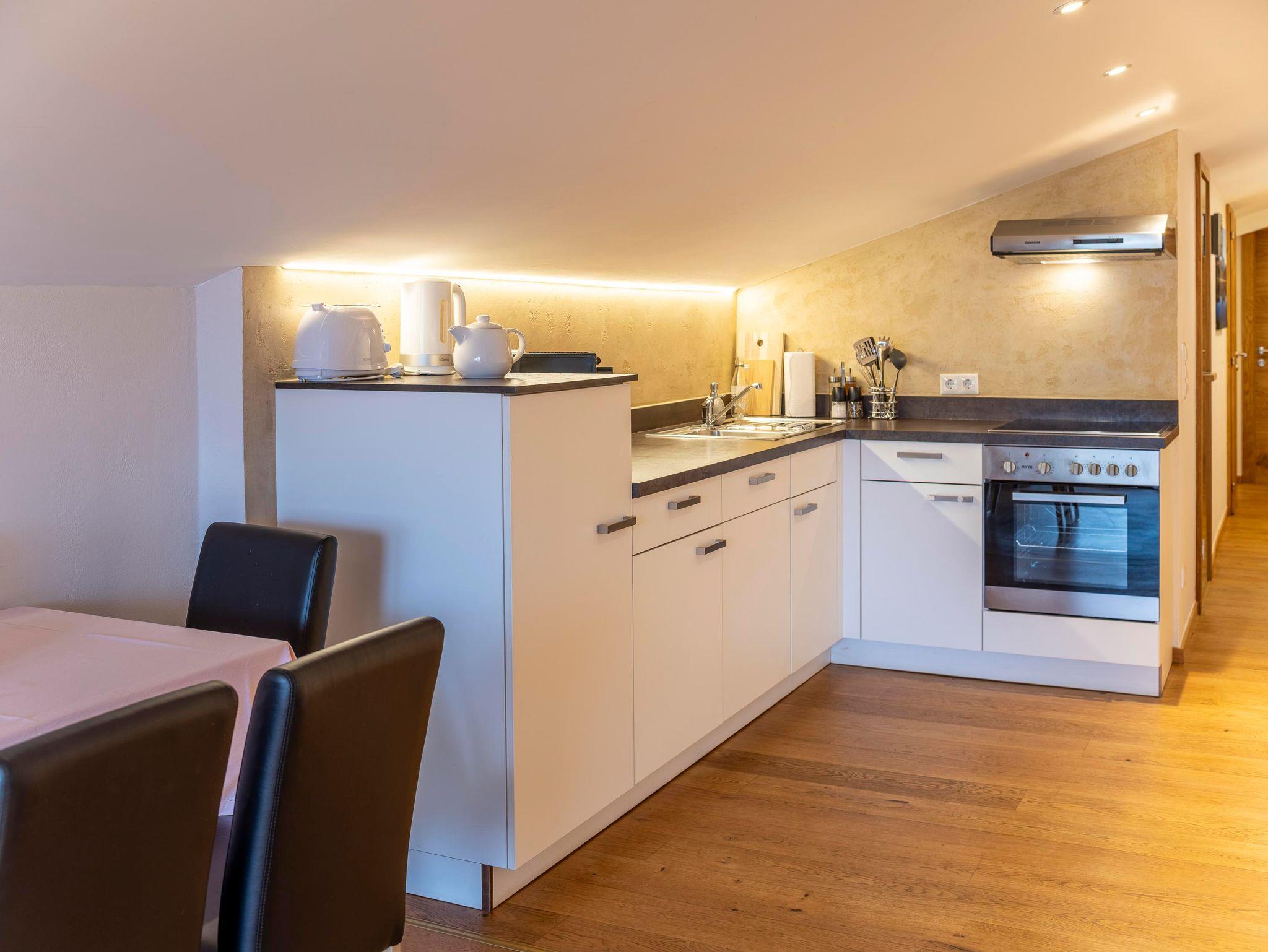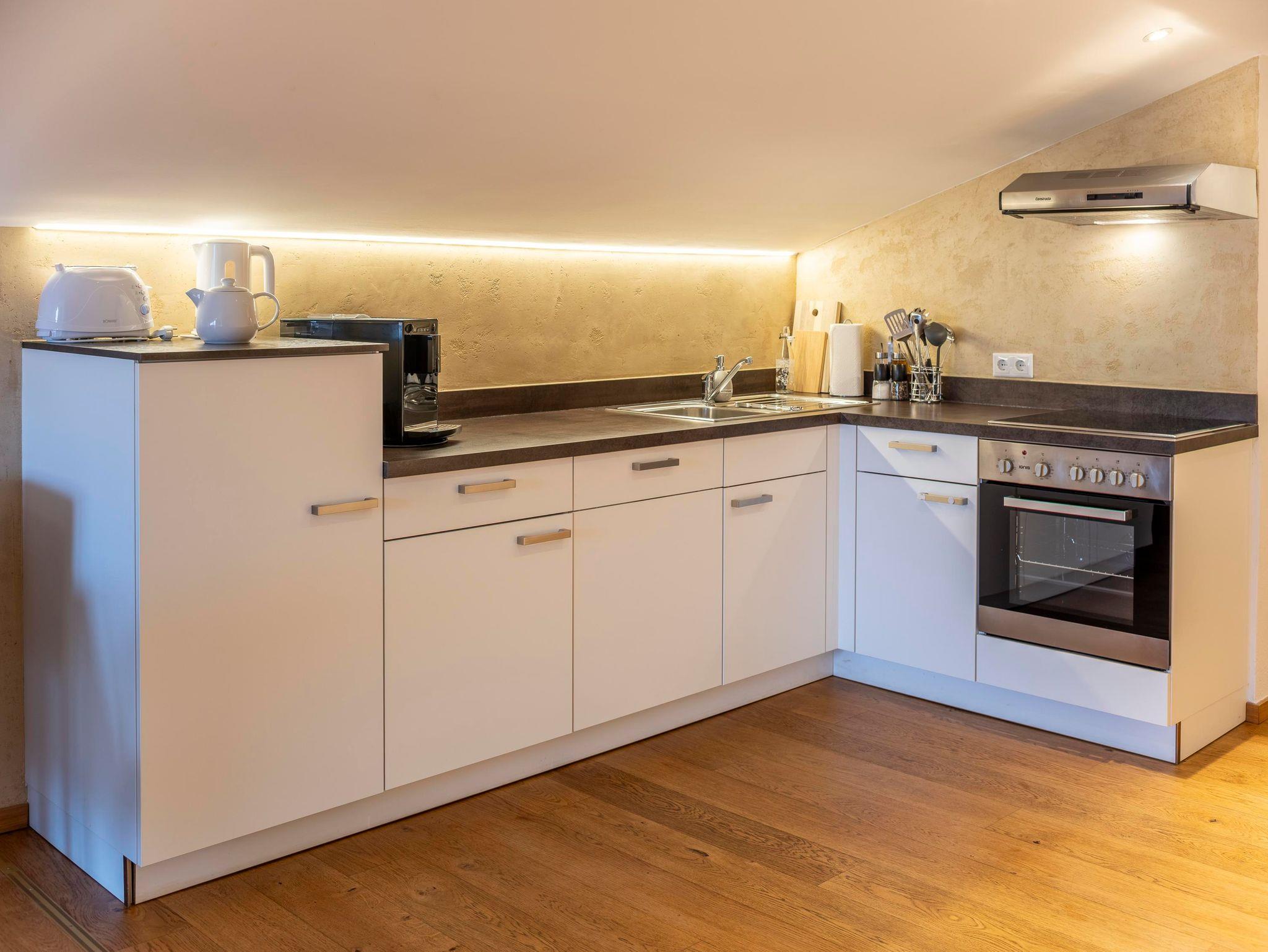 Unsere Wohnungen verfügen jeweils über eine eigene Küche, 1 bzw. 2 Bäder/WC's, Balkon/Terrasse. Besonders schön ist der Ausblick auf den Wilden Kaiser. Der Eintritt in die Panorama Badewelt ist mit der Gästekarte für unsere Gäste kostenlos (saisonabhängig).
