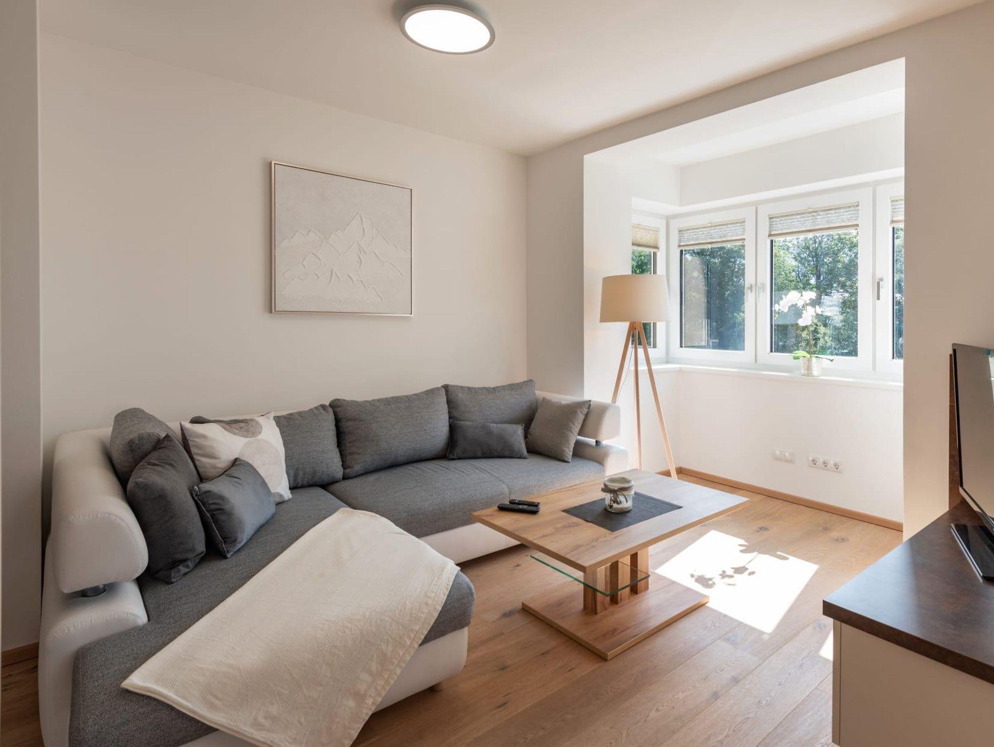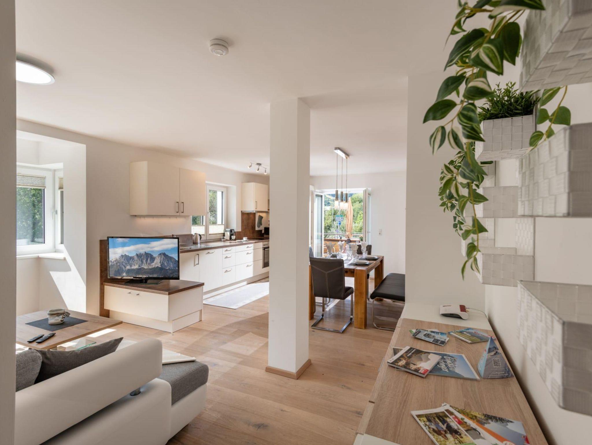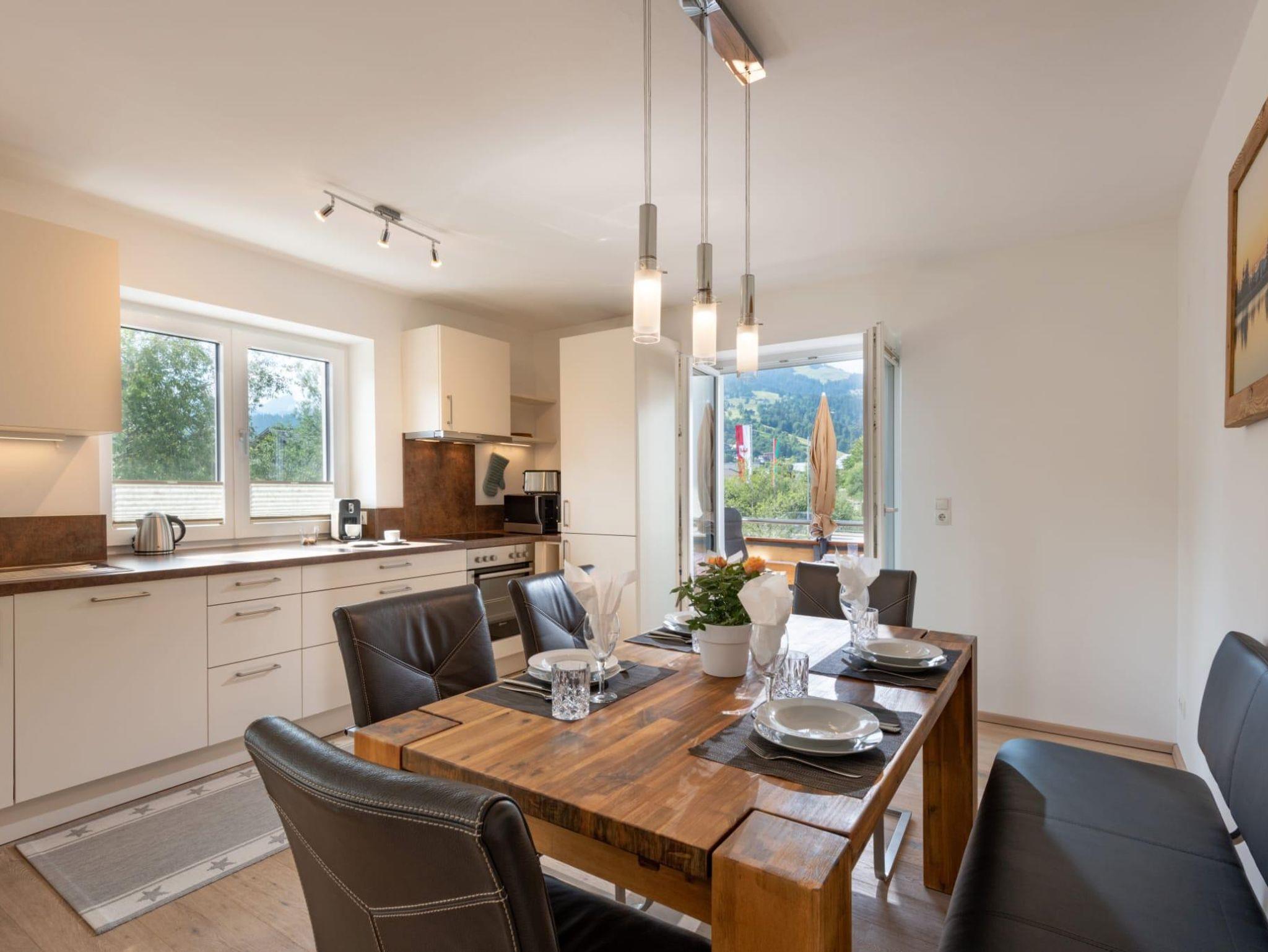 Das 57 qm große Appartment Achenblick im 1. Stock befindet sich neben der Kitzbüheler Ache und verfügt über einen atemberaubenden Blick auf die Bergwelt. Es besitzt ein Schlafzimmer (Bett 160x200), ein Wohnzimmer mit Ausziehcouch (160x200), Küche , Badezimmer mit WC und Dusche, Vorraum und Balkon. Es ist modern eingerichtet und verfügt über alle Annehmlichkeiten, wie Kaffeemaschine (Cremesso Kapseln nicht inkl.), Wasserkocher, Toaster, Geschirrspüler, Mikrowelle mit Grill & Waschmaschine.
