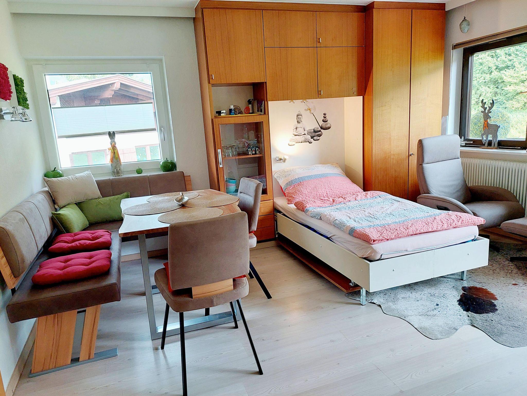 Das Haus liegt in sonniger,ruhiger TOP-LAGE direkt am Fuße des Kitzbüheler Horns. Skifahren bis zur Haustüre. 4Minuten zur Bergbahn/Skischule/Sessellift. Das Zentrum ist zu Fuss leicht erreichbar! Mein 60 m2 WOHLFÜHL-APPARTEMENT(Nichtraucher) bietet Ihnen Wohlfühl Komfort in liebevoller Gestaltung. 2022 wurde neu ausgemalt/renoviert & sowie eine neue moderne Einrichtung. Das SZ hat ein Leder Doppelbett mit 2 neuen FK Matratze & Bettenroste. Ein Sofa mit Schlaffunktion f. 2 Kinder ist im SZ. Im WZ ist eine neue Sitz/Ess/Ecke (08/22) sowie ein Wandbett. FLAT TV,Radio/CD, Relaxliege /2 Balkone Tages & Abendsonne & laden Sie zum Relaxen & Geniessen ein. Das Bad/WC sind getrennt, die Küche ist klein aber gut ausgestattet. Kaffe/Filter/Tee steht zu Ihrer Verfügung! In meinem Kellerabteil sind Ihre Fahrräder sowie Ihre Skiausrüstung gut aufgehoben & safe.
