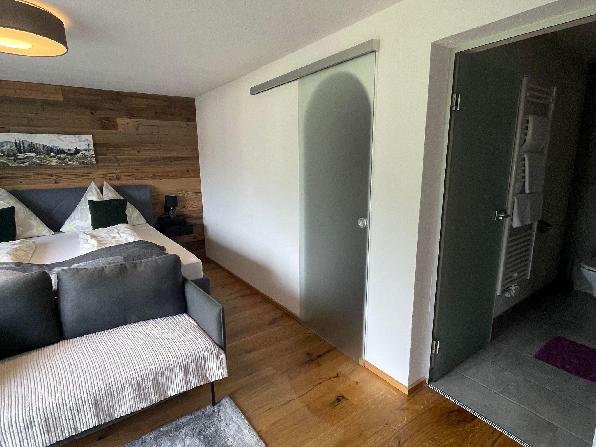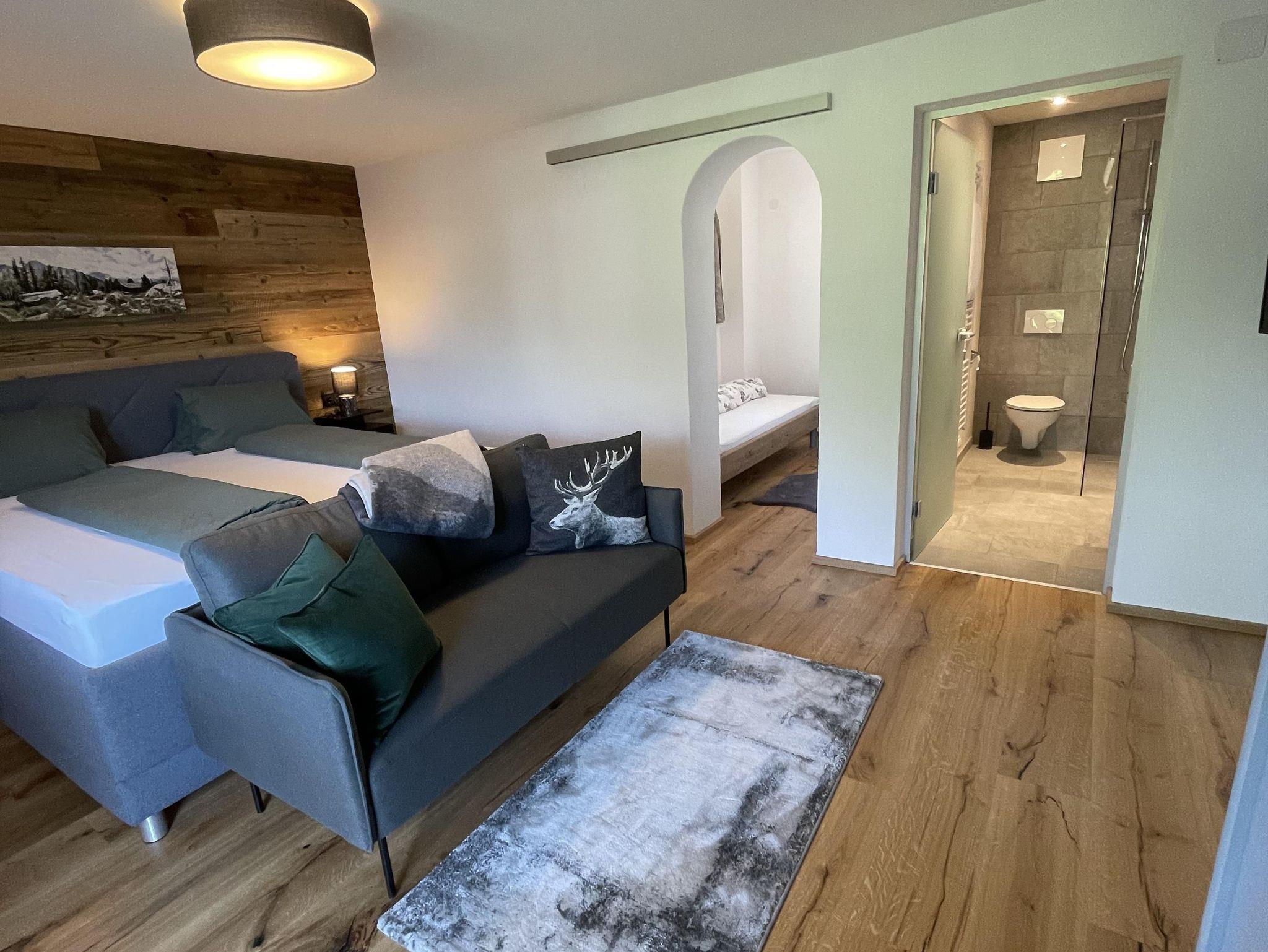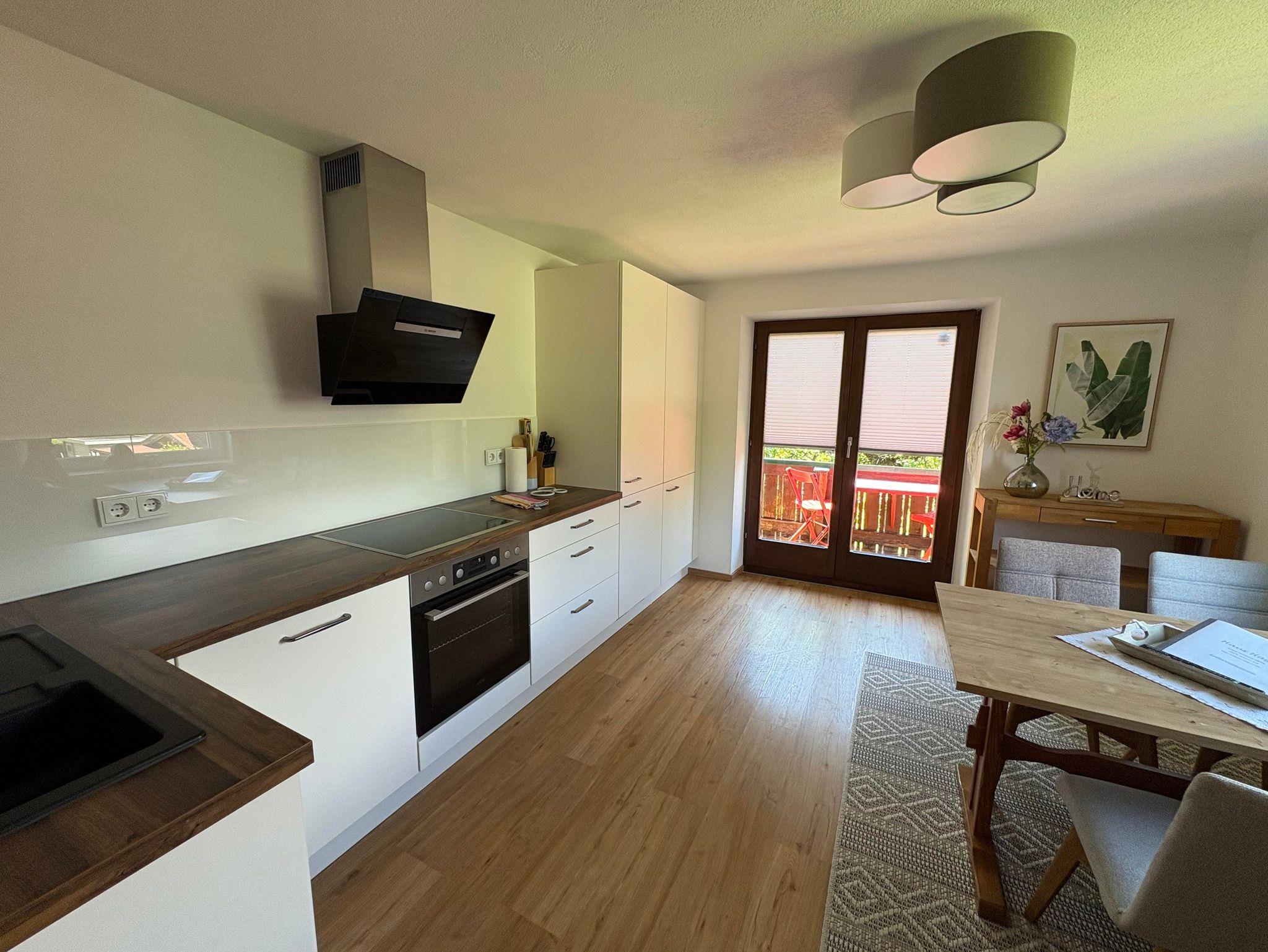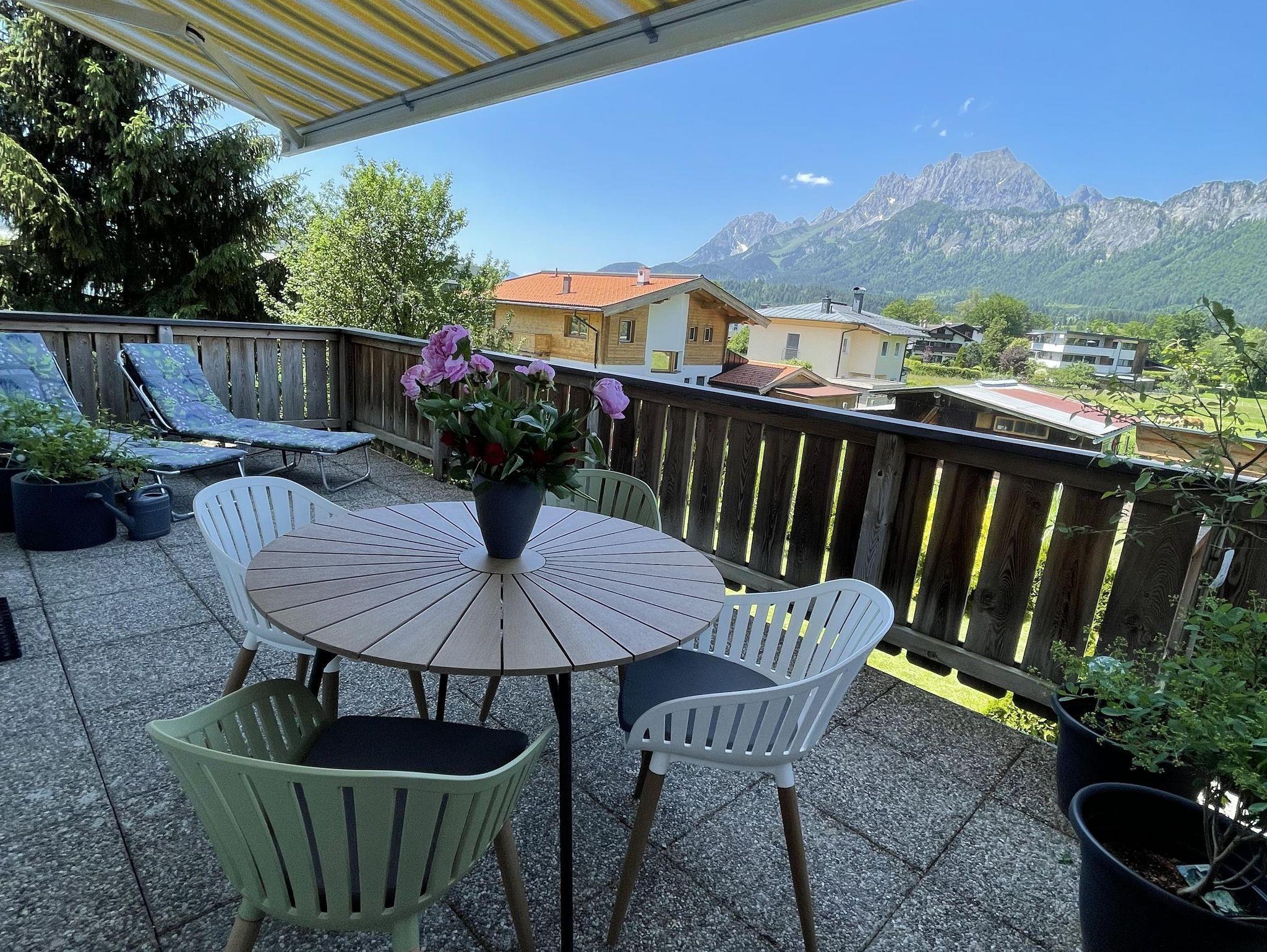 Das Appartement Wilder Kaiser ist neu renoviert und modern eingerichtet, ca. 50 m² groß. Es gibt ein großes Doppelbettzimmer mit Durchgang zum Einbettzimmer, eine Wohnküche mit Balkon und eine große Terrasse mit Blick auf den Wilden Kaiser, sowie ein Bad mit begehbarer Dusche und WC.