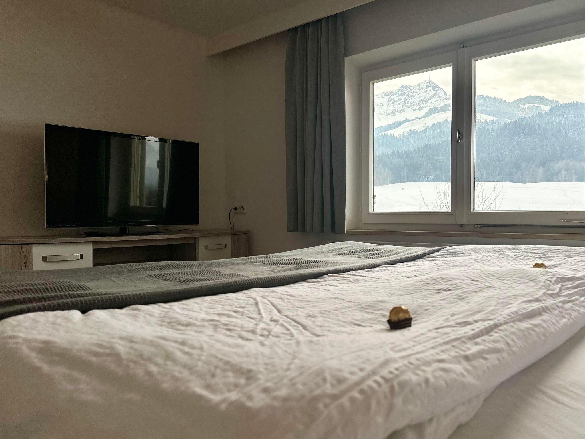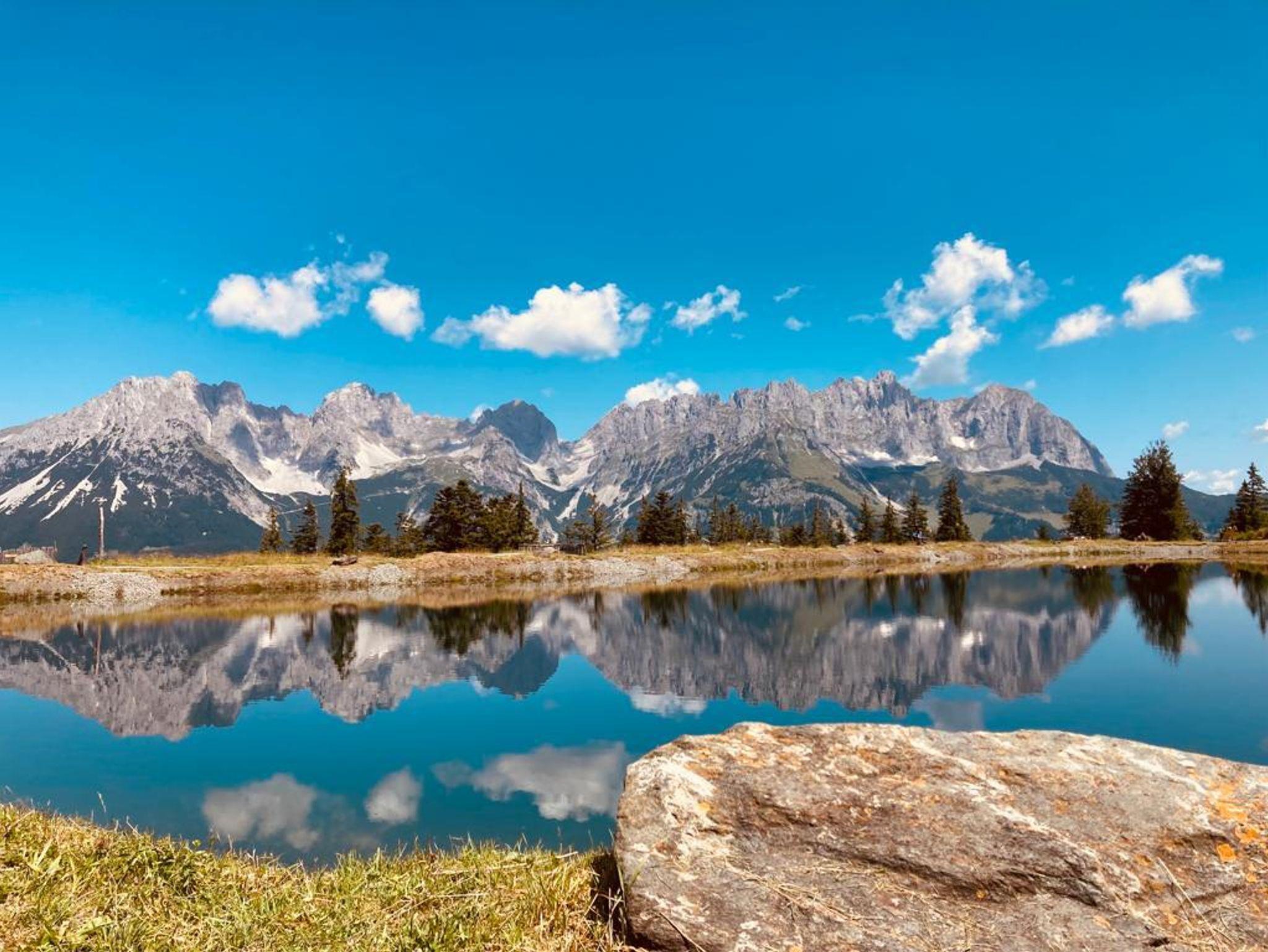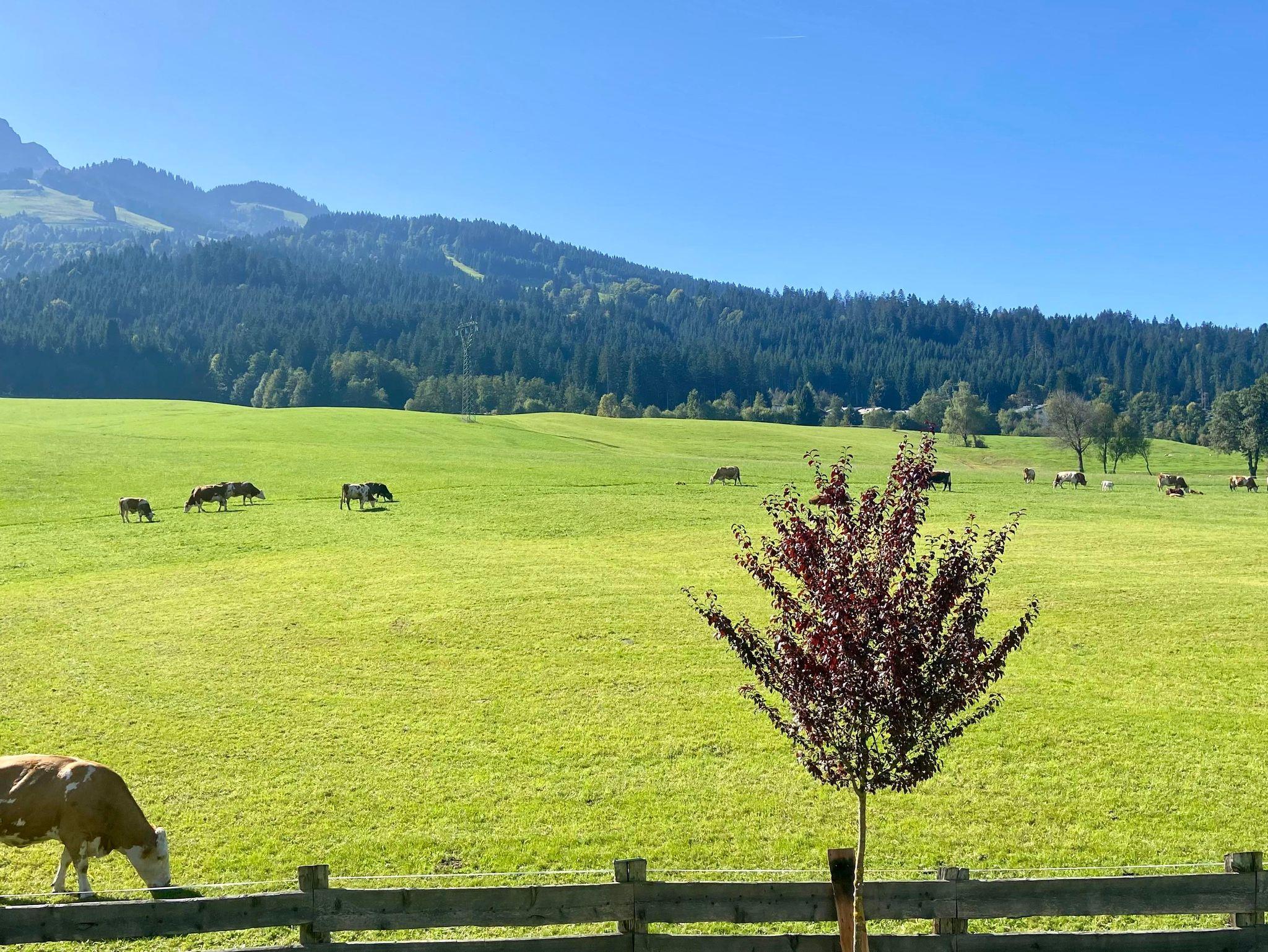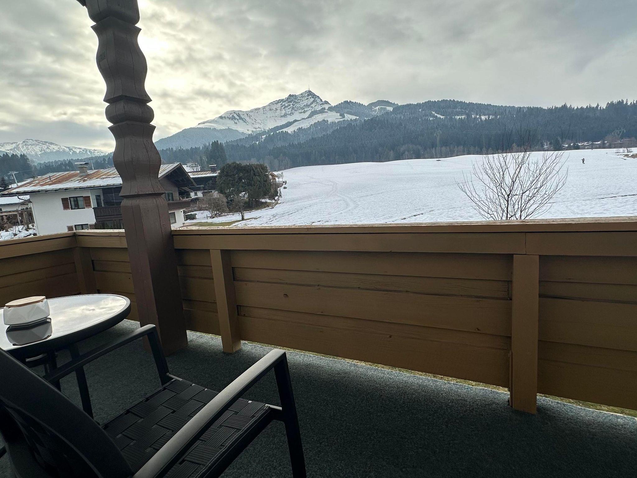 Genießen Sie vom Balkon aus, den einzigartigen Panoramablick auf den Wilden Kaiser, den Kalkstein und das Kitzbüheler Horn. Ein perfekter Moment, die Seele einmal baumeln zu lassen.