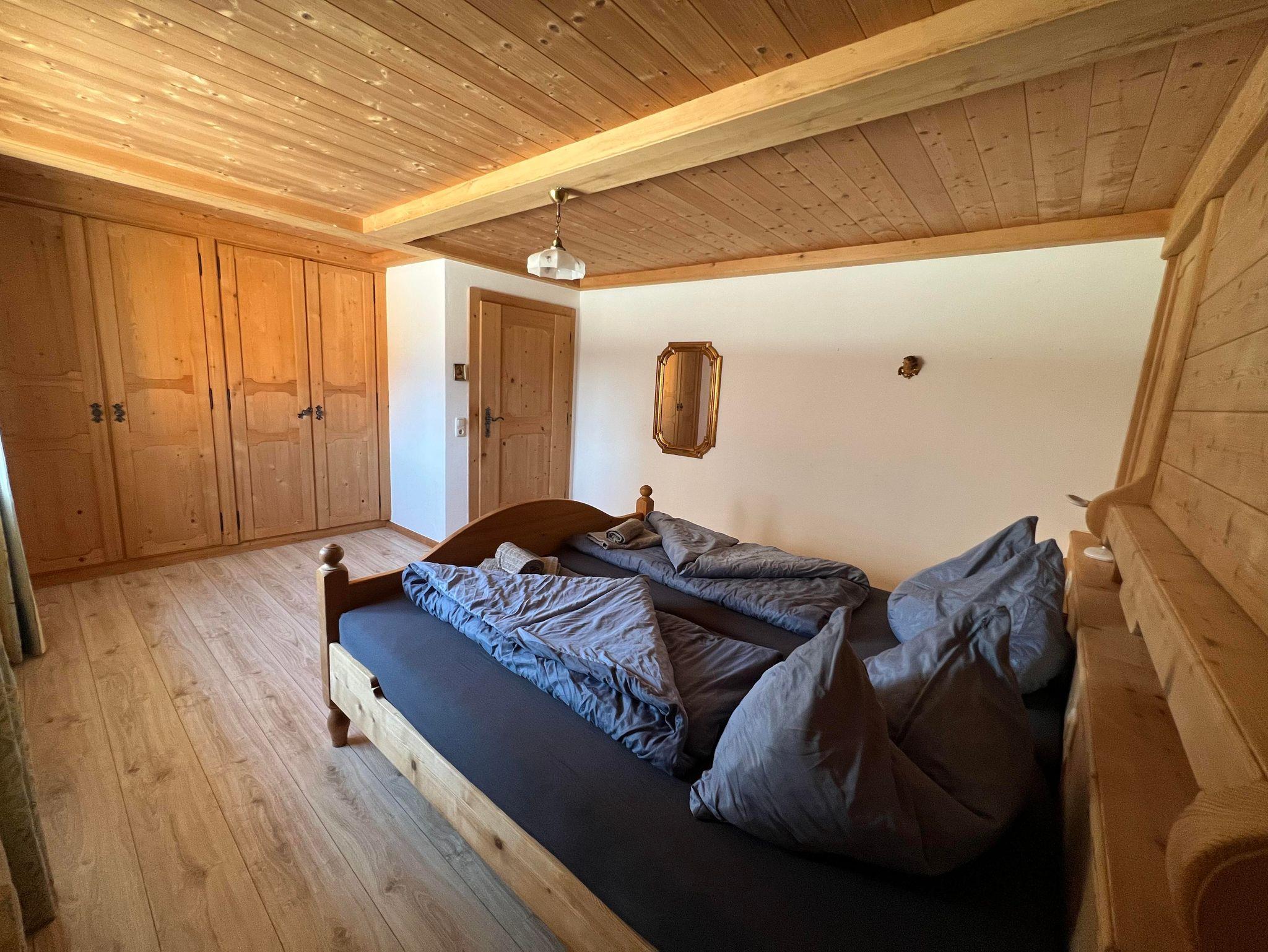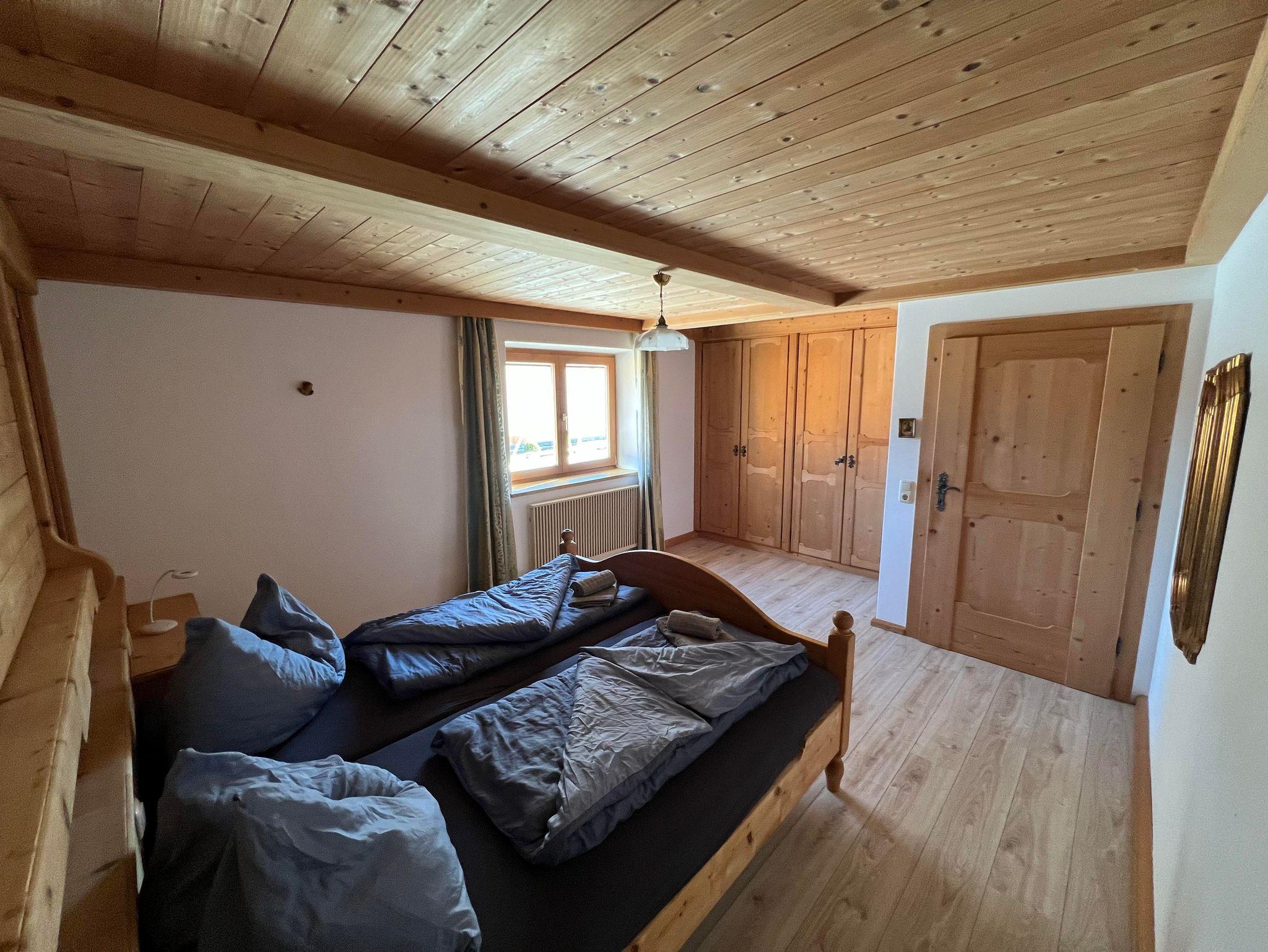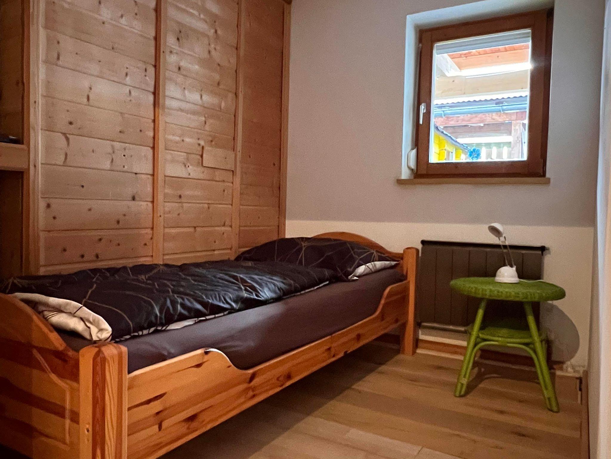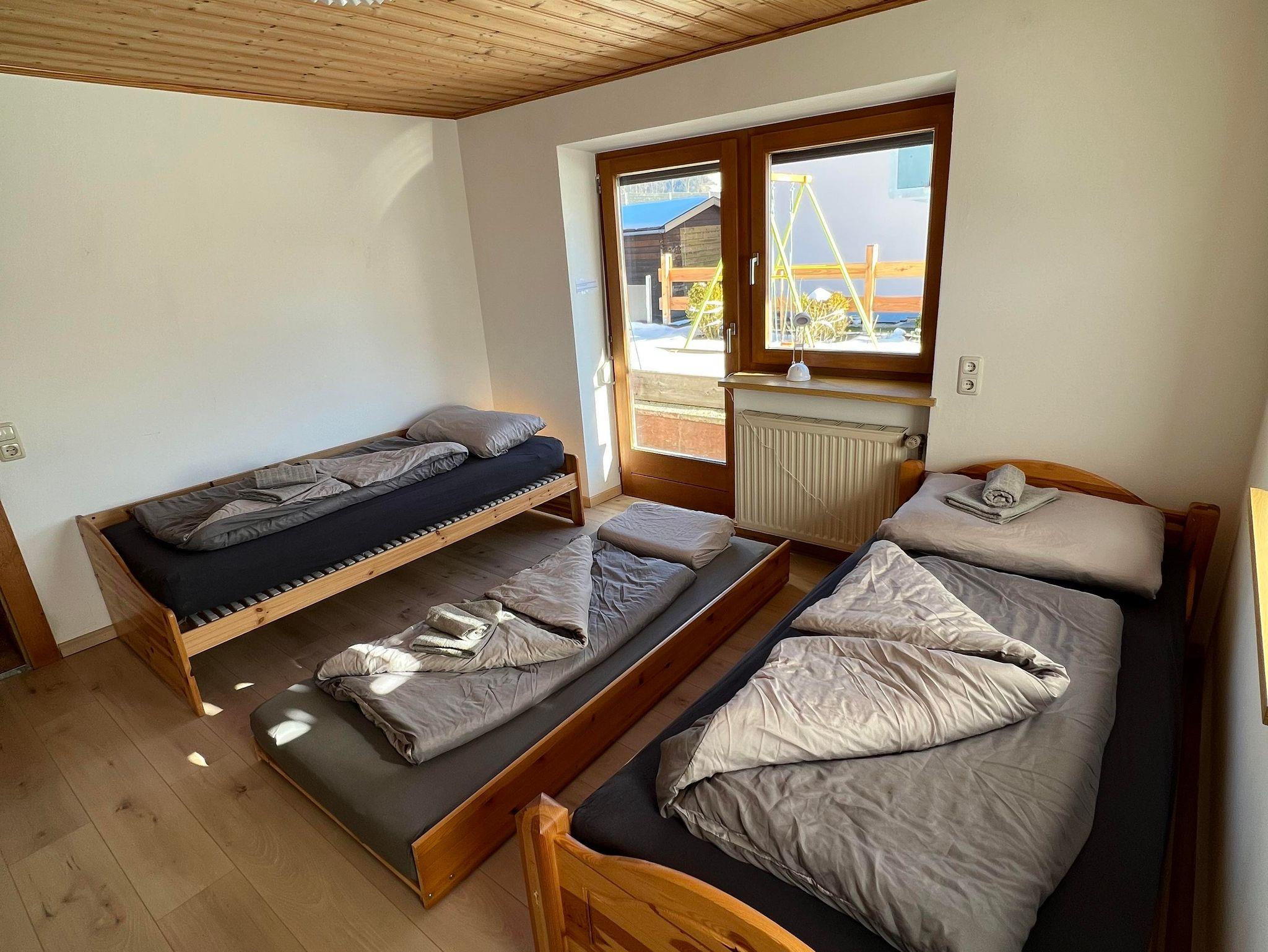 Die Wohnung verfügt über drei Schlafzimmer und eine große, komplett ausgestattete Küche mit Esstisch und zusätzlichem Kachelofen. Das helle Bad bietet Dusche, Waschtisch und WC, ergänzt durch ein separates WC. 2 Parkplätze stehen zur Verfügung