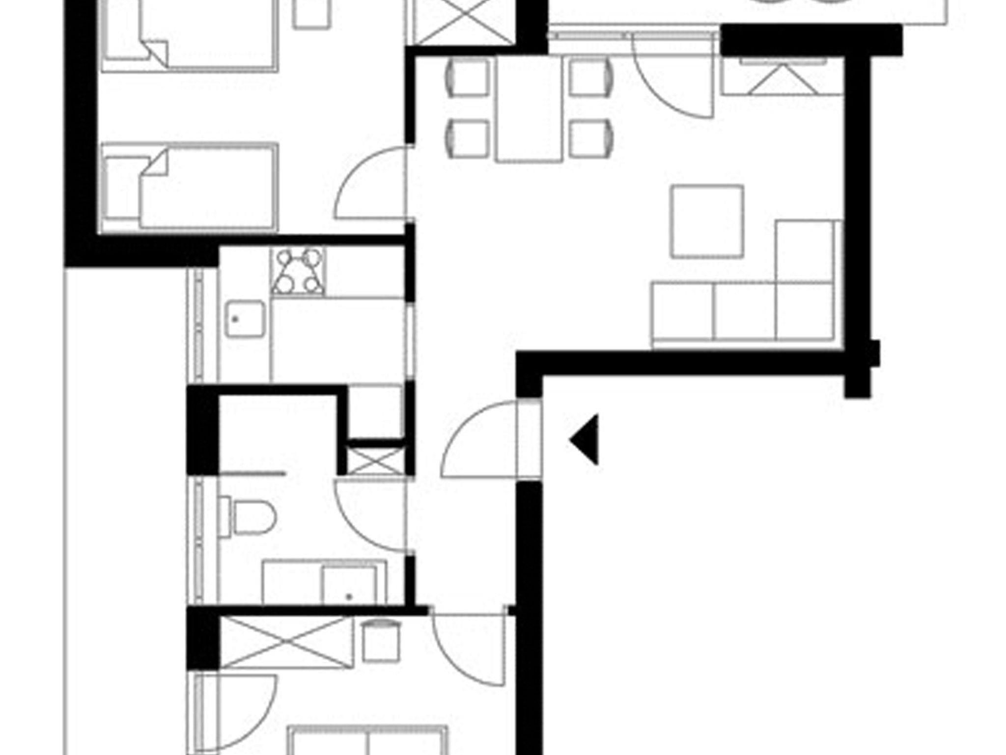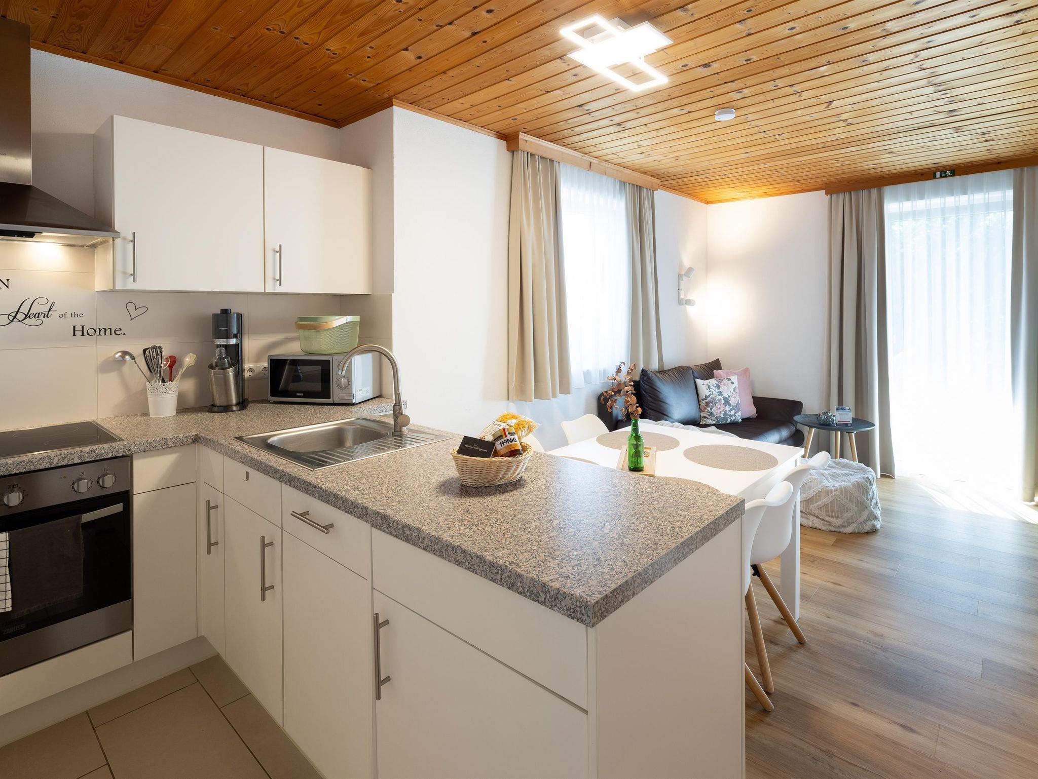 Die Wohnungen bestehen aus einem Vorraum, 1 Schalfzimmer mit Doppelbett und 1 Schalfzimmer mit 2 Einzelbetten, Badezimmer/WC,Fön, Kosmetikspiegel, Kosmetikartikel, einem Wohnzimmer mit ausziehbarer Couchgarnitur, Esstisch, 43'' SmartTV, W-LAN, komplett ausgestatteter Küche mit Mikrowelle, Geschirrspüler, Backofen, Kaffeemaschine, Sodastream uvm. sowie einen großen Balkon mit Terrassenmöbel und Fliegengitter. Bett- u. Tischwäsche, Geschirr- u. Handtücher werden bereitgestellt. Auf Wunsch Zustellbett (bis max. 14 Jahren), Kinderbett (Gitterbett) und Hochstuhl. Waschservice gegen Gebühr im Haus.