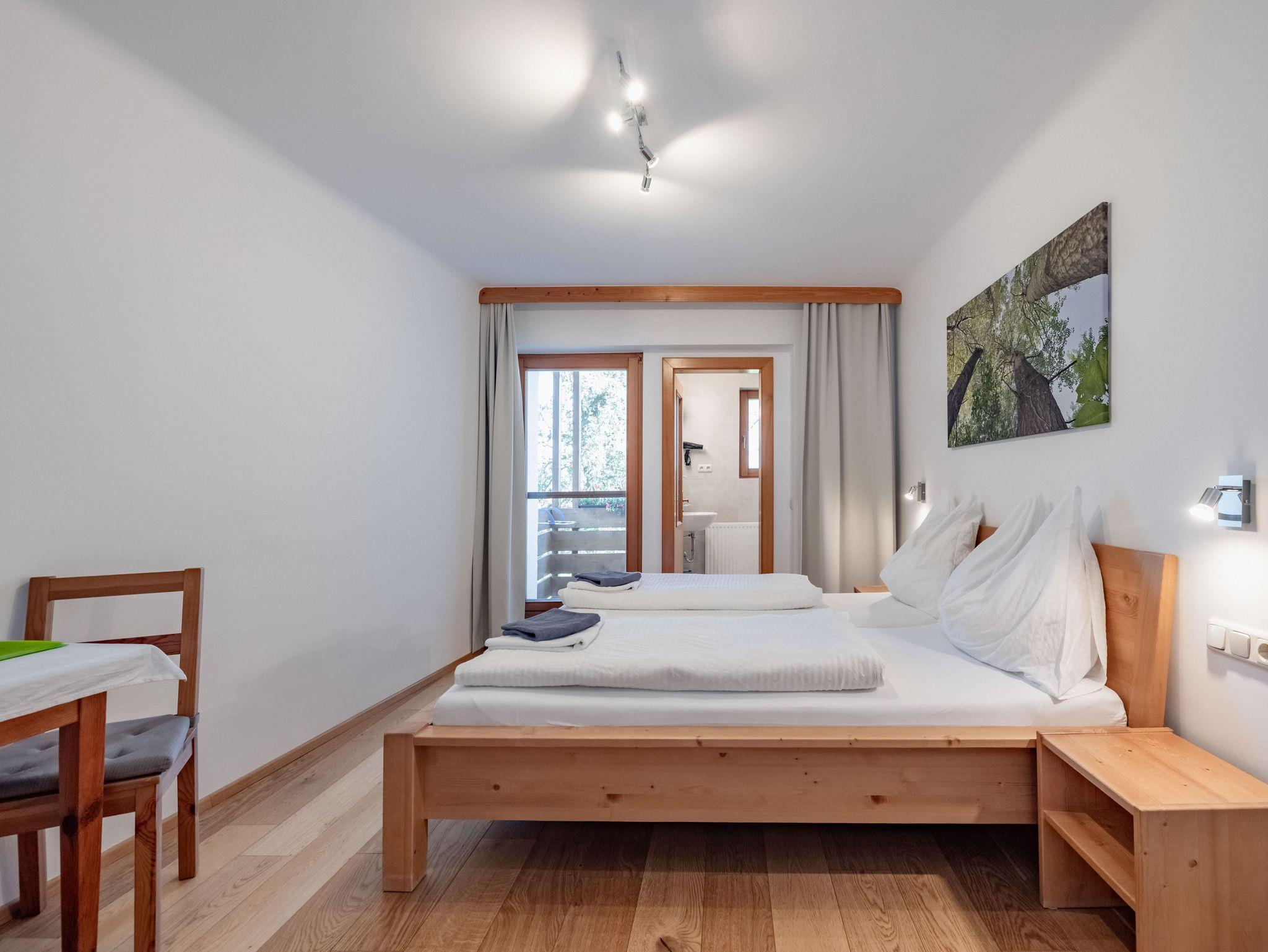 Gemütlich eingerichtetes Familienzimmer bestehend aus 2 Schlafräumen, DU/WC und Balkon nach Osten mit Ausblick in den Streuobstgarten.