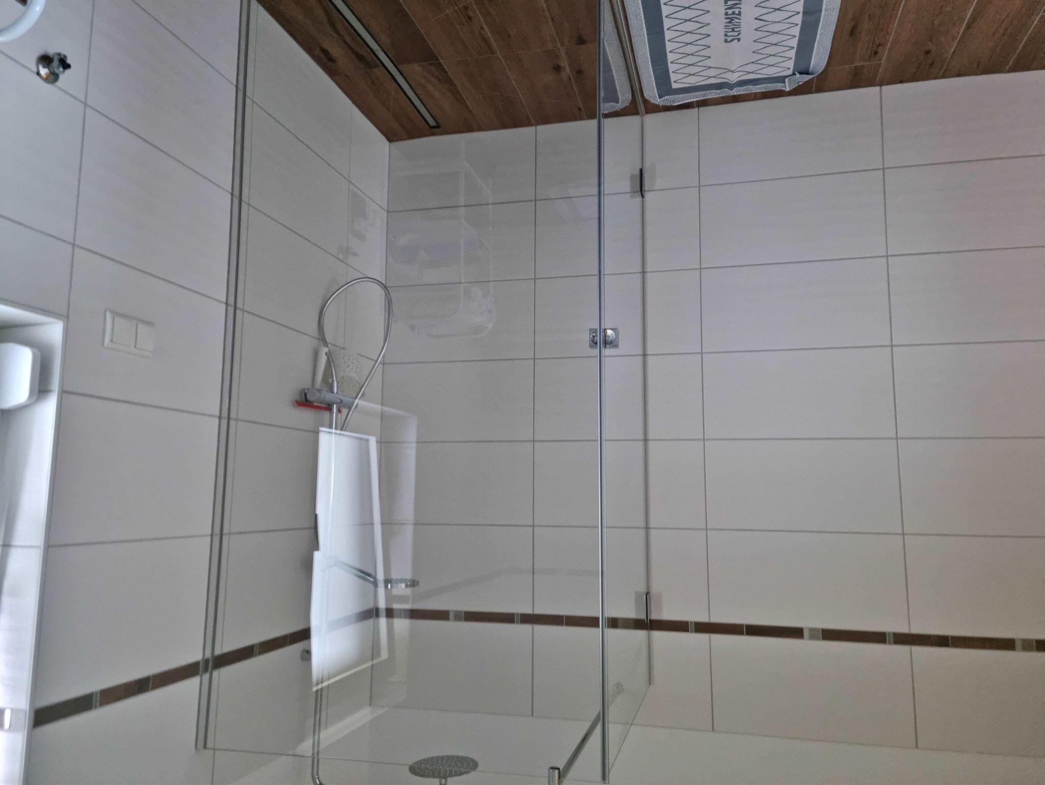 Weiters befindet sich im Bad eine Waschmaschine. Ein Wäscheständer, Bügelbrett und Bügeleisen sind vorhanden.