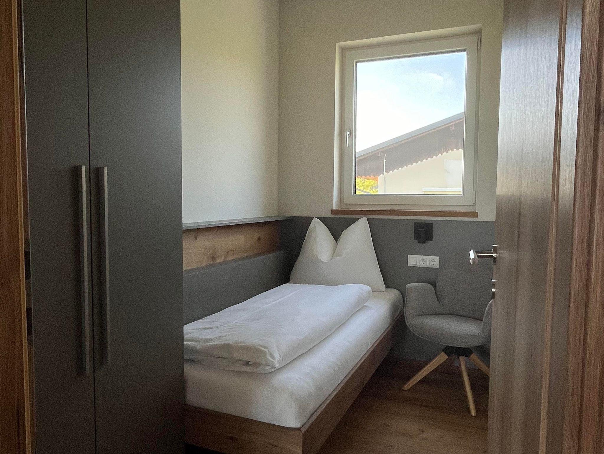 Das Appartement verfügt über zwei helle und komfortablen Doppelzimmer, ein gemütliches Einzelzimmer, über zwei Bäder und 2 WCs. Ein Highlight in diesem Appartement ist, neben dem Ausblick, die freistehende Badewanne im Badezimmer. Für die kleinen Gäste ist es möglich ein Gitterbett und einen Hochstuhl zu bekommen. Alle Fenster können mit elektrischer Jalousie abgedunkelt werden und weisen Insektengitter auf.