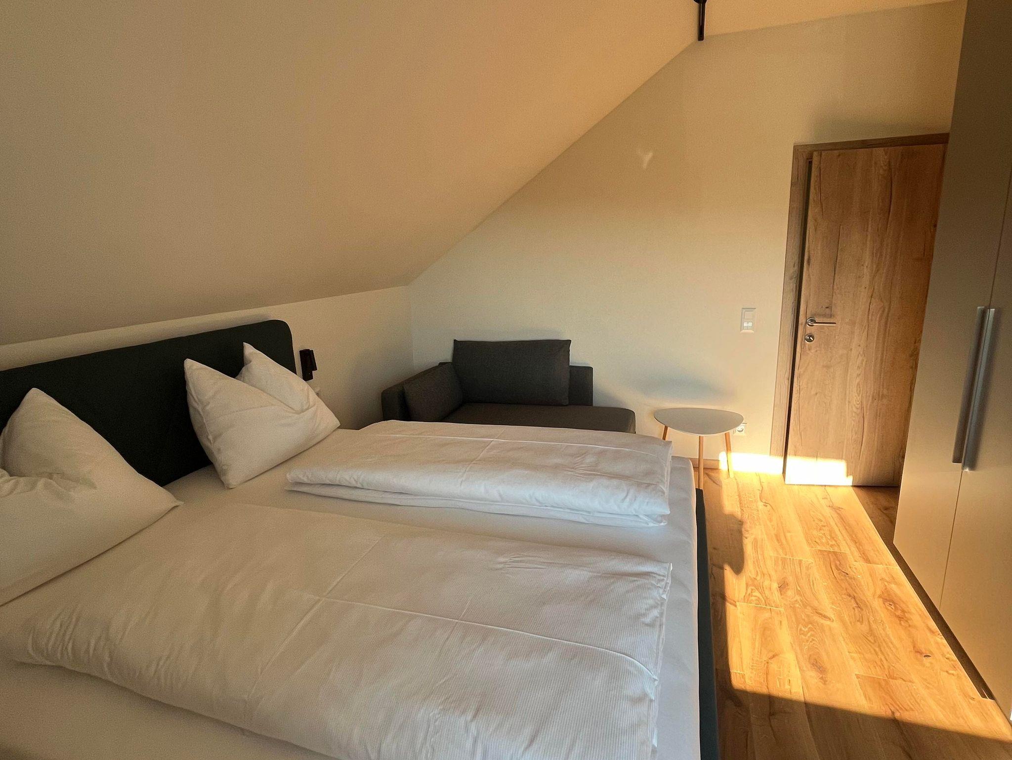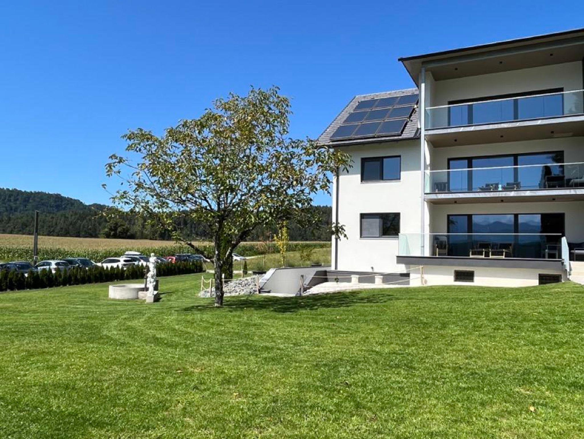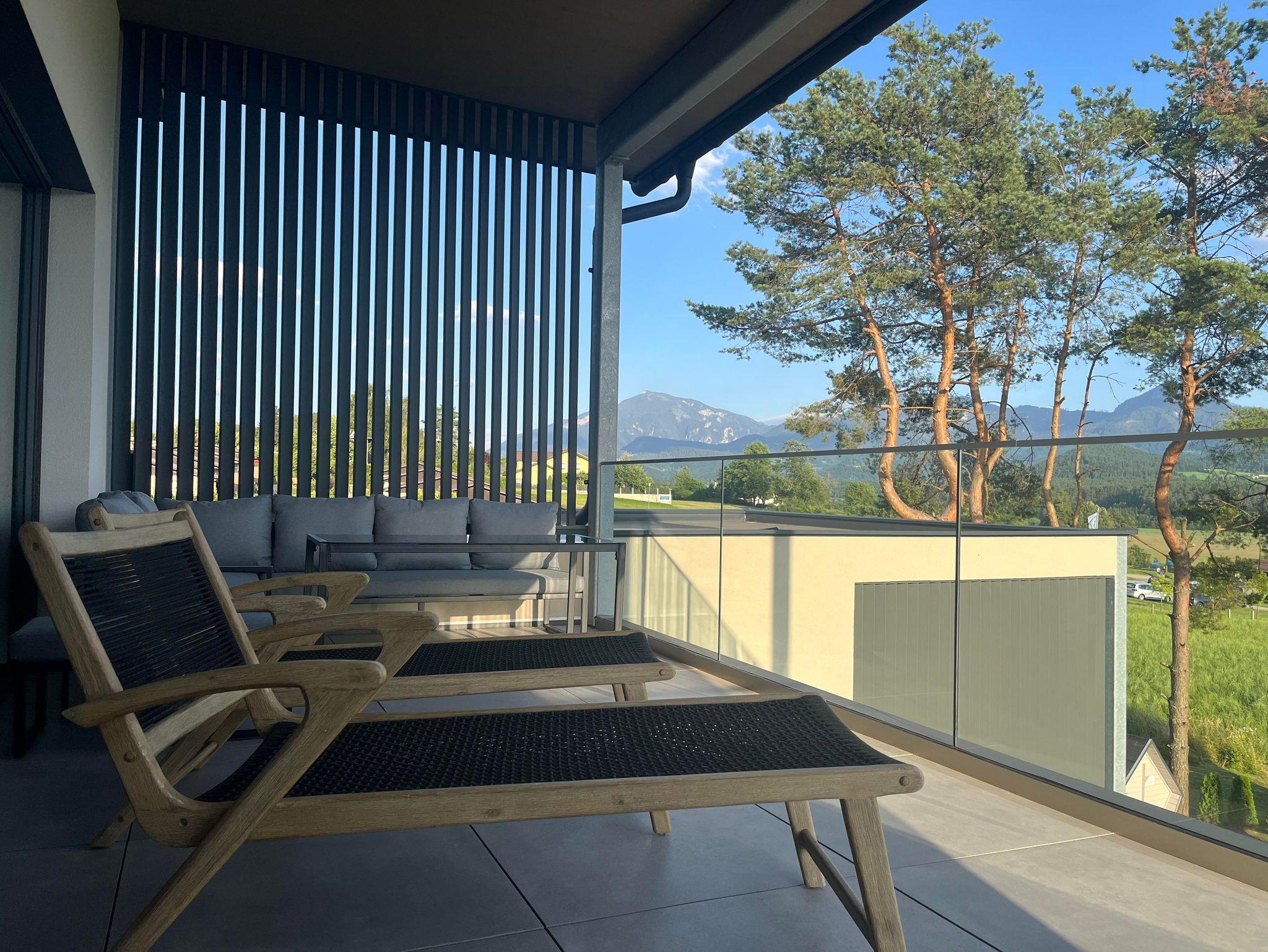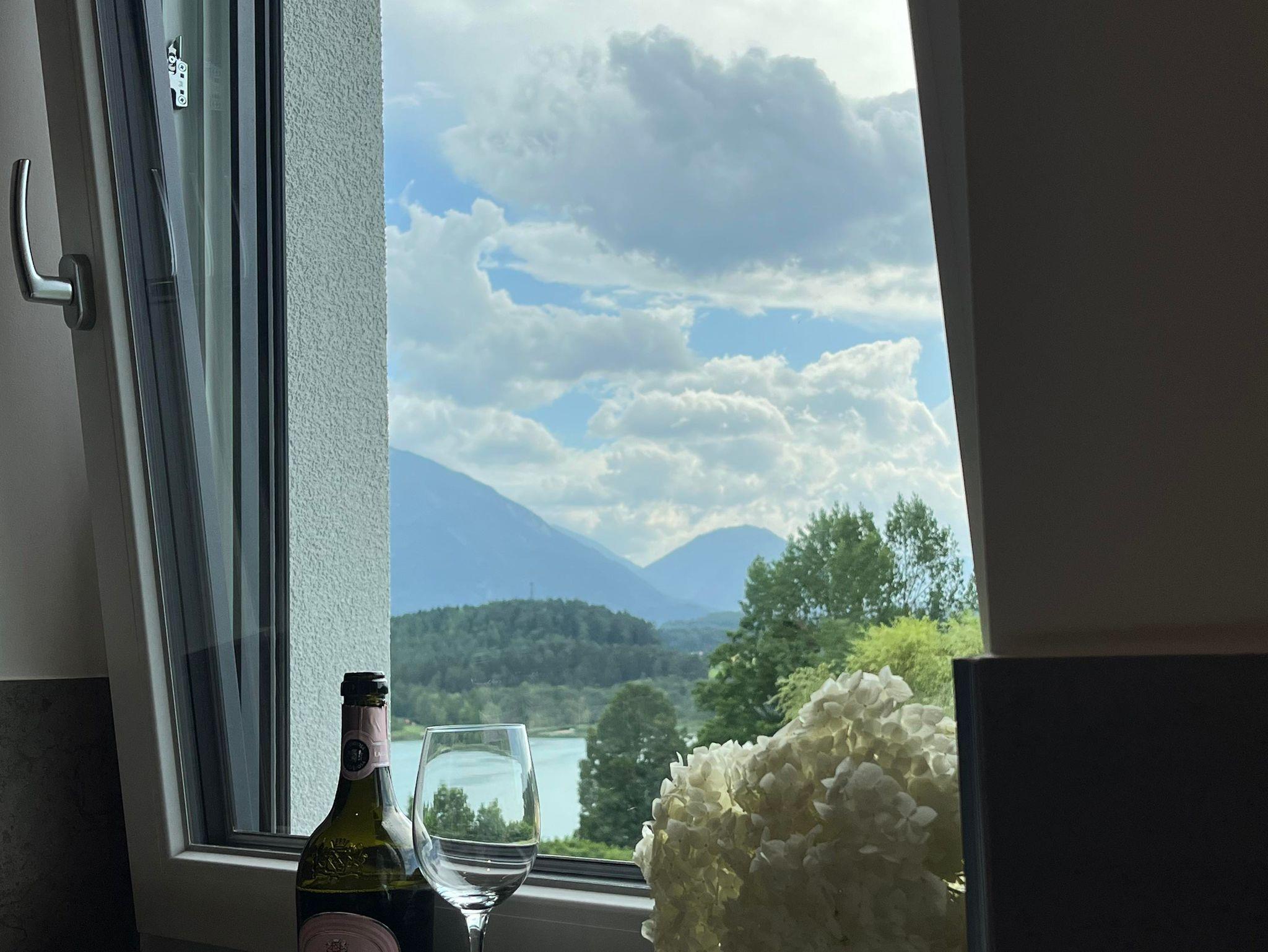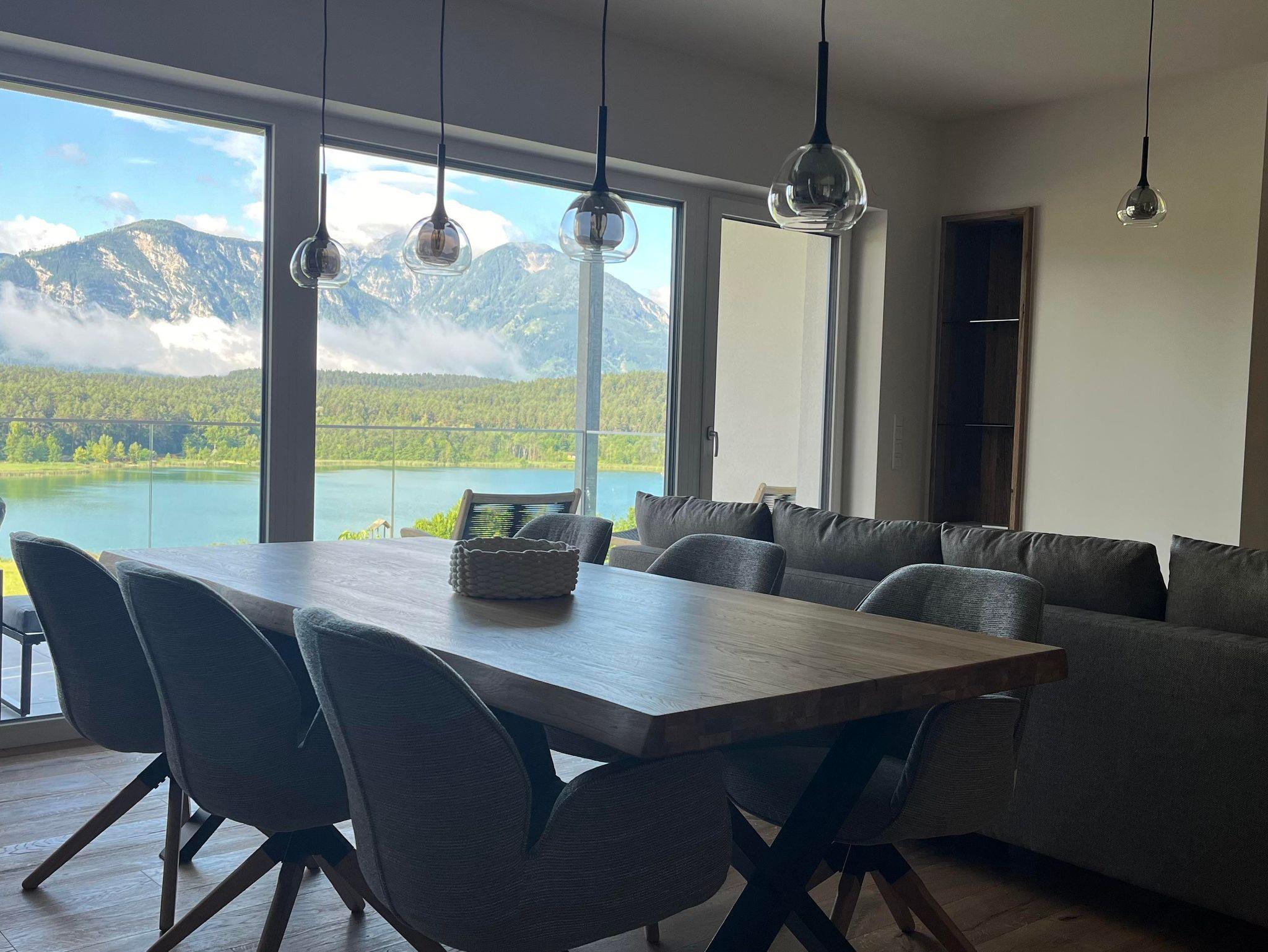 Das Penthouse-Appartement befindet sich im 2. Stock, ist 85 m² groß, verfügt über eine 20 m² große überdachte Terrasse mit Blick auf den See und ist das Highlight unseres Hauses. Die Terrasse ist mit Gartenmöbeln ausgestattet und lädt zum Verweilen, mit Aussicht auf die Karawanken, ein.