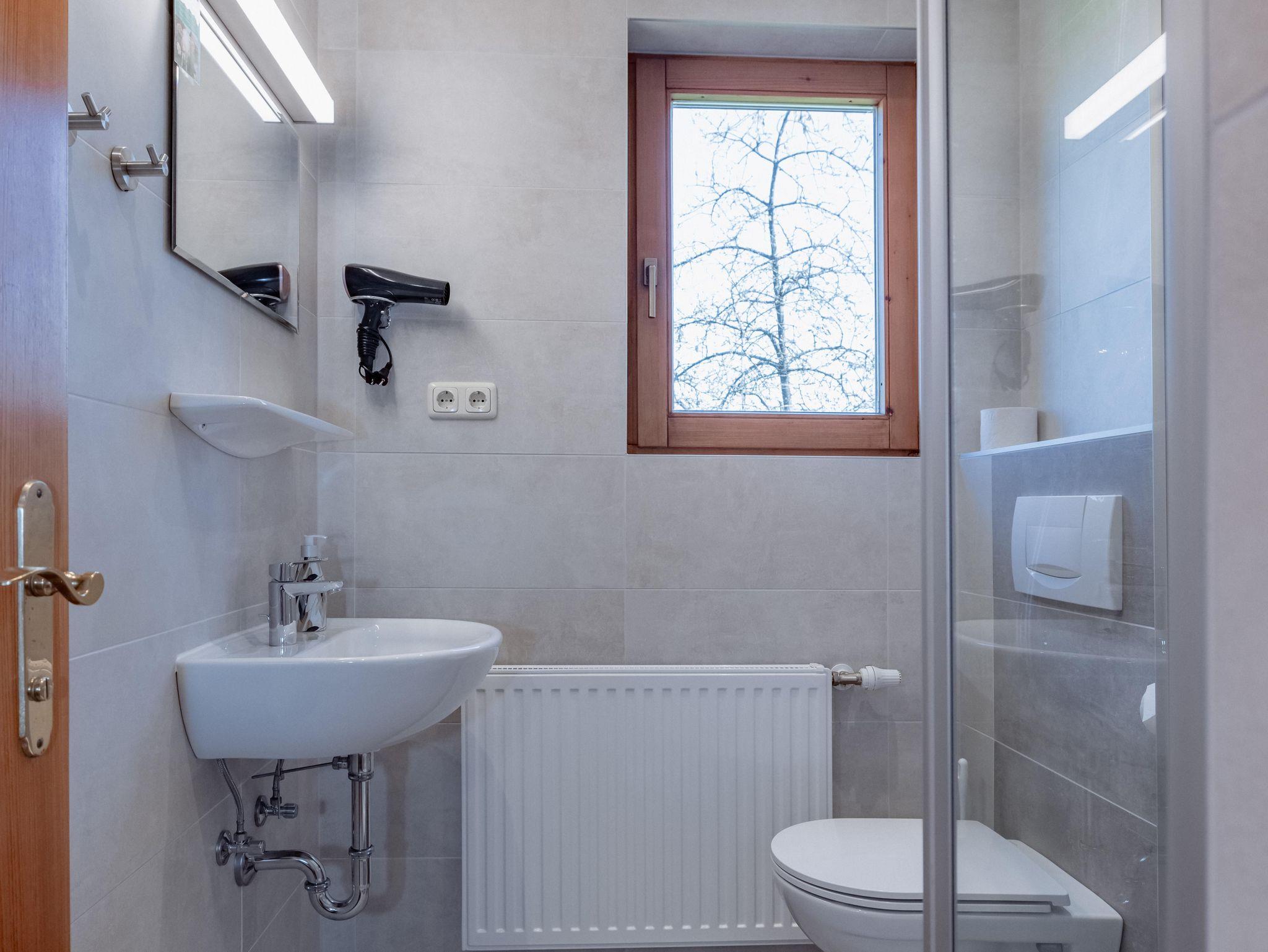 Gemütlich eingerichtetes Familienzimmer bestehend aus 2 Schlafräumen, DU/WC und Balkon nach Osten mit Ausblick in den Streuobstgarten.