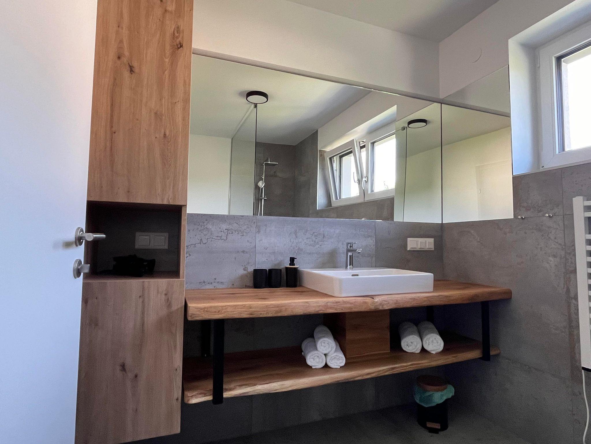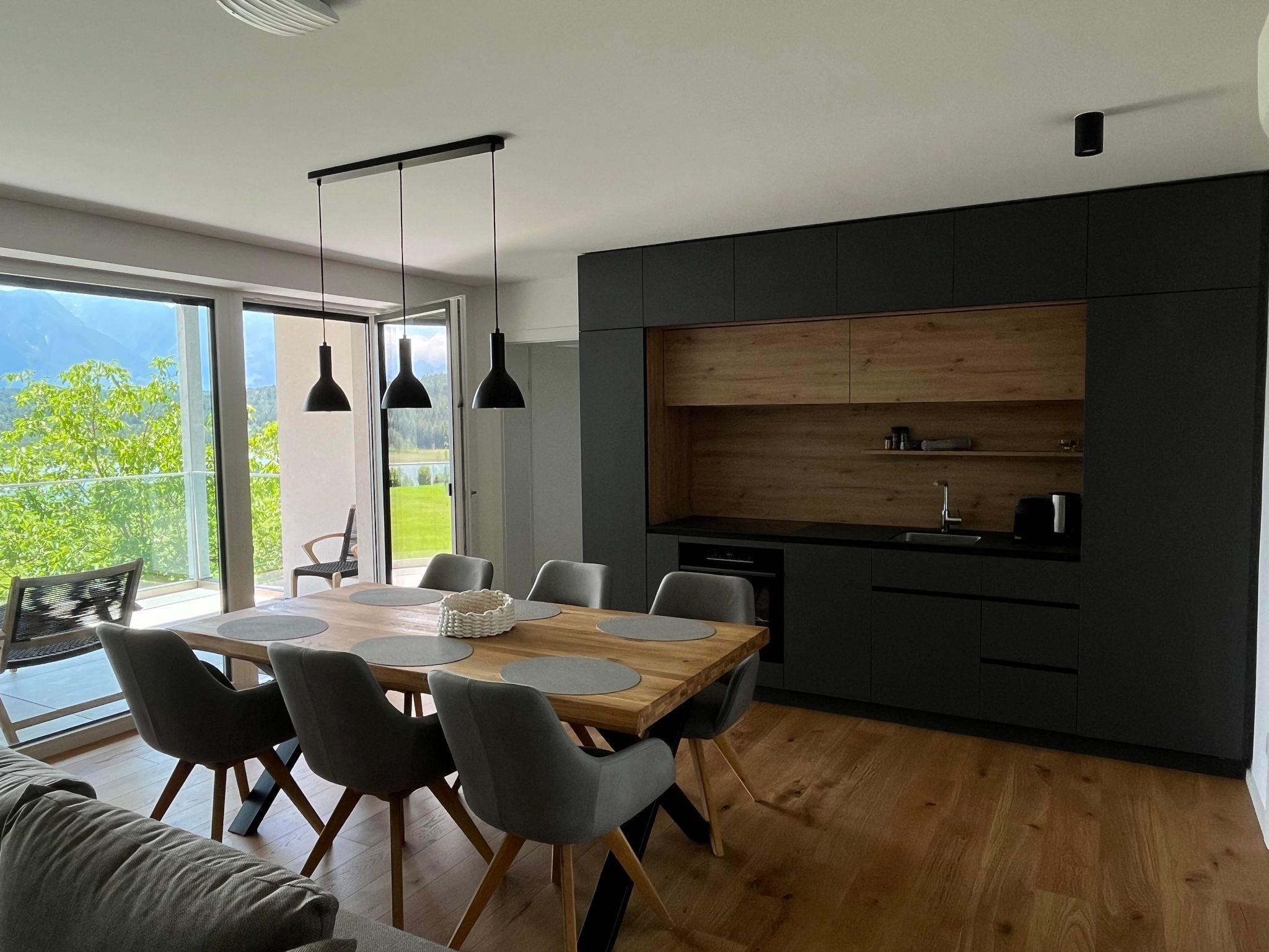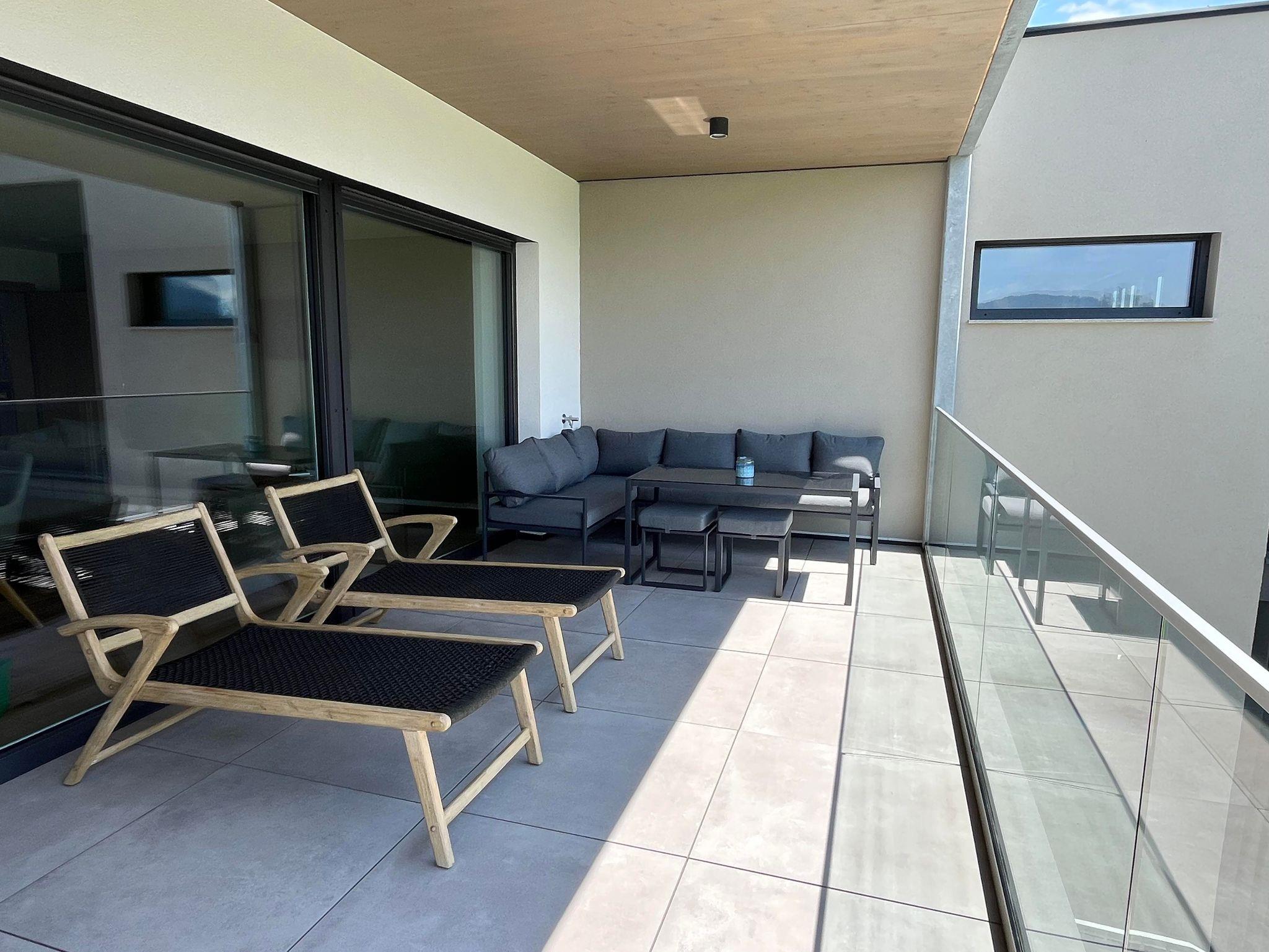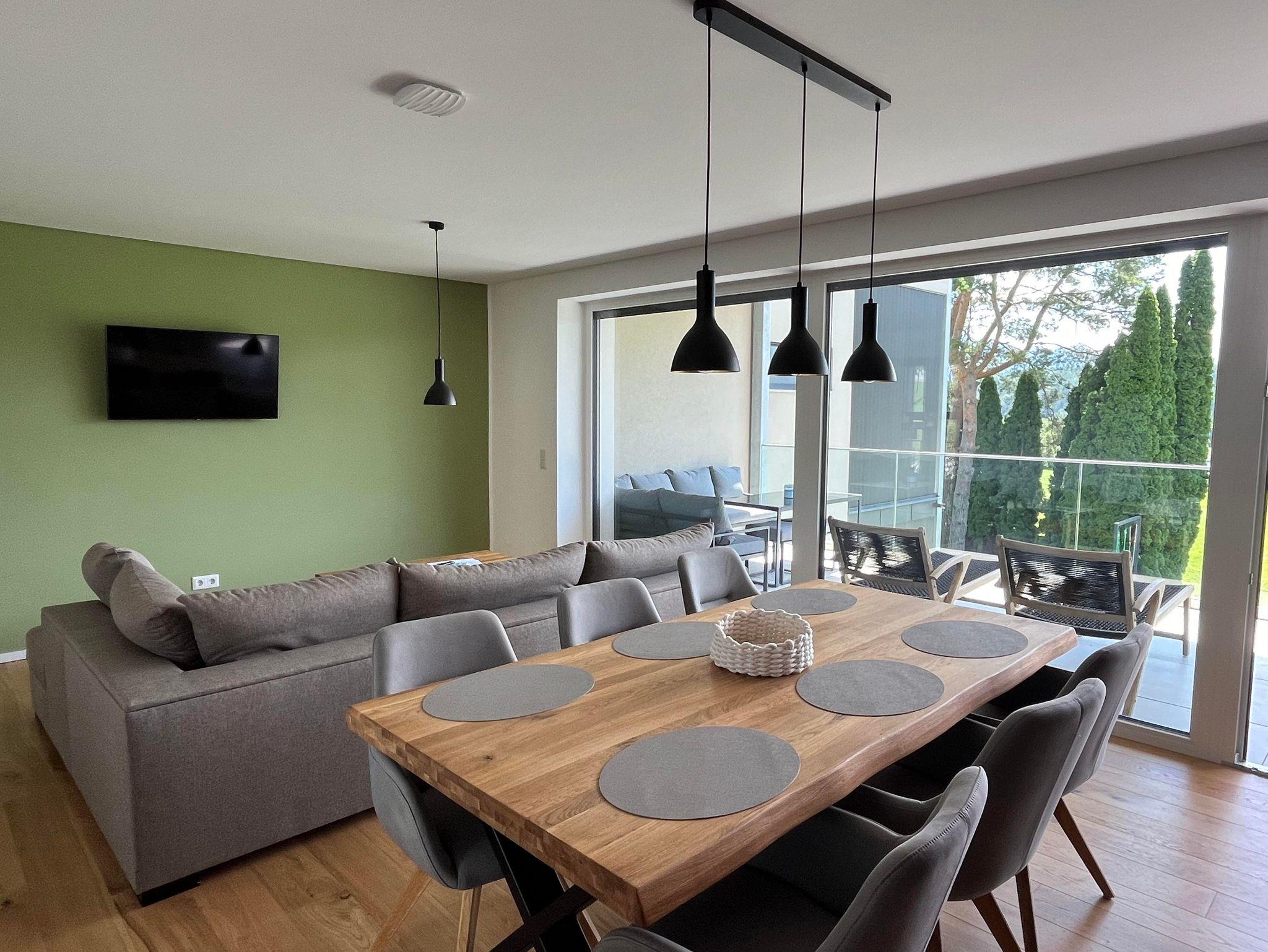 Das Appartement 3 befindet sich im 1. Stock, ist 82m2 groß und verfügt über eine 19m2 große überdachte Terrasse mit Blick auf den See. Die Terrasse ist mit Gartenmöbeln ausgestattet und lädt zum Verweilen, mit Aussicht auf die Karawanken, ein.