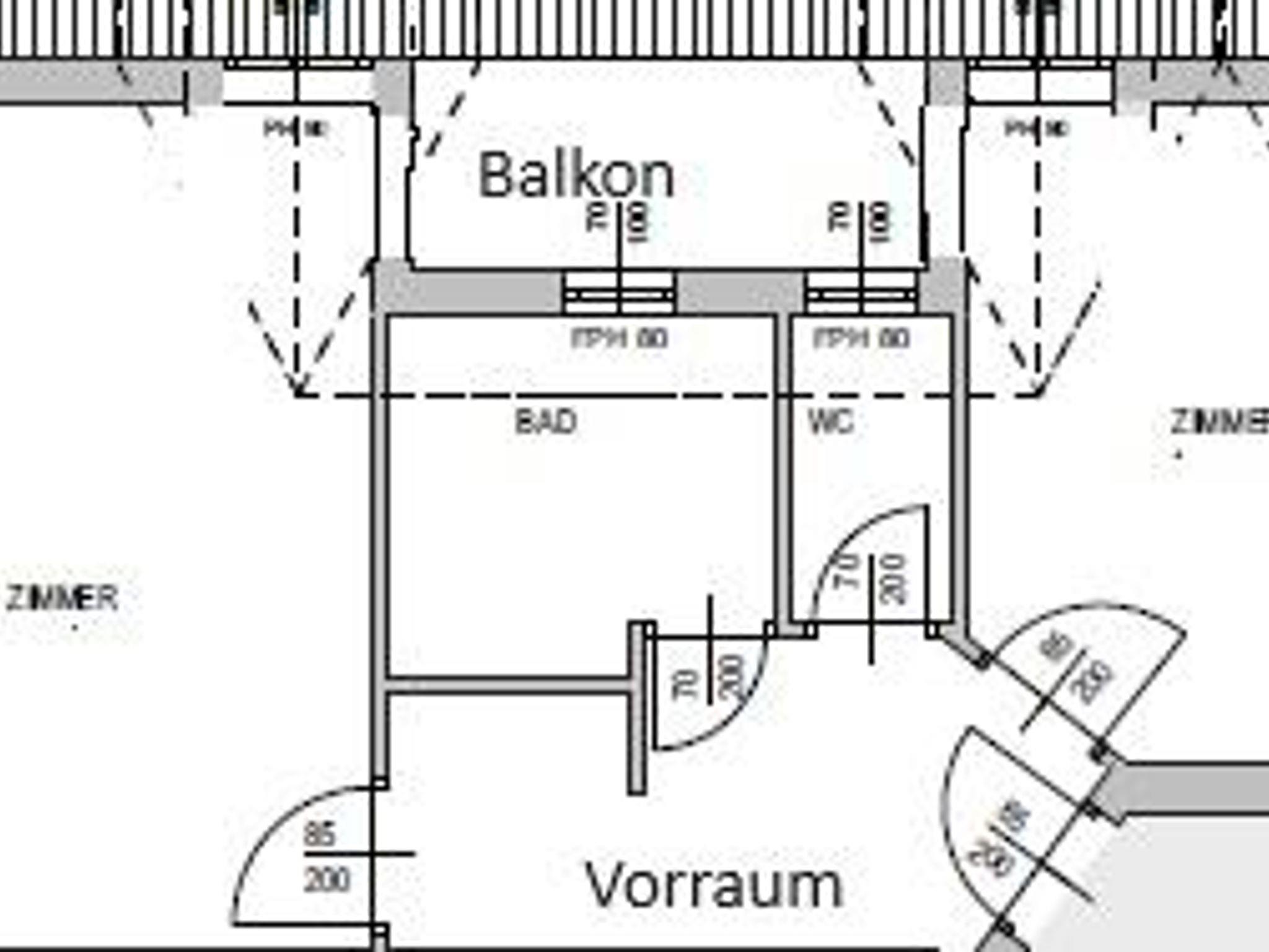 Ausstattung: 2 Doppelzimmer, Vorraum , DU/WC und Balkon.