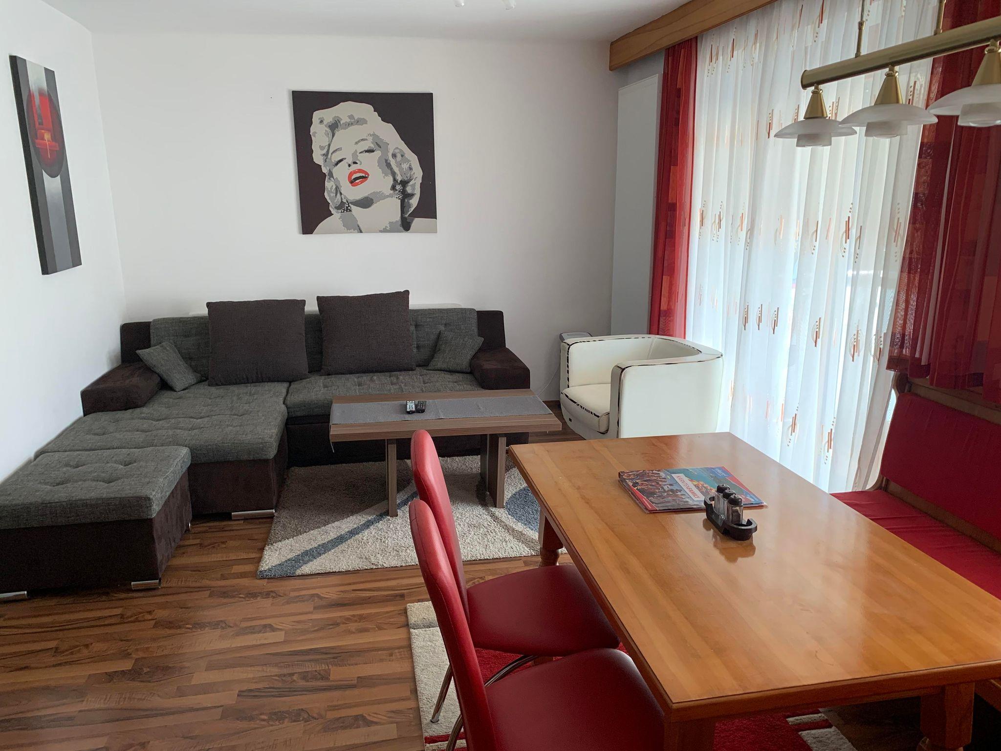 • Wohnzimmer mit Essecke, Ausziehcouch für 2 Personen und 1 Zustellbett