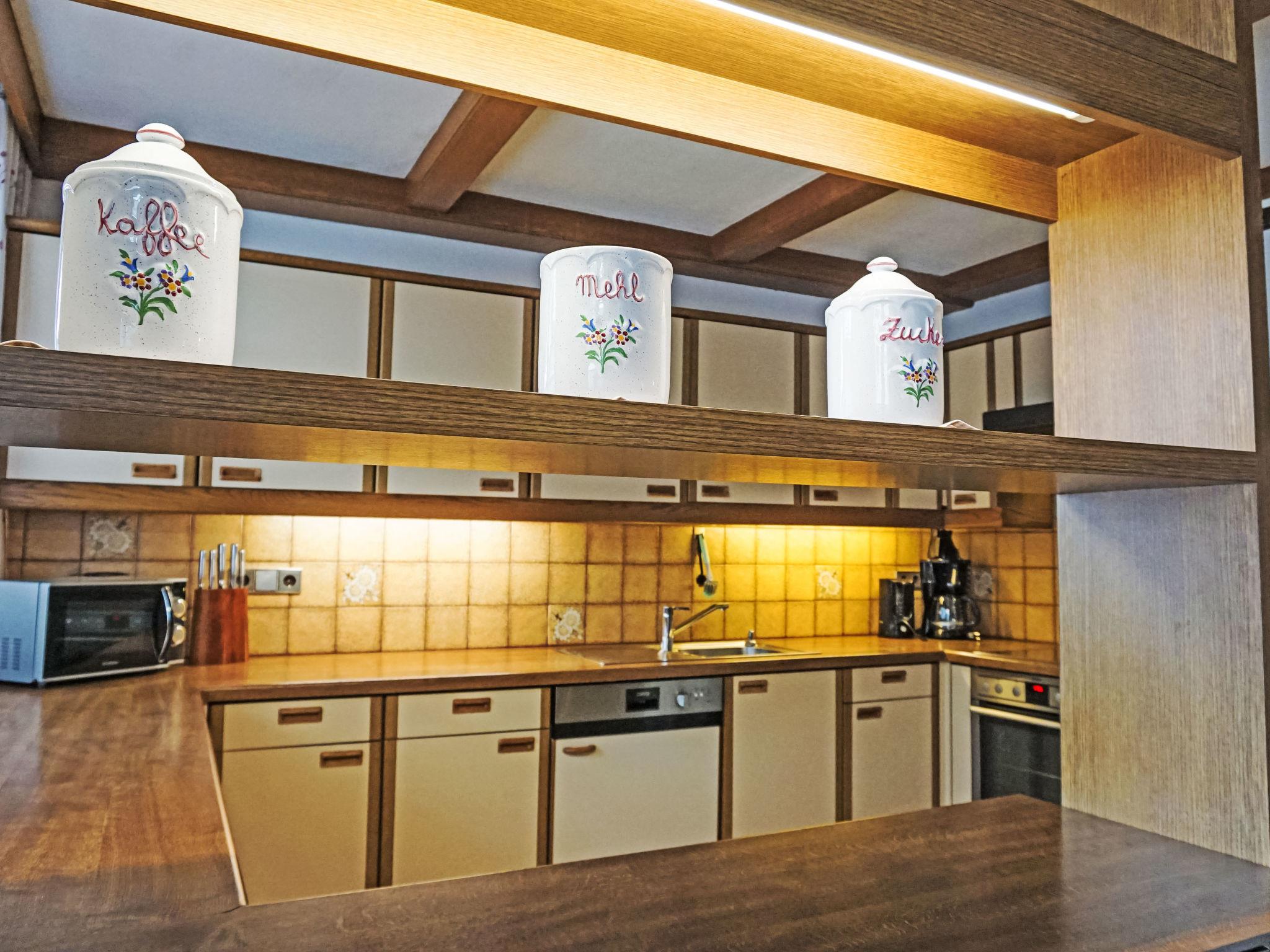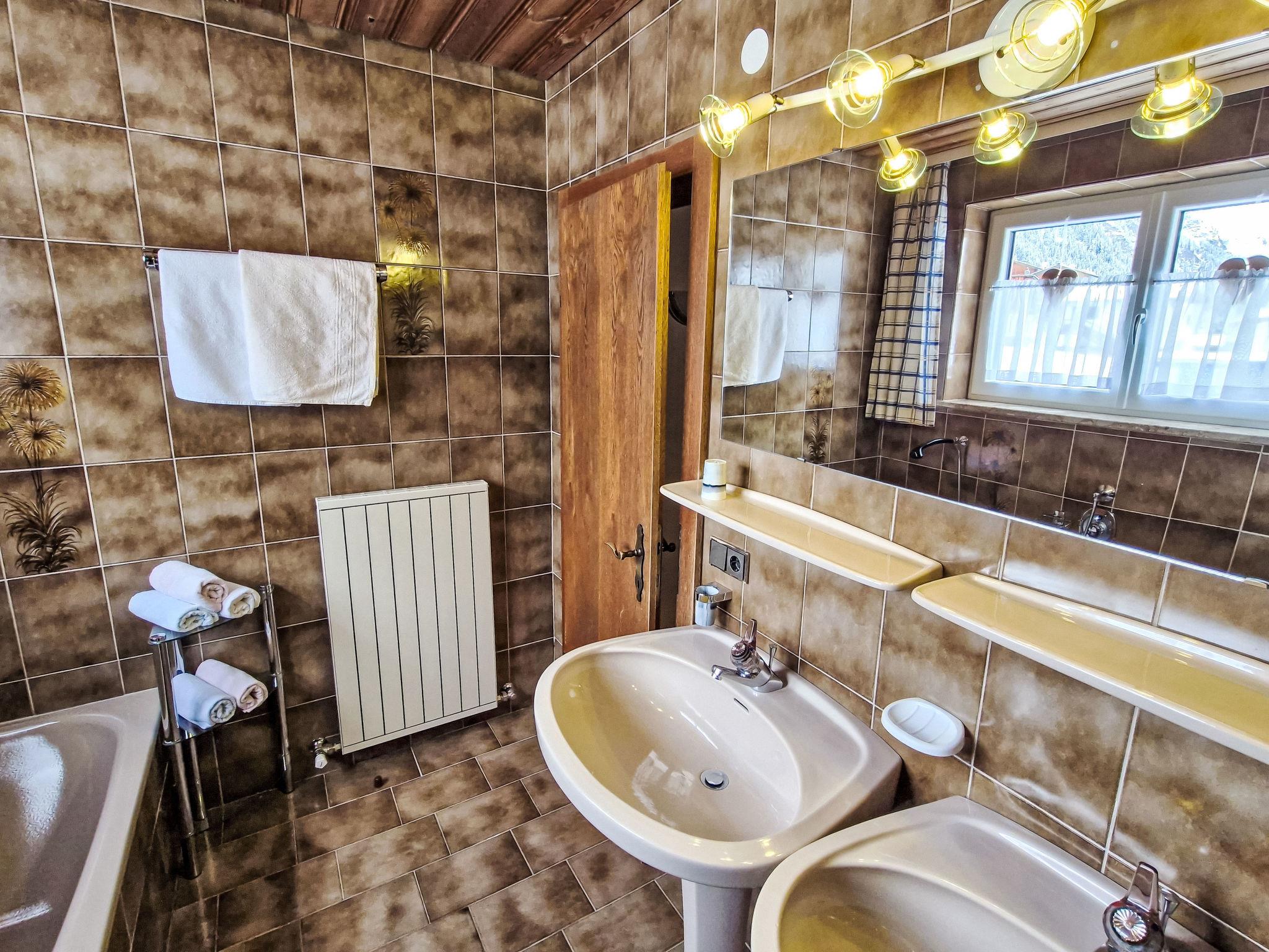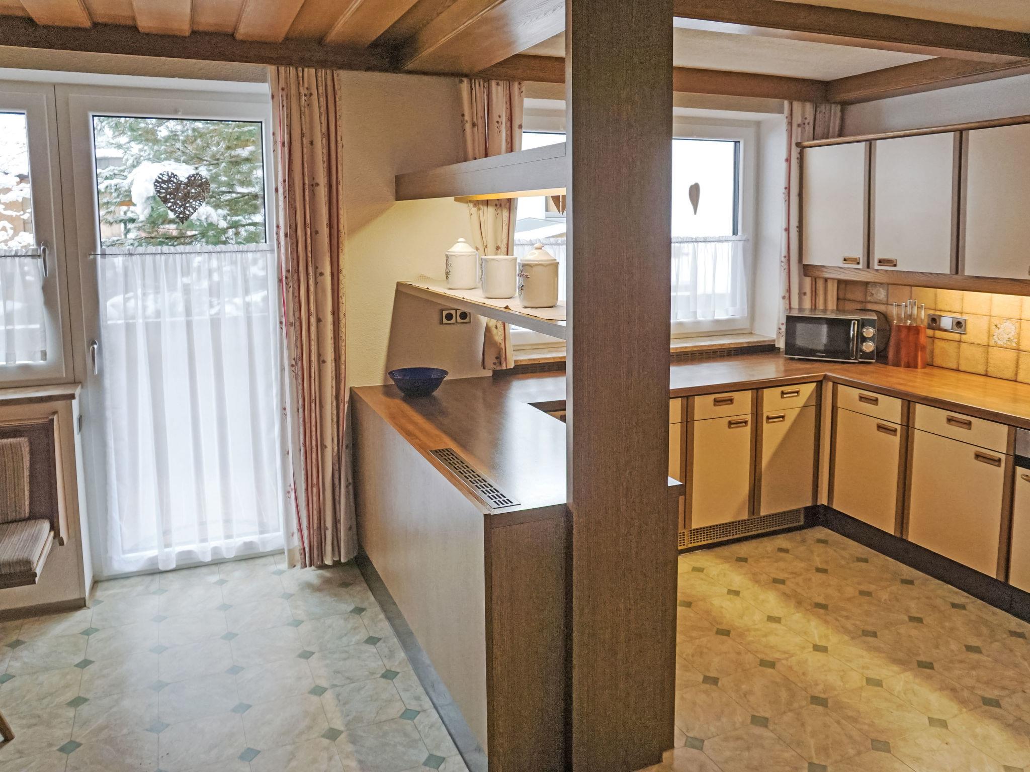 "Daheim – Wildspitz", 5-room apartment 130 m2, on the upper ground floor. Rustic and cosy furnishings: living/dining room with satellite TV (flat screen), radio. Exit to the terrace. 1 double bedroom. 2 rooms, each room with 1 bed and 1 double bed. Kitchen (oven, dishwasher, 4 ceramic glass hob hotplates, toaster, kettle, microwave, electric coffee machine) with dining nook. Bath/shower, sep. WC. Terrace. Terrace furniture. Facilities: children's high chair, baby cot. Internet (WiFi, free). Please note: non-smokers only. Maximum 1 pet/ dog allowed.