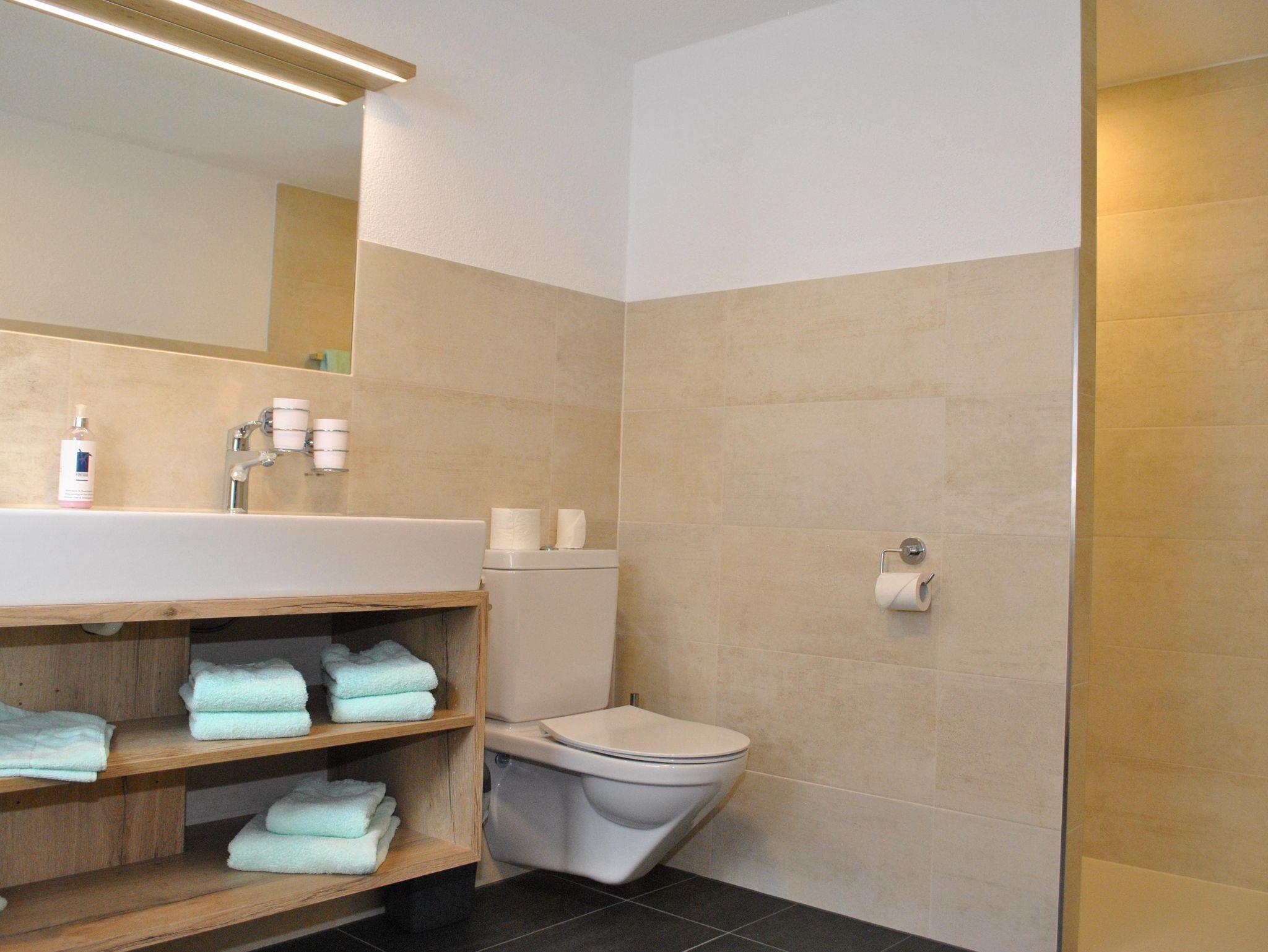 Großzügiges Familienappartement mit 75 m², für 3- 6 Personen, aufgeteilt auf vier Räume mit großem Eingangsbereich, 2 Schlafzimmer mit Doppelbett + Extrabett , Kabel TV und Balkon, Badezimmer mit Doppelwaschbecken Du/WC/Fön, extra WC am Gang, komplett eingerichtete Küche mit Geschirrspüler, gemütlicher Wohnbereich