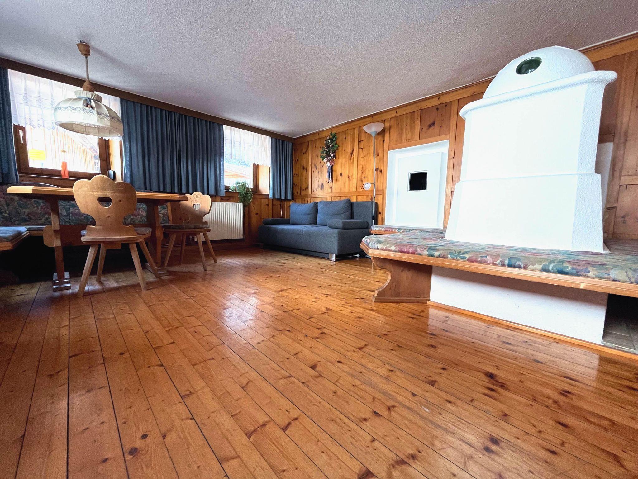 1 große Tiroler Stube mit Sat/TV, Sitzecke, Kachelofen (NUR im Winter - wird bei einem Wochenaufenthalt 2x wöchentlich für sie warmgemacht), Doppelcouch
