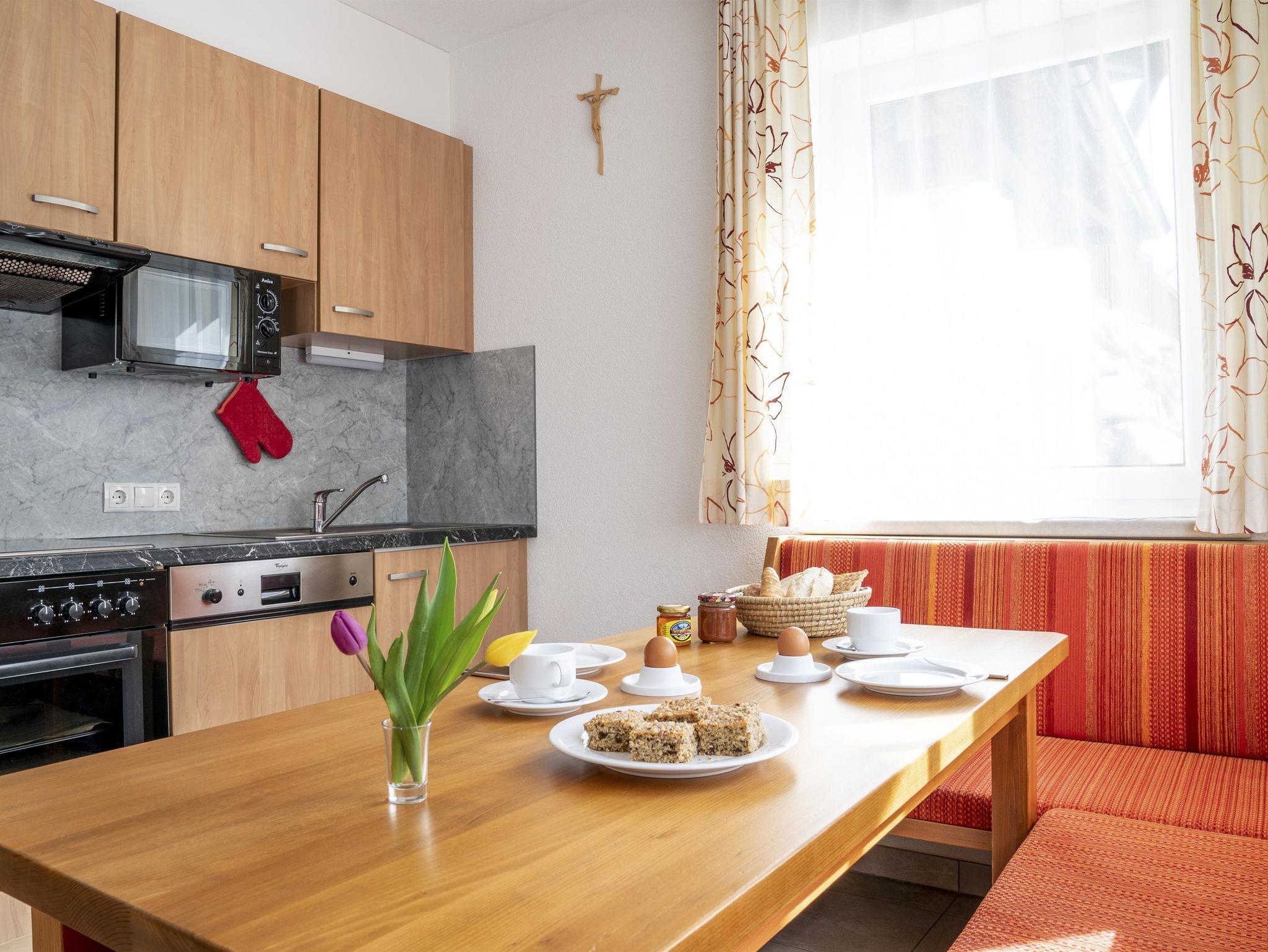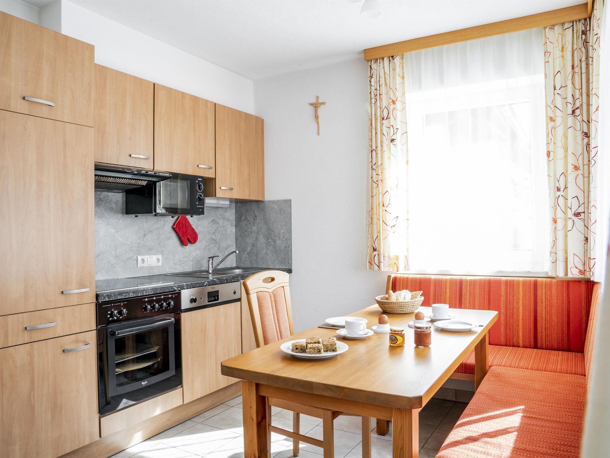 Großzügig und mit viel Liebe zum Detail eingerichtete Ferienwohnung mit schöner Sonnenterrasse bestehend aus komfortablen Schlafraum, Badezimmer mit Dusche, Hand- und Badetücher, Haarfön, Kosmetikspiegel, separates WC, bestens ausgestattete Küche mit E-Herd und Backrohr, Mikrowelle, Kühlschrank mit Gefrierfach, Kaffeemaschine, Wasserkocher, Geschirrspülmaschine und helle, freundliche Essecke mit herrlichem Blick auf die Pitztaler Bergwelt. Gemütlicher Wohnbereich mit Kuschelecke, Kabel-TV und WLAN. Preis exklusive Endreinigung!
