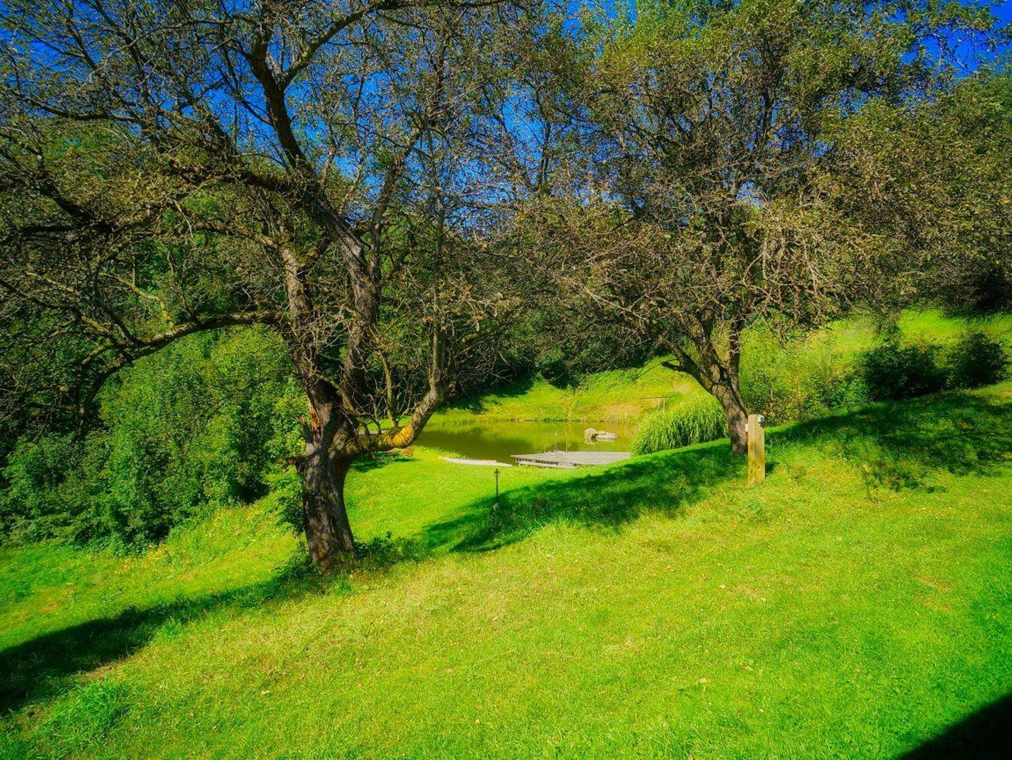 2 Holzblockhäuser neben privatem Badeteich für bis zu 8 Personen.