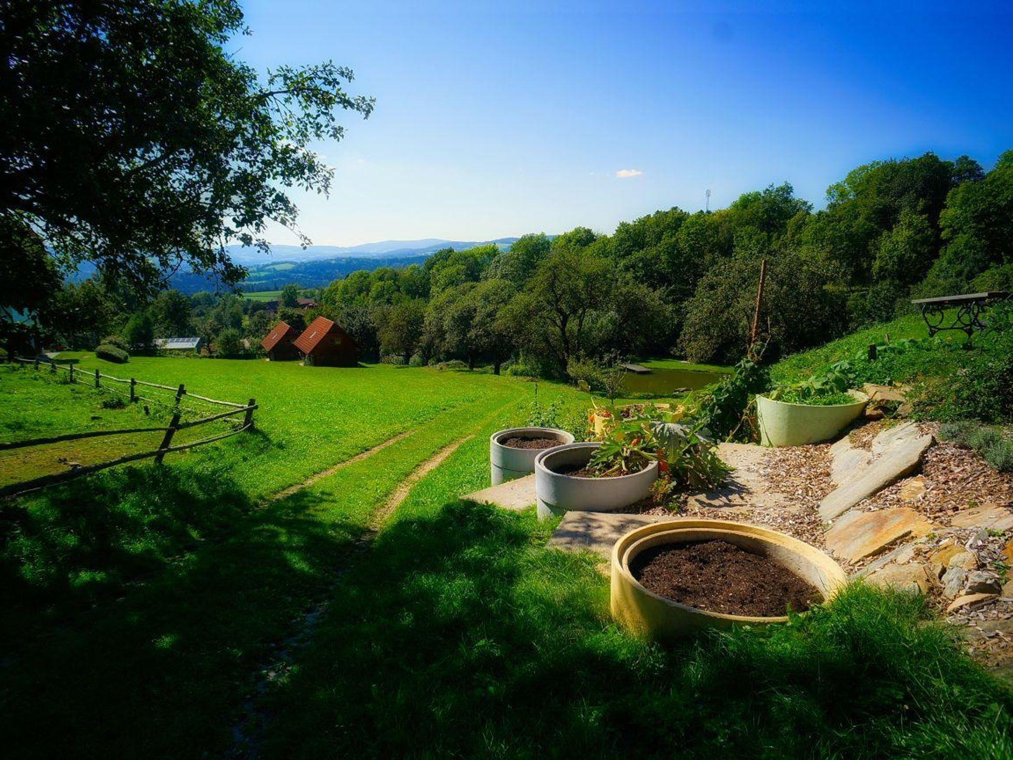 Sonnige, ruhige Lage, schöne Aussicht, neben Sport- und Tennisplatz, eigene Alm, Fisch- und Badeteich, Grill- und Campingmöglichkeit, Tiere zum Streicheln.