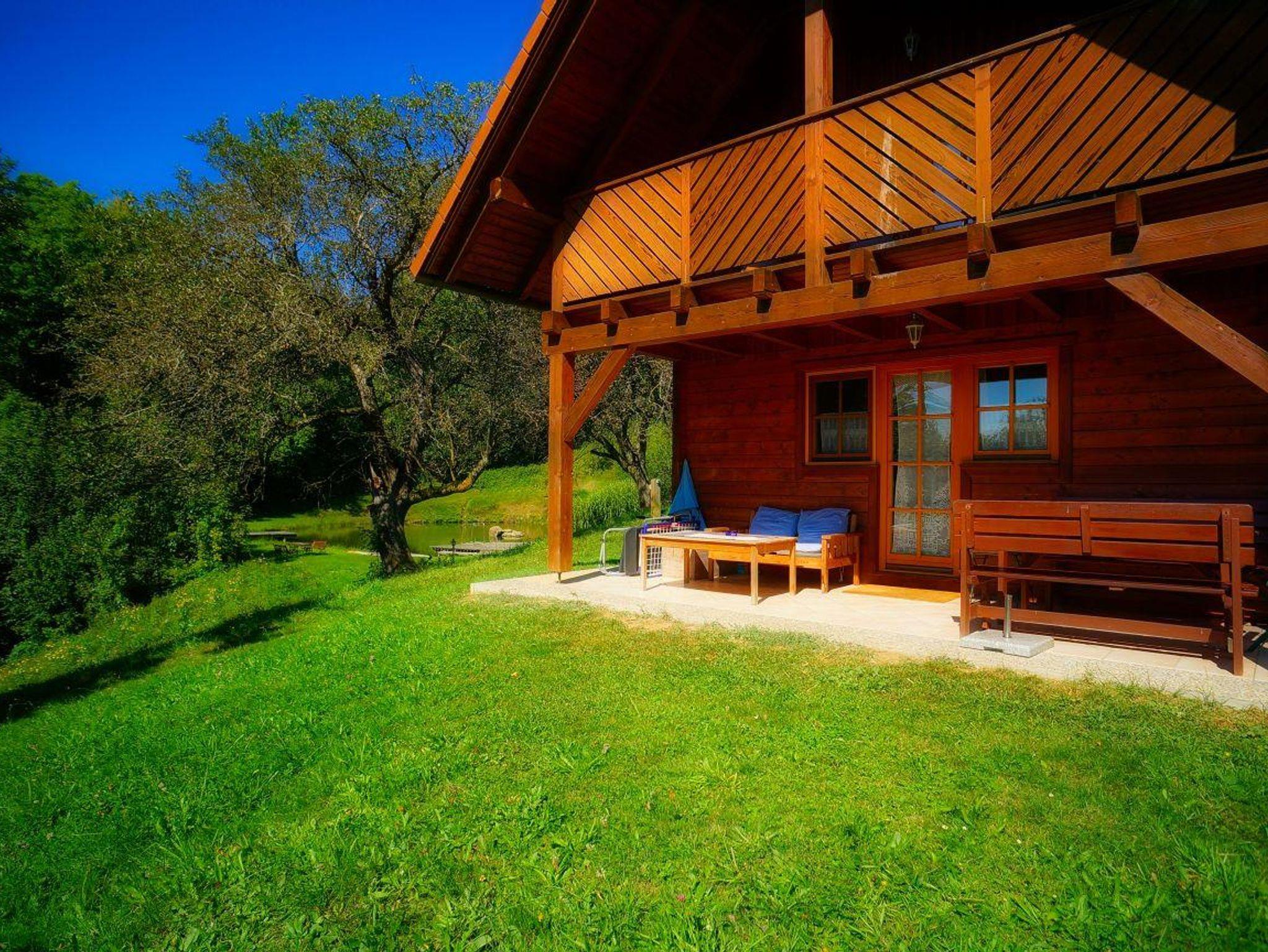 Blockhaus in ruhiger Lage gelegen, neben Badeteich, schöne Aussicht