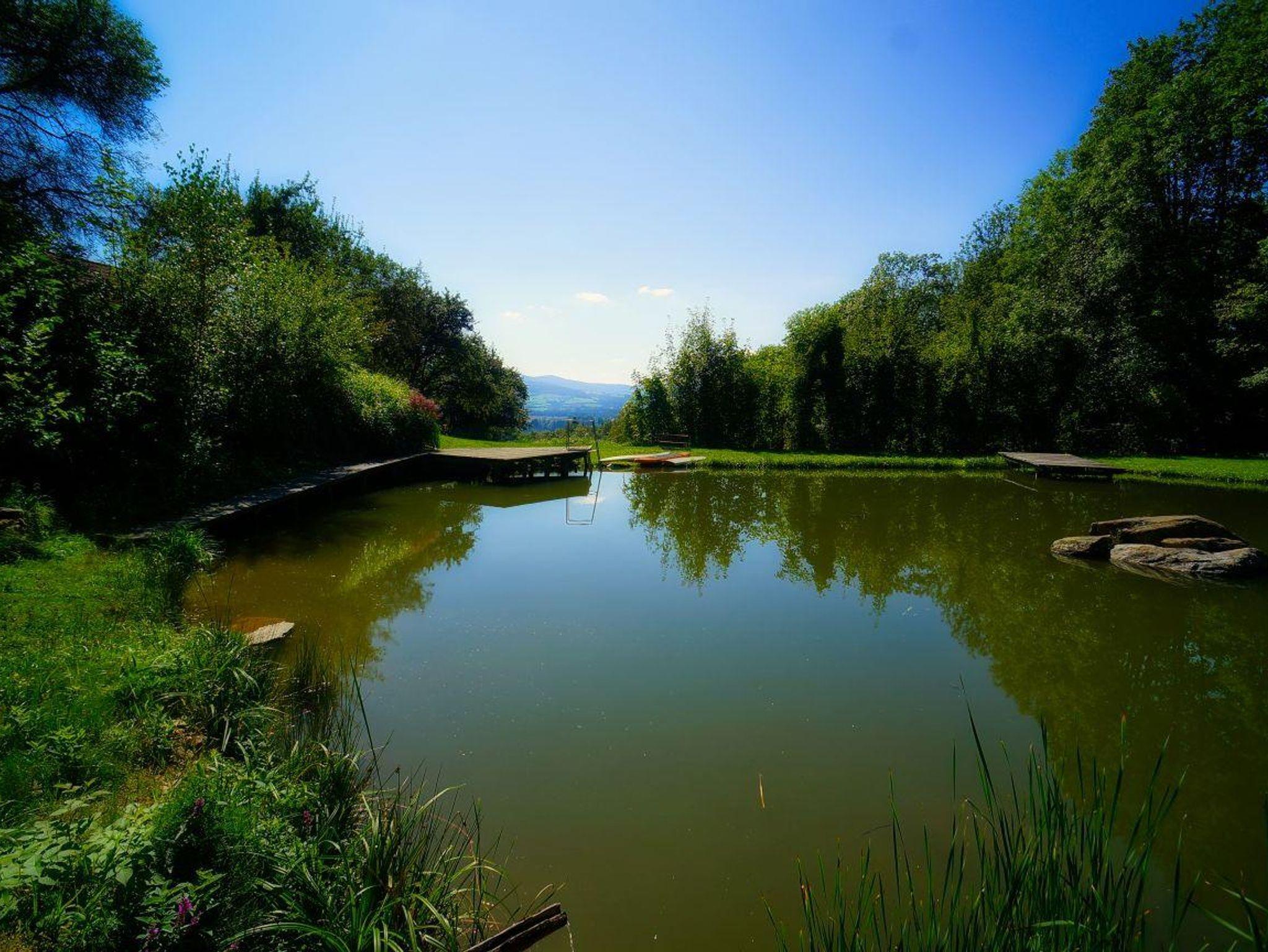 Sonnige, ruhige Lage, schöne Aussicht, neben Sport- und Tennisplatz, eigene Alm, Fisch- und Badeteich, Grill- und Campingmöglichkeit, Tiere zum Streicheln.