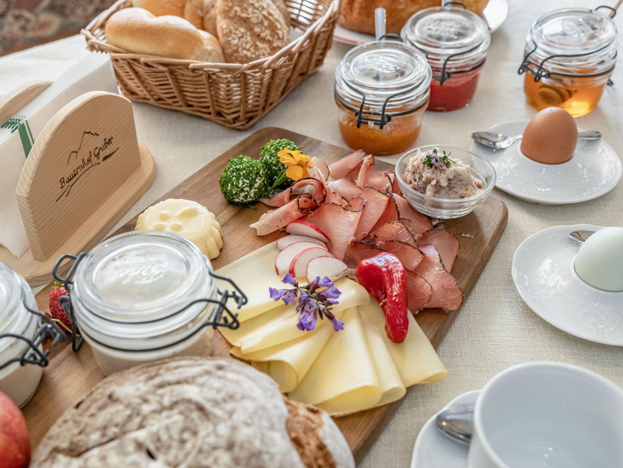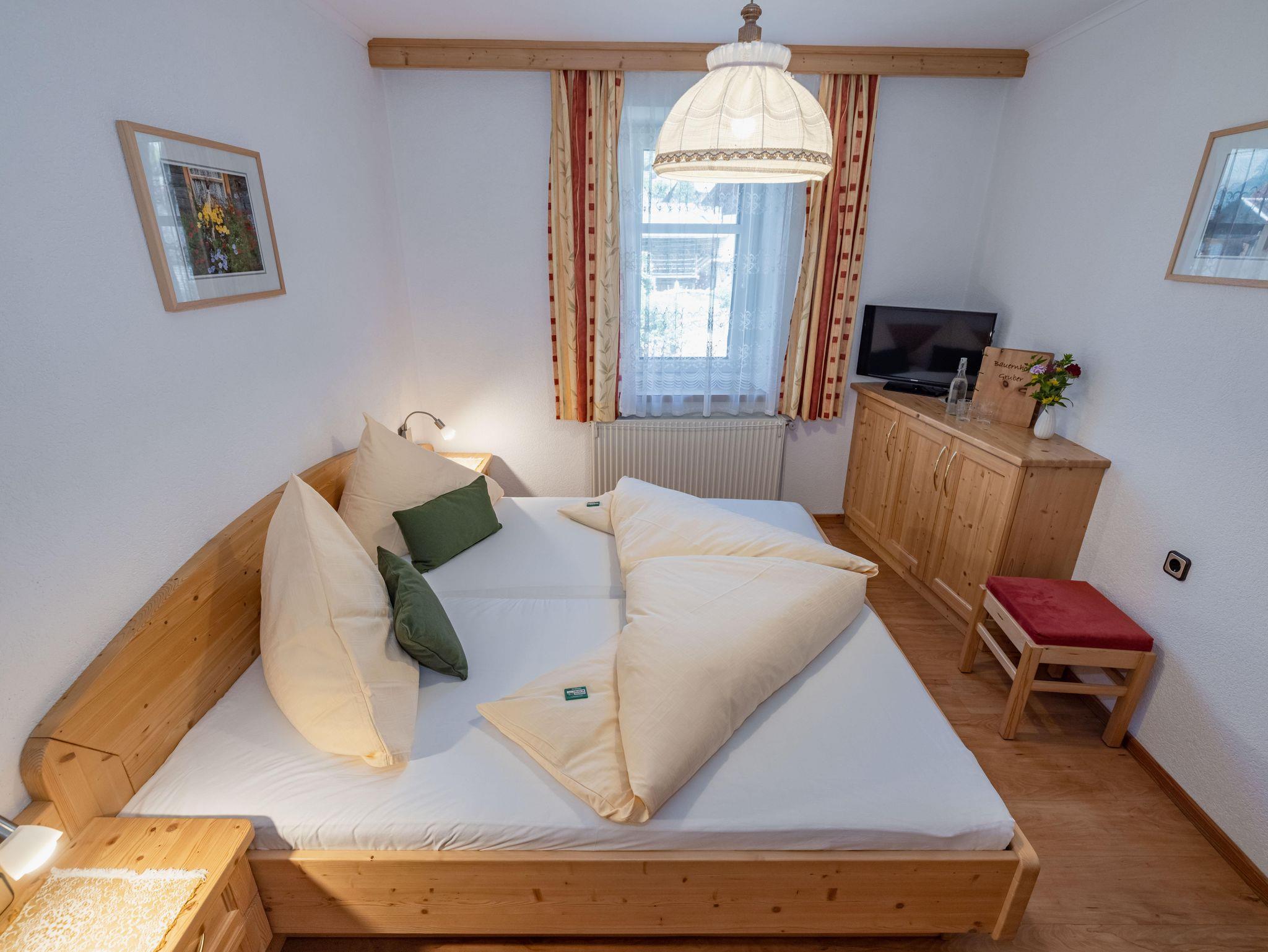 Gemütlich und liebevoll eingerichtete Doppelbettzimmern. Sie sind 20 m2 groß und mit Du/ WC, Sat/TV, Wlan, Kühlschrank und Südbalkon ausgestattet. Auch für ein Gitter - oder Zustellbett wäre noch ausreichend Platz vorhanden. Kraftvolles Frühstücksbuffet mit zum Teil hofeigenen Produkten.