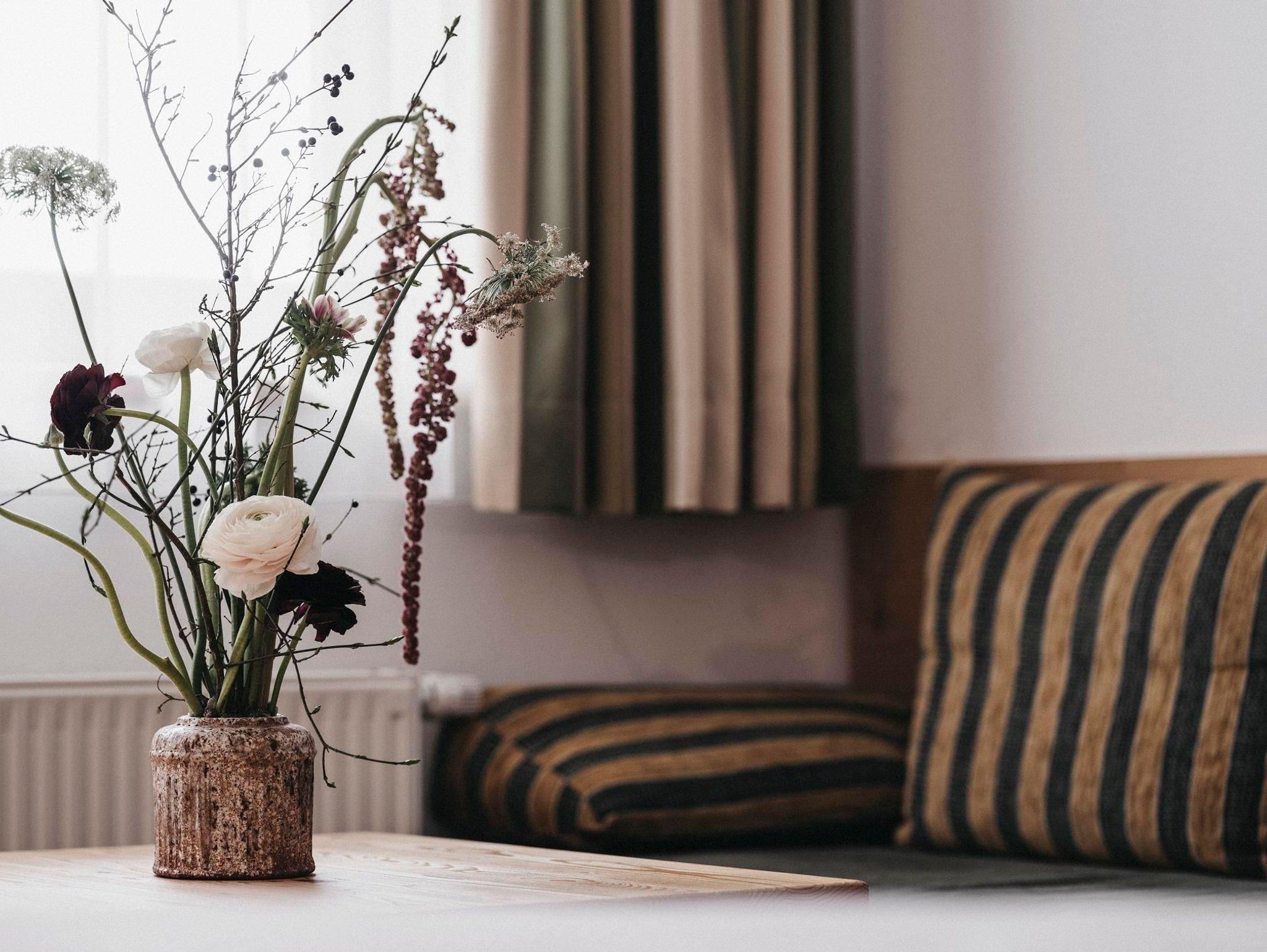 Almwellness-Zimmer (Nichtraucher): 35 m²+6 m² Balkon für 2 Personen, Sitzecke, Bad und Dusche, Doppelwaschbecken, getrenntes WC mit Bidet, Haarfön, beleuchteter Schminkspiegel, Sat-Tv, Radio-Tv, Zimmersafe, Telefon, Stromfreischaltung, Naturholzmöbel