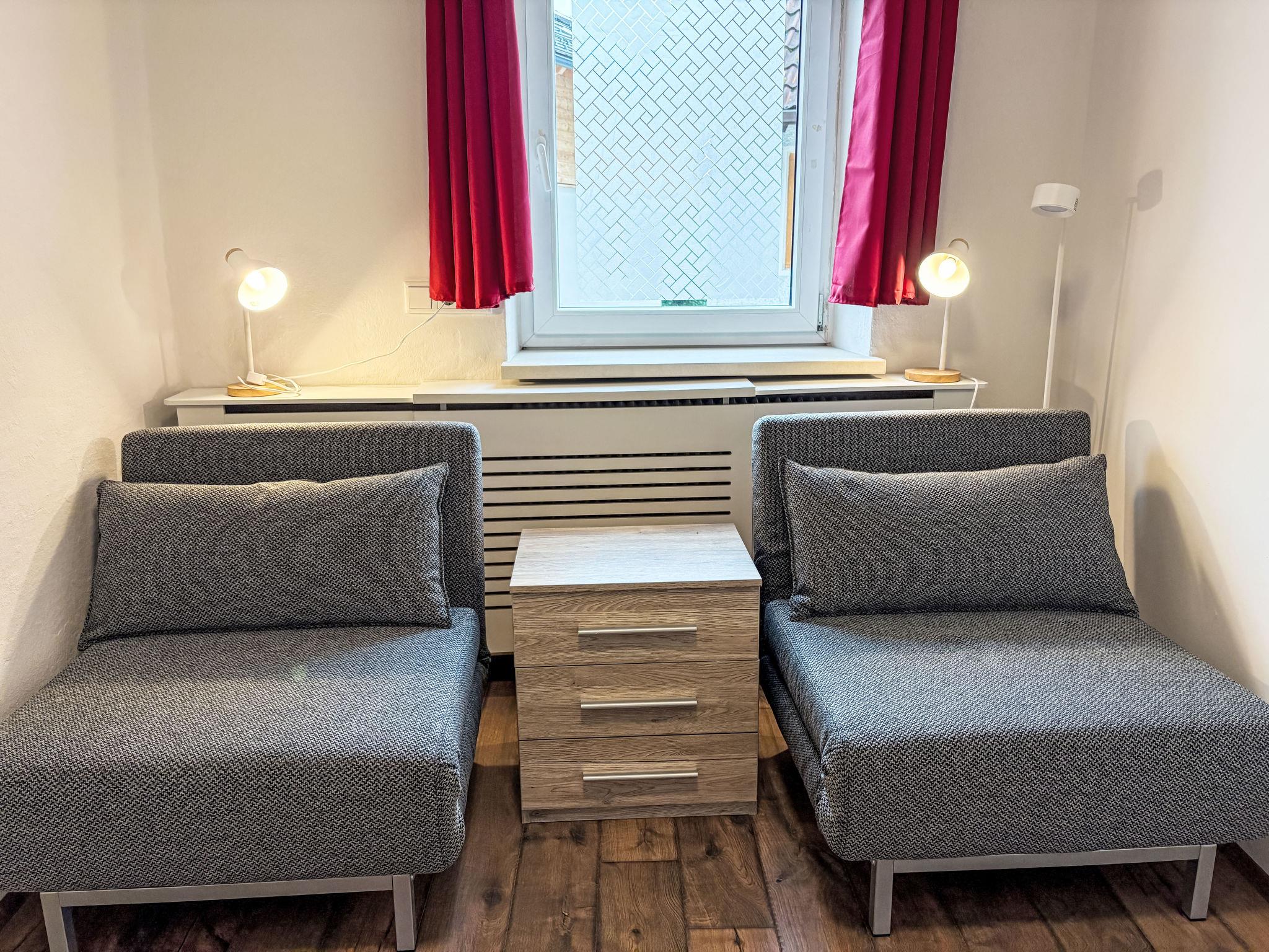 "Mentenwirt", 2-room apartment 41 m2. Comfortable and modern furnishings: living/sleeping room with 1 double sofabed. 1 room with 1 double bed (160 cm, length 200 cm). Kitchen-/living room (2 ceramic glass hob hotplates, kettle, microwave, electric coffee machine) with TV (flat screen). Shower/WC, sep. WC. Heating. Facilities: hair dryer. Internet (WiFi, free). Please note: non-smokers only. Smoke alarm. 50509-000320-2020