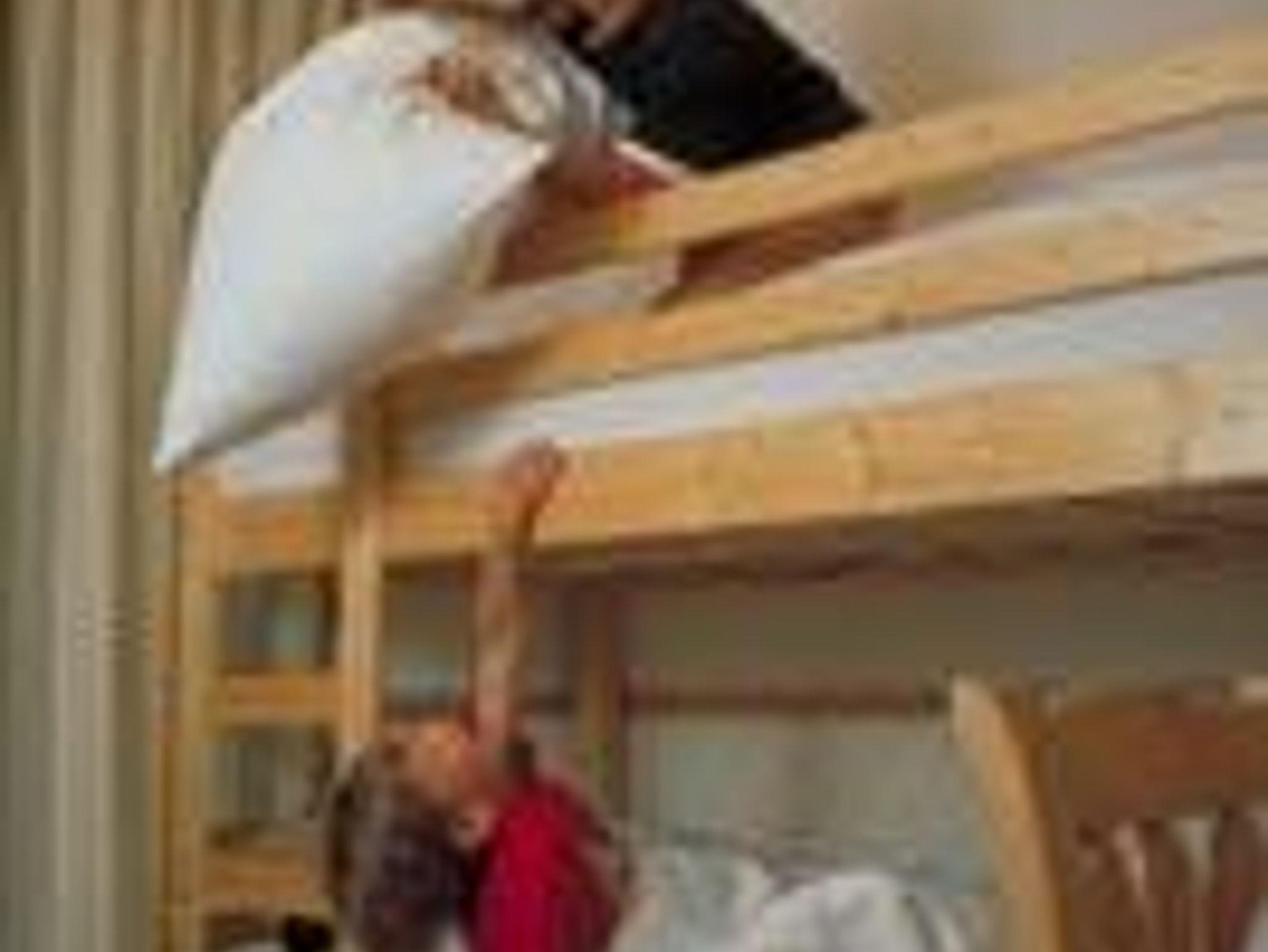 Kinder und Elternschlafzimmer getrennt, verbunden durch einen Vorraum, Kinderzimmer mit Etagenbett, Elternschlafzimmer ist ein standart Doppelzimmer mit Du oder Bad und WC, Sat-TV, Radio, Schließfach, Telefon und Balkon. Komplette Babyausstattung.