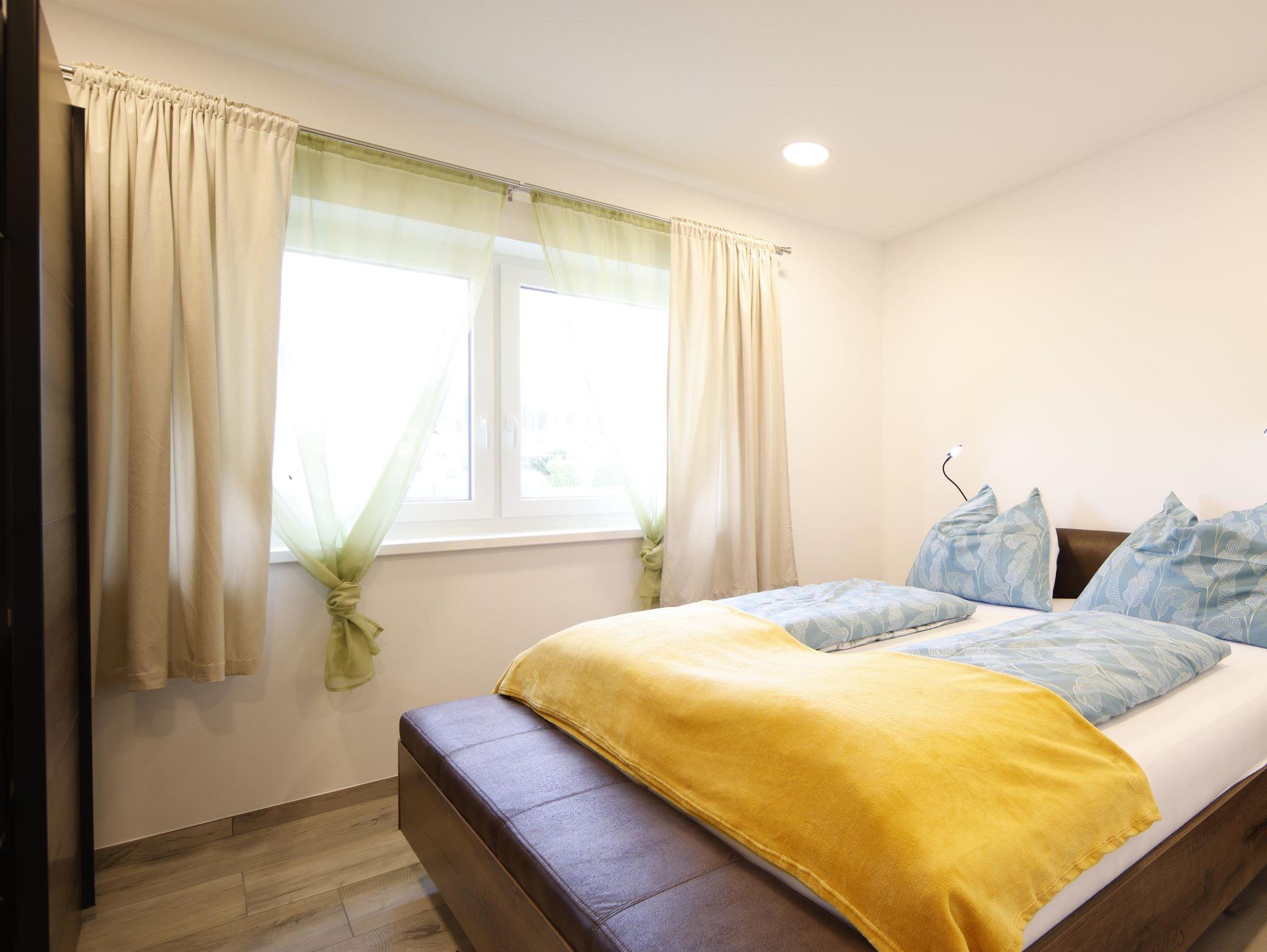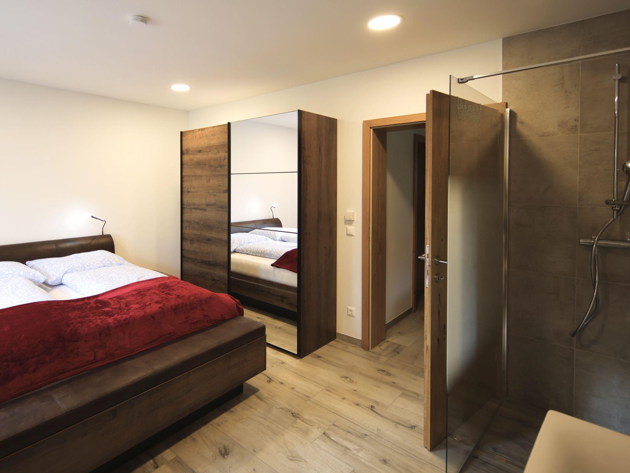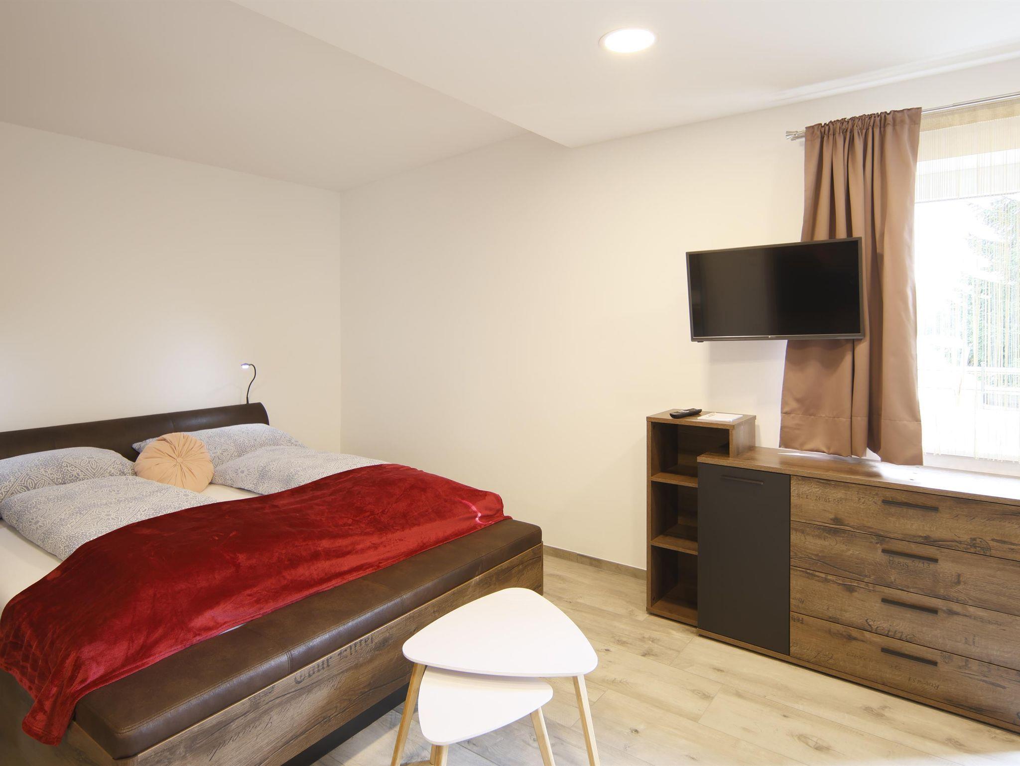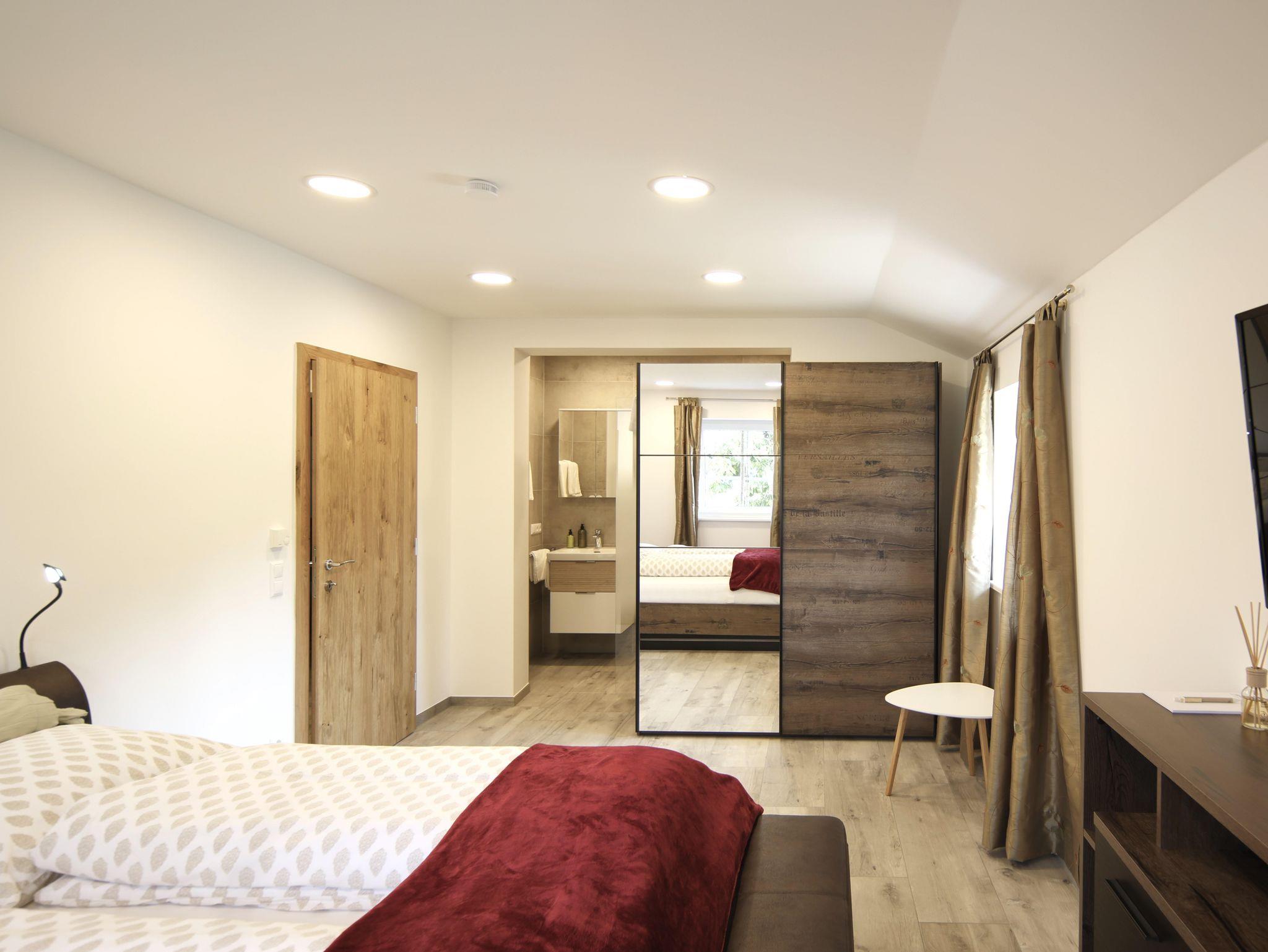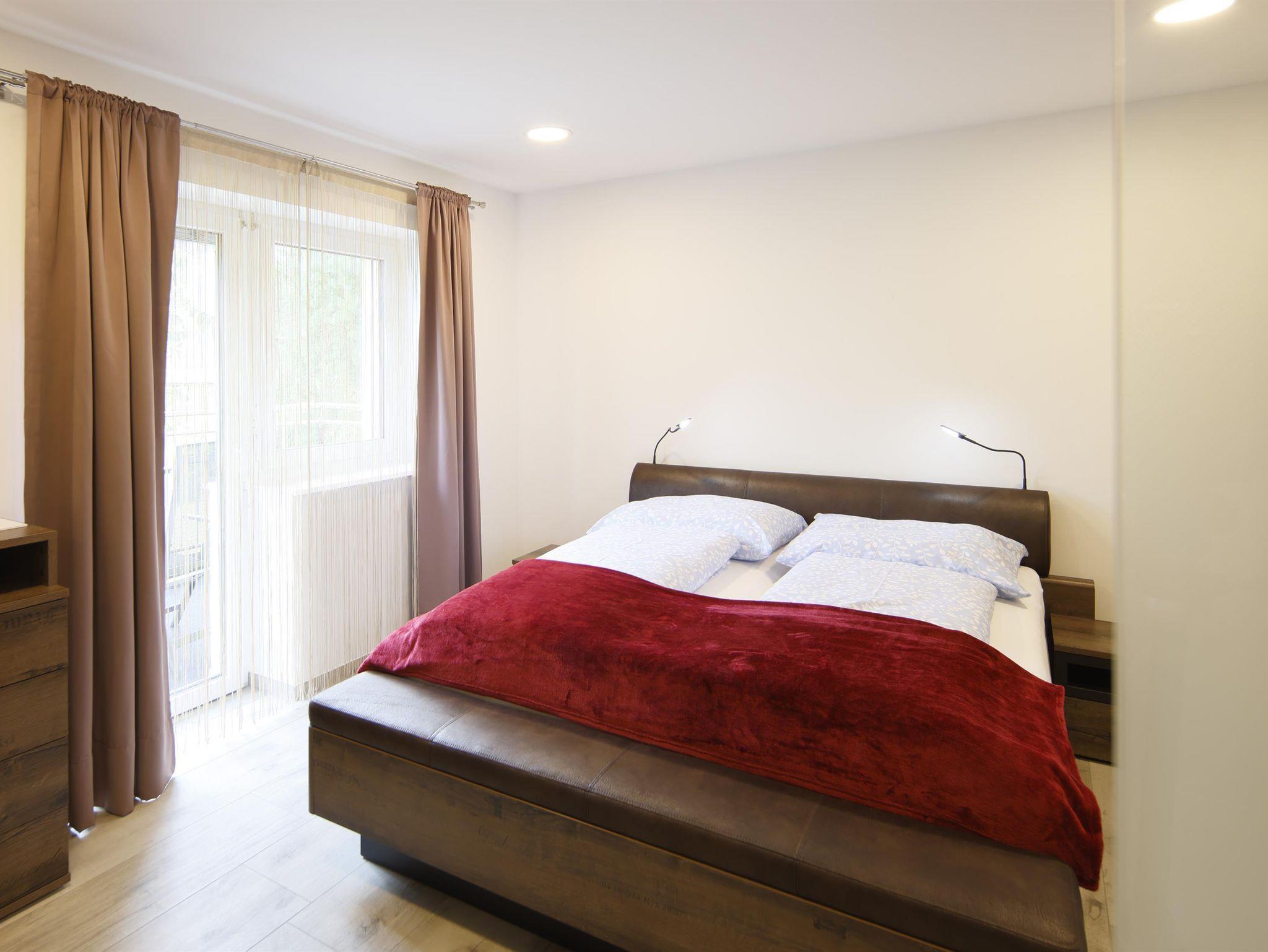 Das Apartment ist komplett neu eingerichtet. Es verfügt über 3 separate Schlafzimmer mit King-Size Bett, SAT-TV und jeweils eigener Dusche und Waschbecken in jedem Zimmer. Die Küche ist komplett mit Geschirrspüler, Mikrowelle, Kaffeemaschine, Wasserkocher, Küchenutensilien und einem kompletten Geschirrset ausgestattet. Zusätzlich dazu finden Sie auch Tischwäsche und Geschirrtücher in unseren Ferienwohnungen. Im Wohnzimmer der Apartments befinden sich eine gemütliche Sitzecke welche als Schlafcouch genutzt werden kann. In jedem Zimmer befinden sich Hand- und Duschtücher, Föhns sowie diverse Kosmetikartikel.