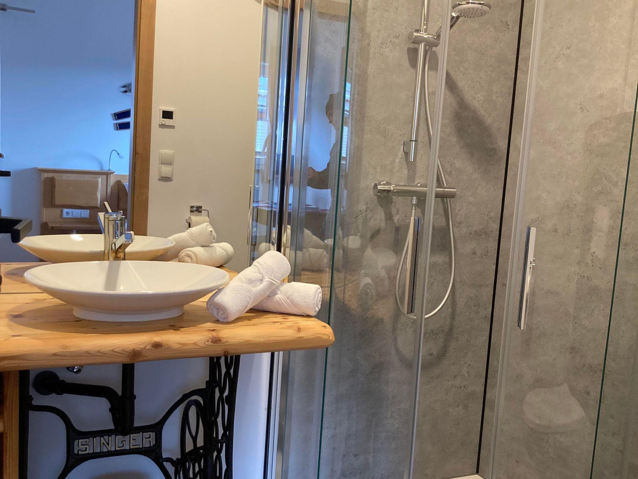 Für zusätzlichen Kompfort verfügt das Zusatzzimmer über ein eigenes Badezimmer mit WC und Dusche, Handtüchern, Handtuchtrockner und Föhn.