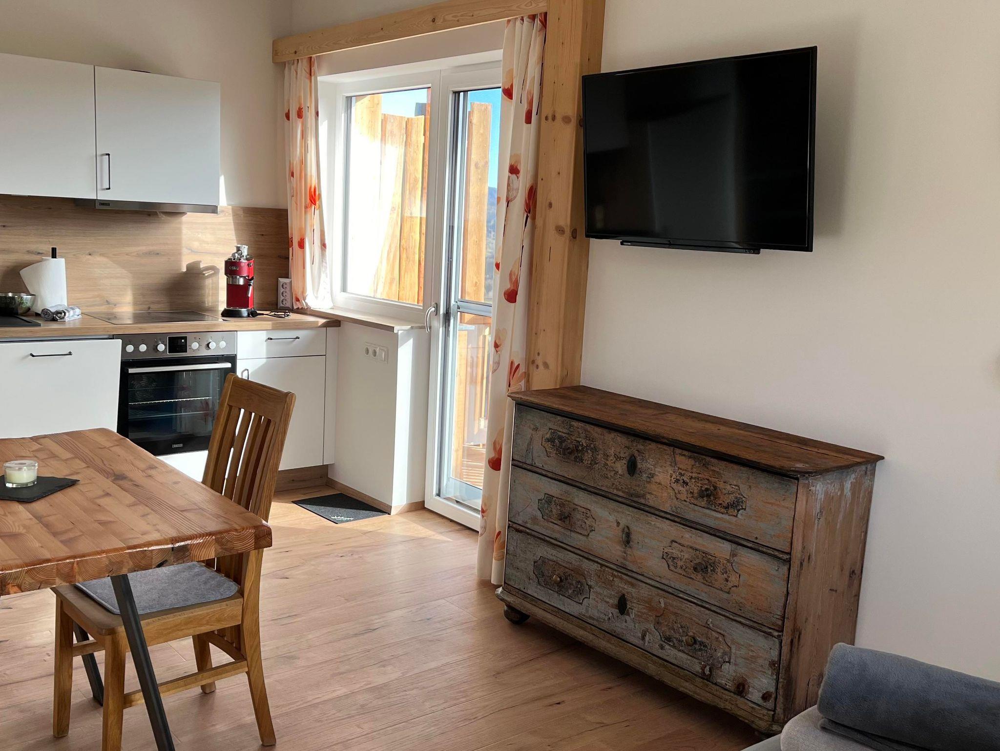 Die voll ausgestattete Küche lädt zum Kochen und Zubereiten köstlicher Mahlzeiten ein. Entspannen Sie im komfortablen Wohnzimmer und genießen Sie Ihre Mahlzeit am gemütlichen Esstisch mit Ausblick auf die Stolzalpe.