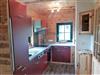 E-Herd mit Backofen, Holzofen, Kühlschrank mit Gefrierfach, Geschirrspüler, Mikrowelle, Kaffeemaschine, Mixer, Aufschnittmaschine und Toaster.