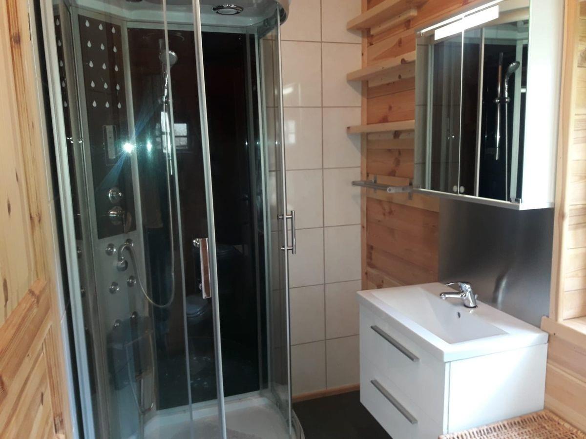 • 1 Badezimmer mit Dusche, Waschbecken und WC