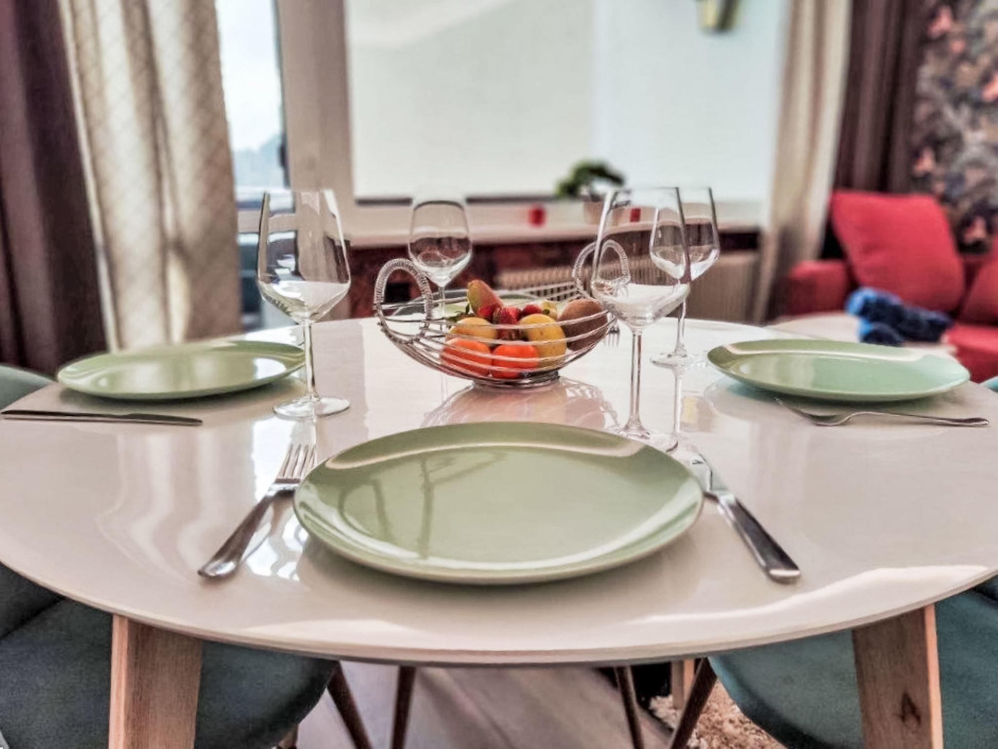 "Urban & Florian Apt.67 Family", 1-room apartment 35 m2, on the ground floor. Comfortable furnishings: living/sleeping room with 1 x 1 bunk beds (90 cm, length 200 cm), 1 pull-out bed (2 pers.). Open kitchen (oven, 2 ceramic glass hob hotplates, toaster, kettle, electric coffee machine, Capsules for coffee machine (Nespresso,mitbringen) extra) with satellite TV and flat screen. Exit to the balcony. Bath/shower/WC. Oil heating. Natural stone floors. Small balcony. Balcony furniture. Beautiful panoramic view of the mountains and the valley. Facilities: hair dryer. Internet (WiFi). Please note: non-smokers only.